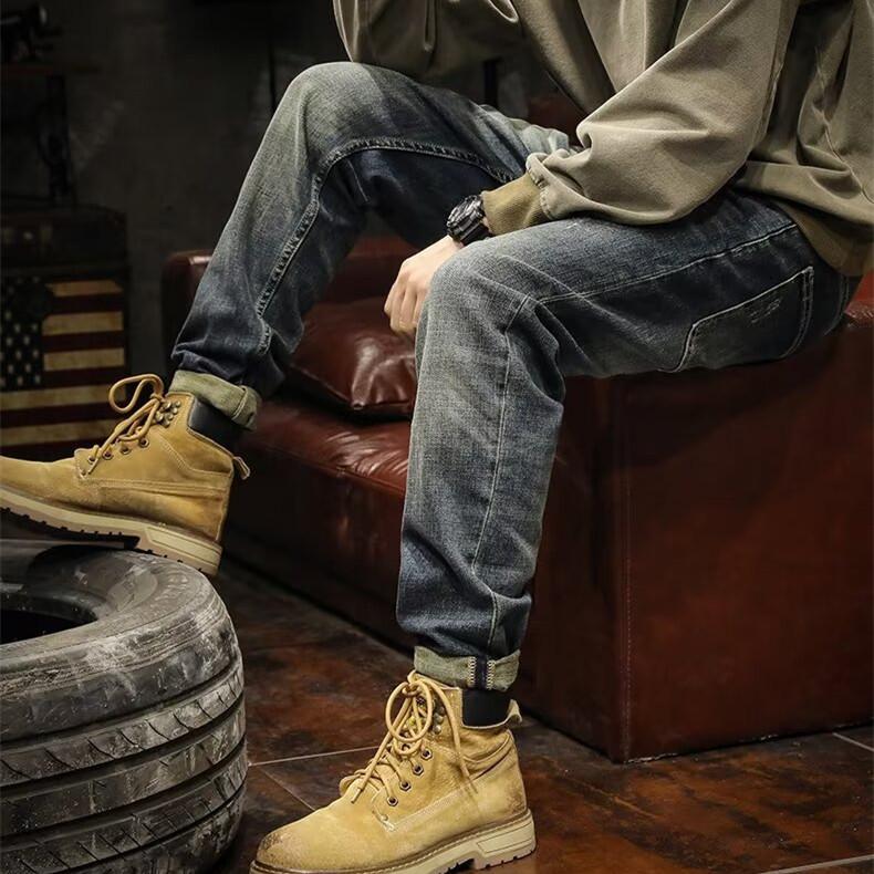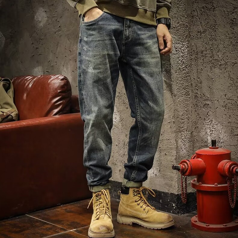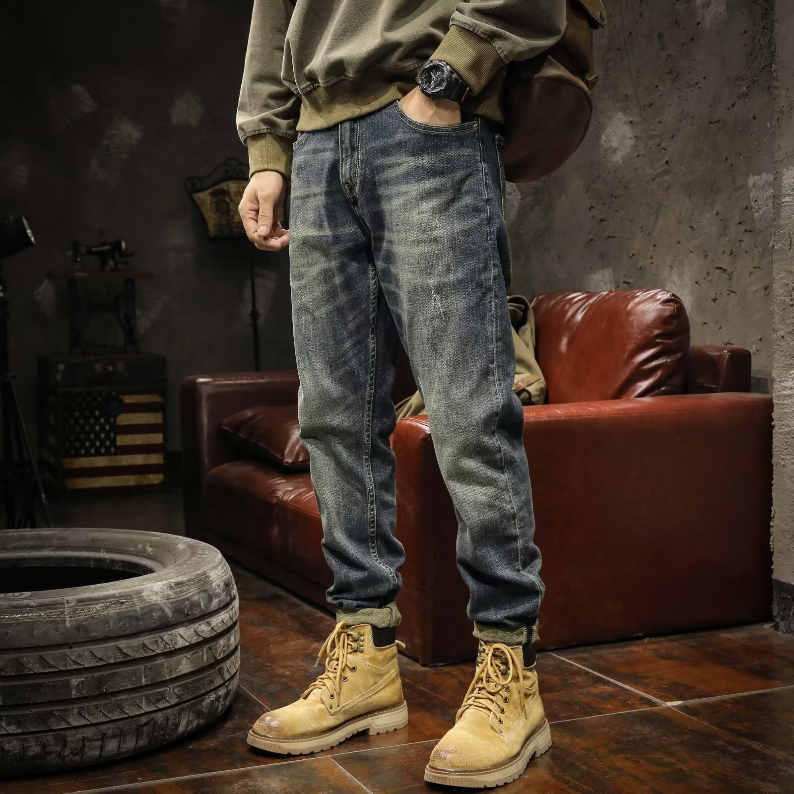 Celana panjang jeans retro pria, celana panjang harem runcing kasual baru musim gugur pemuda ukuran besar longgar pria
