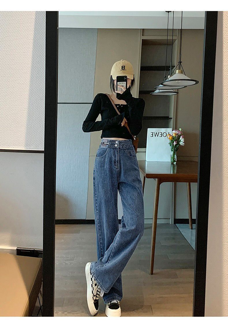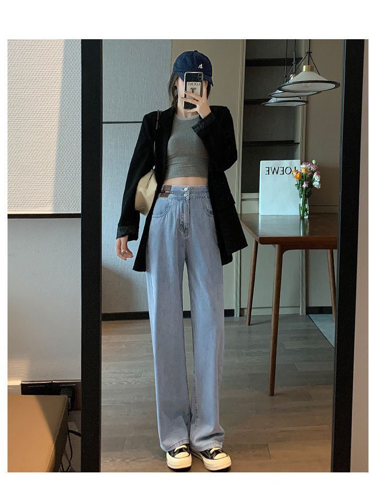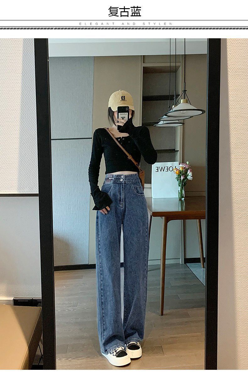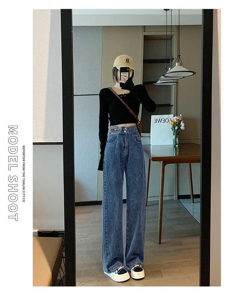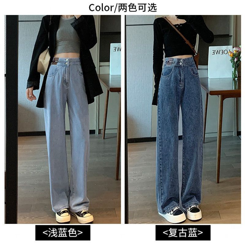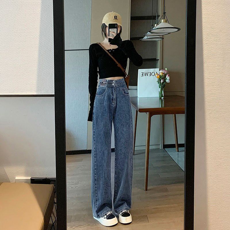 Celana Jeans Lurus Versi Sempit Wanita Celana Kaki Lebar Terlihat Tinggi Terlihat Langsing Pinggang Tinggi Tubuh Kecil Model Baru Musim Semi Musim Gugur 2025
