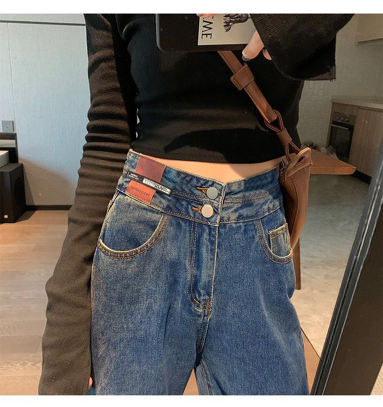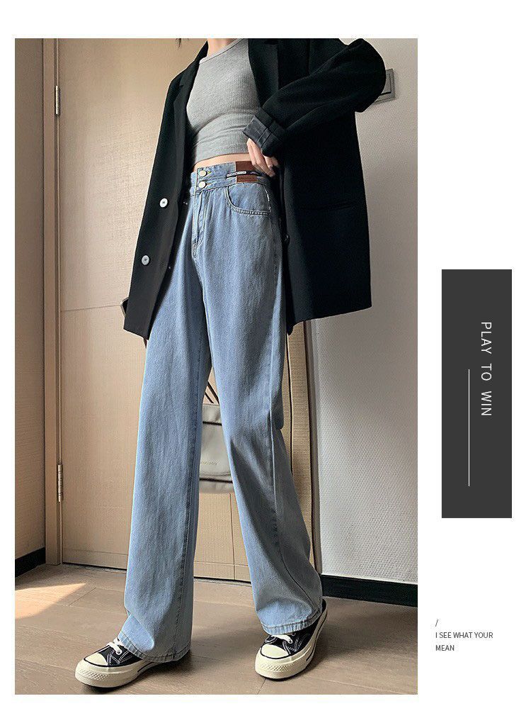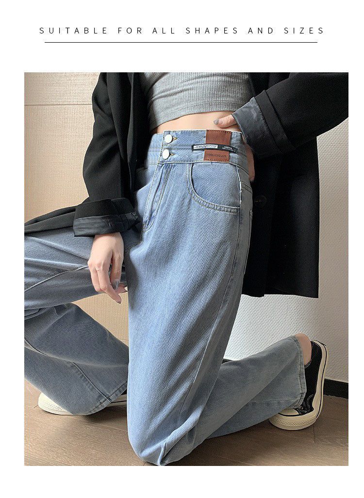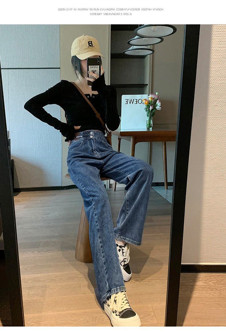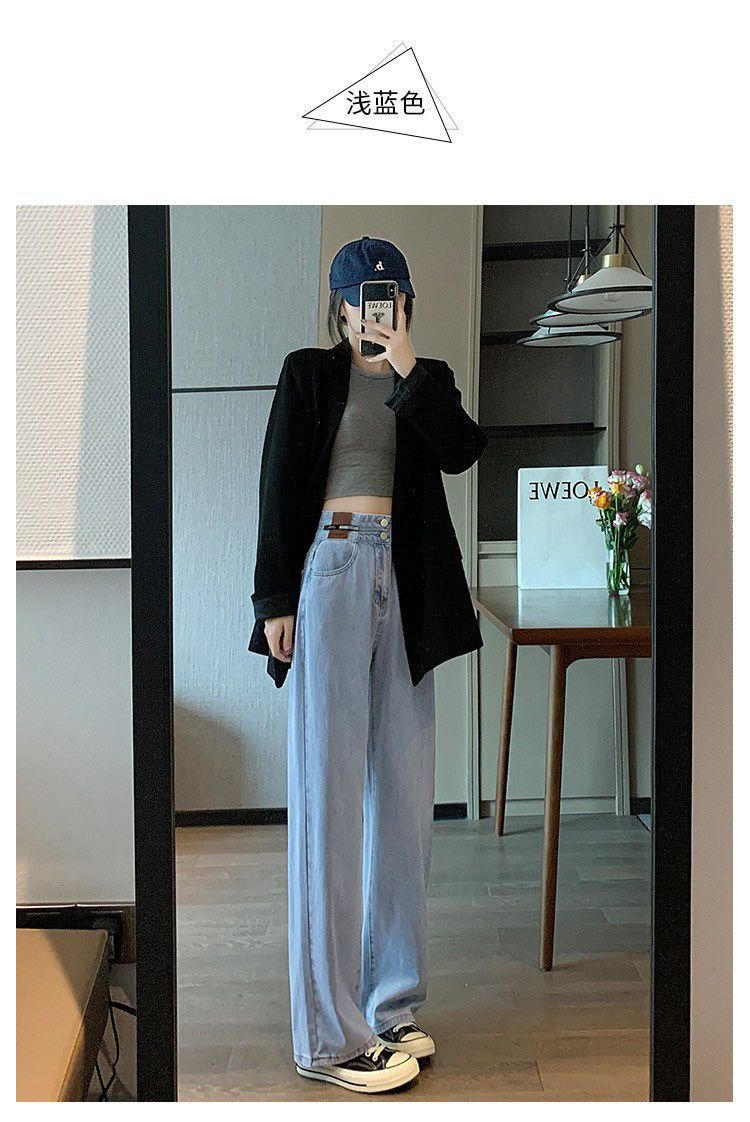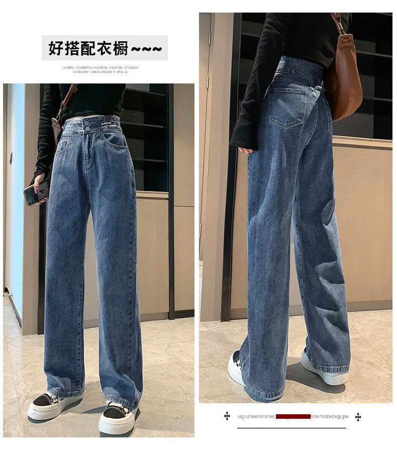 Celana Jeans Lurus Versi Sempit Wanita Celana Kaki Lebar Terlihat Tinggi Terlihat Langsing Pinggang Tinggi Tubuh Kecil Model Baru Musim Semi Musim Gugur 2025