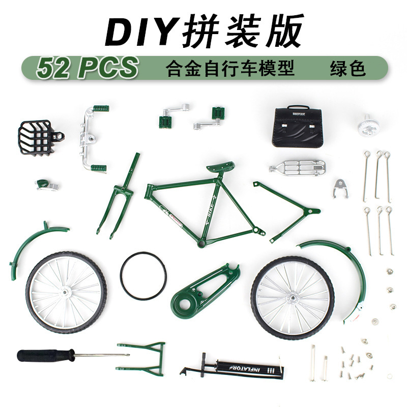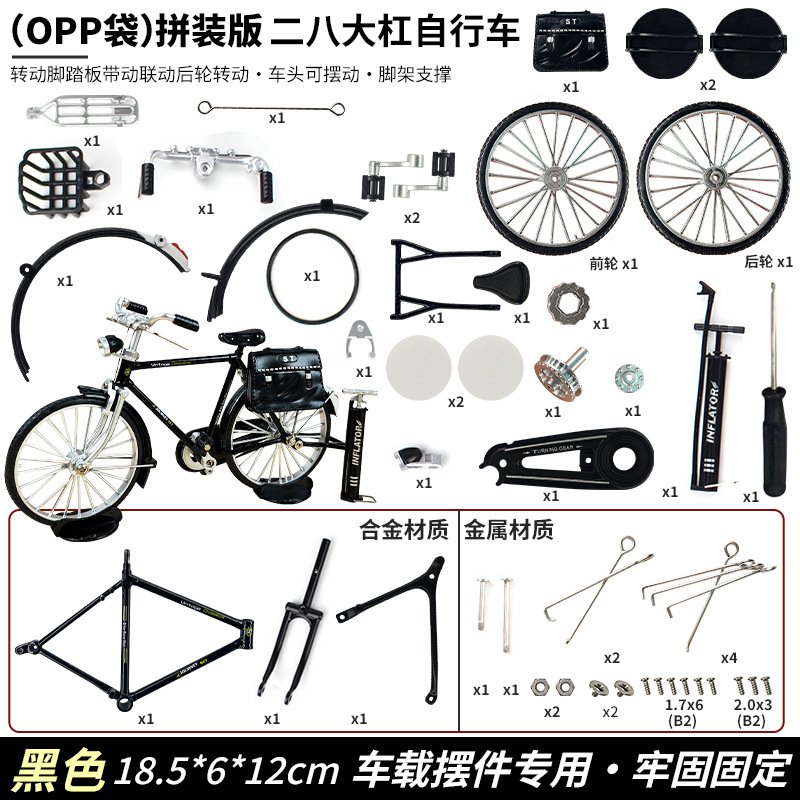 拼装仿真邮政二八大杠自行车模型玩具自行车模型合金二八大杆车载