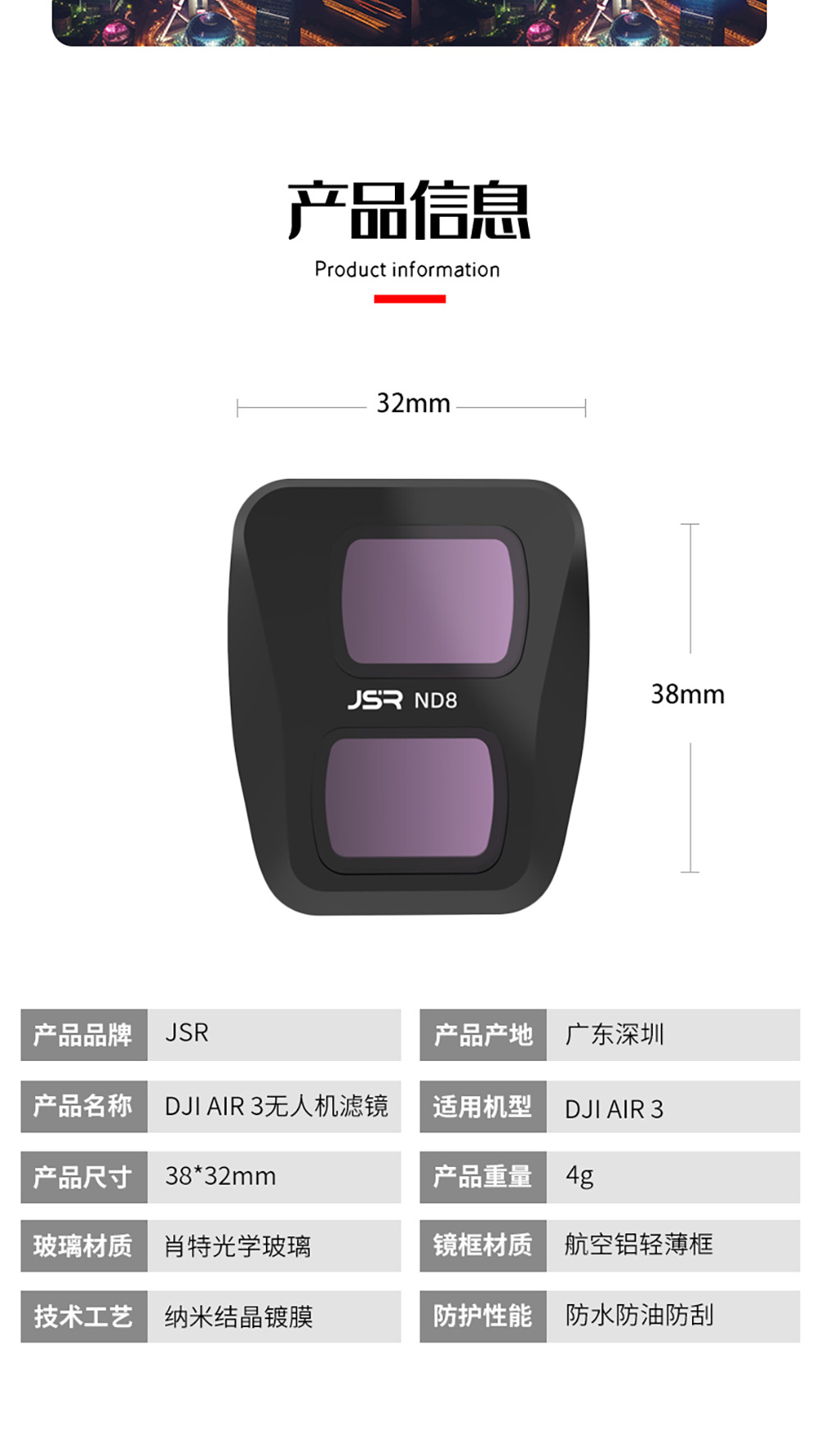 Filter JSR pengiriman satu bagian cocok untuk Aksesori filter UAV Dajiang yudji AIR3 kamera ND light reducing CPL