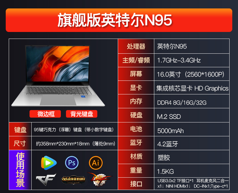 [Pilihan ketat] laptop N95 16 inci baru grosir buku permainan kantor bisnis portabel ringan