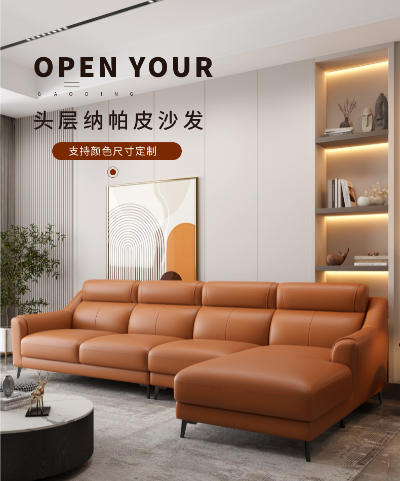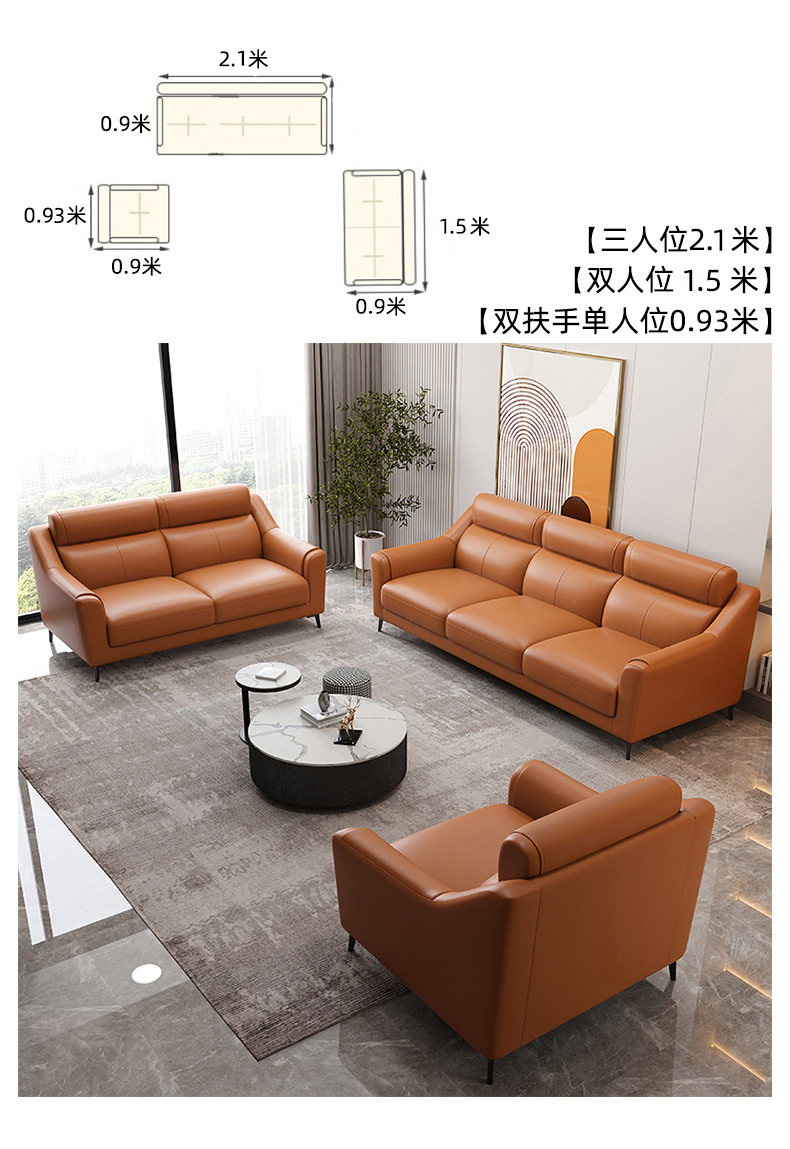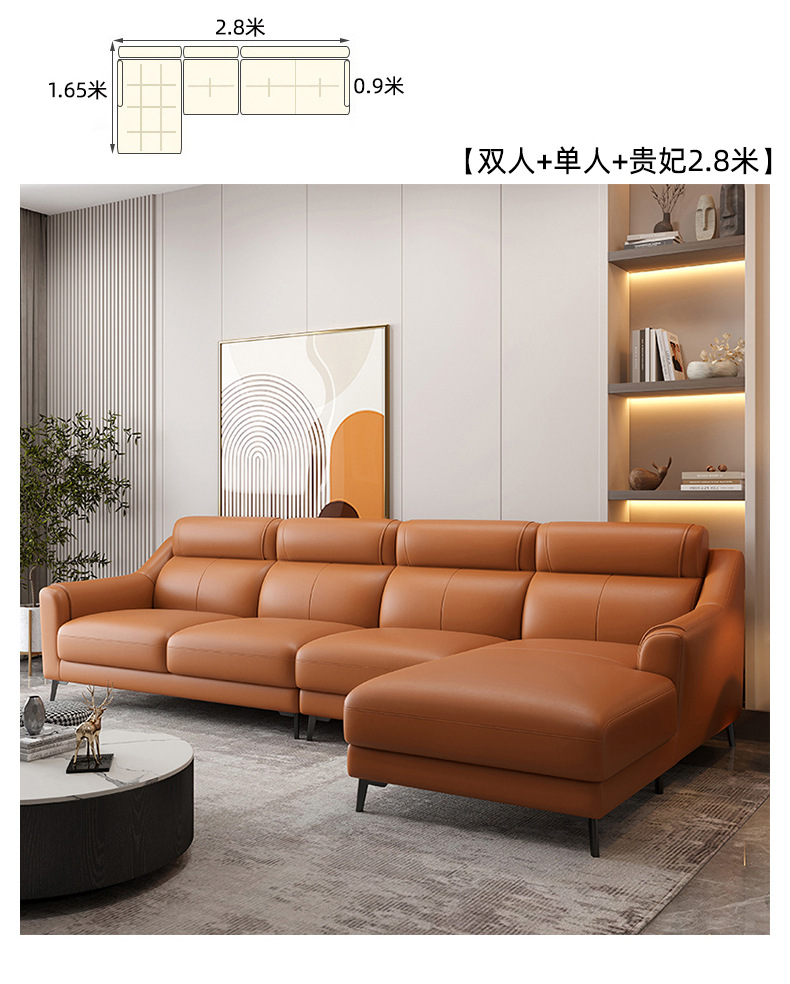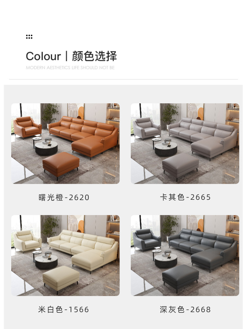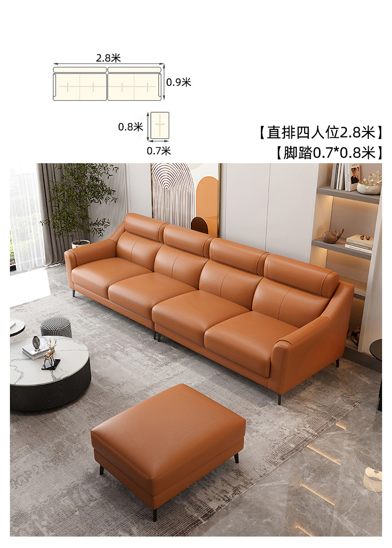 Sofa kulit Foshan lapisan pertama kulit sapi modern minimalis sudut kecil apartemen ruang tamu lurus baris kombinasi furnitur grosir