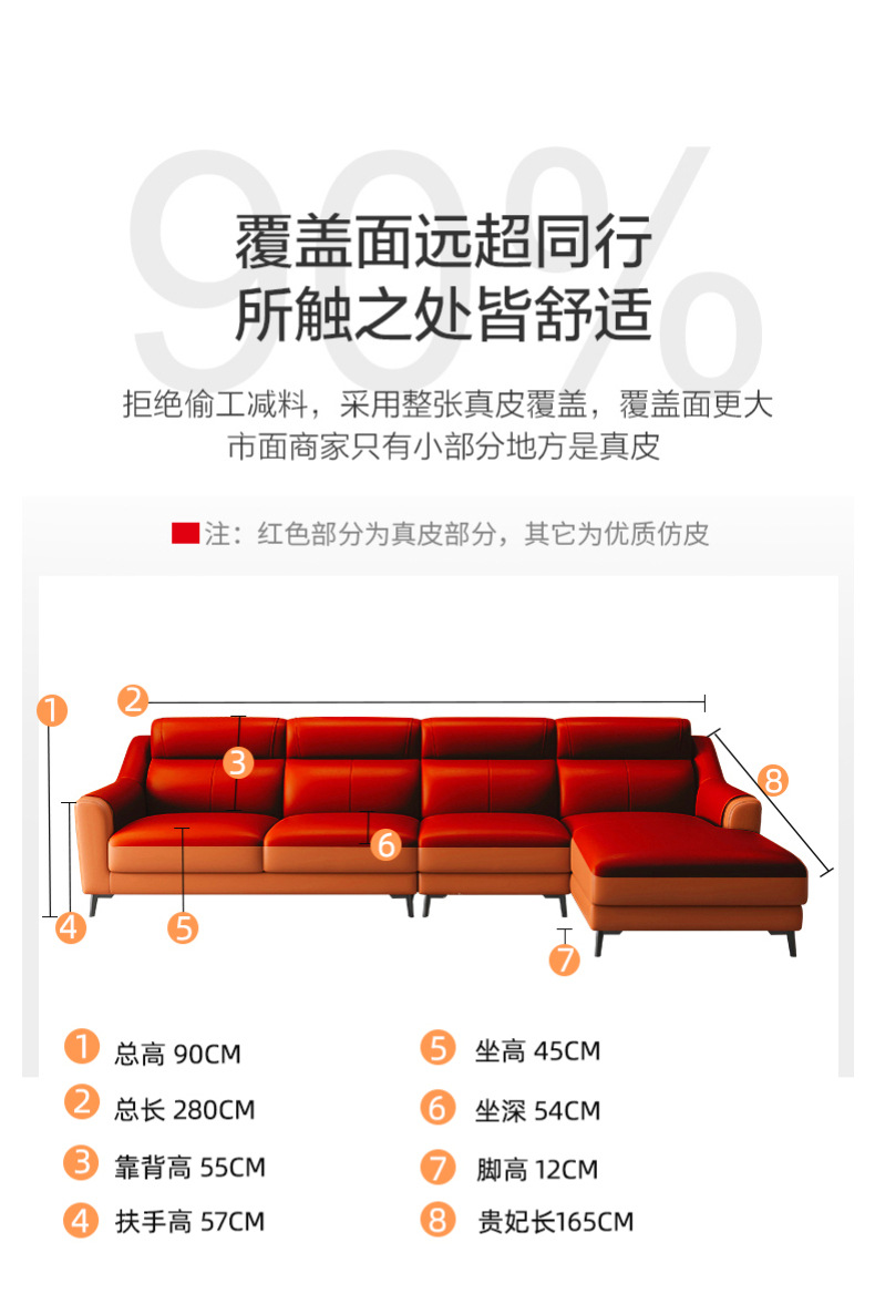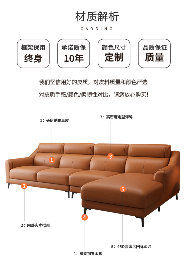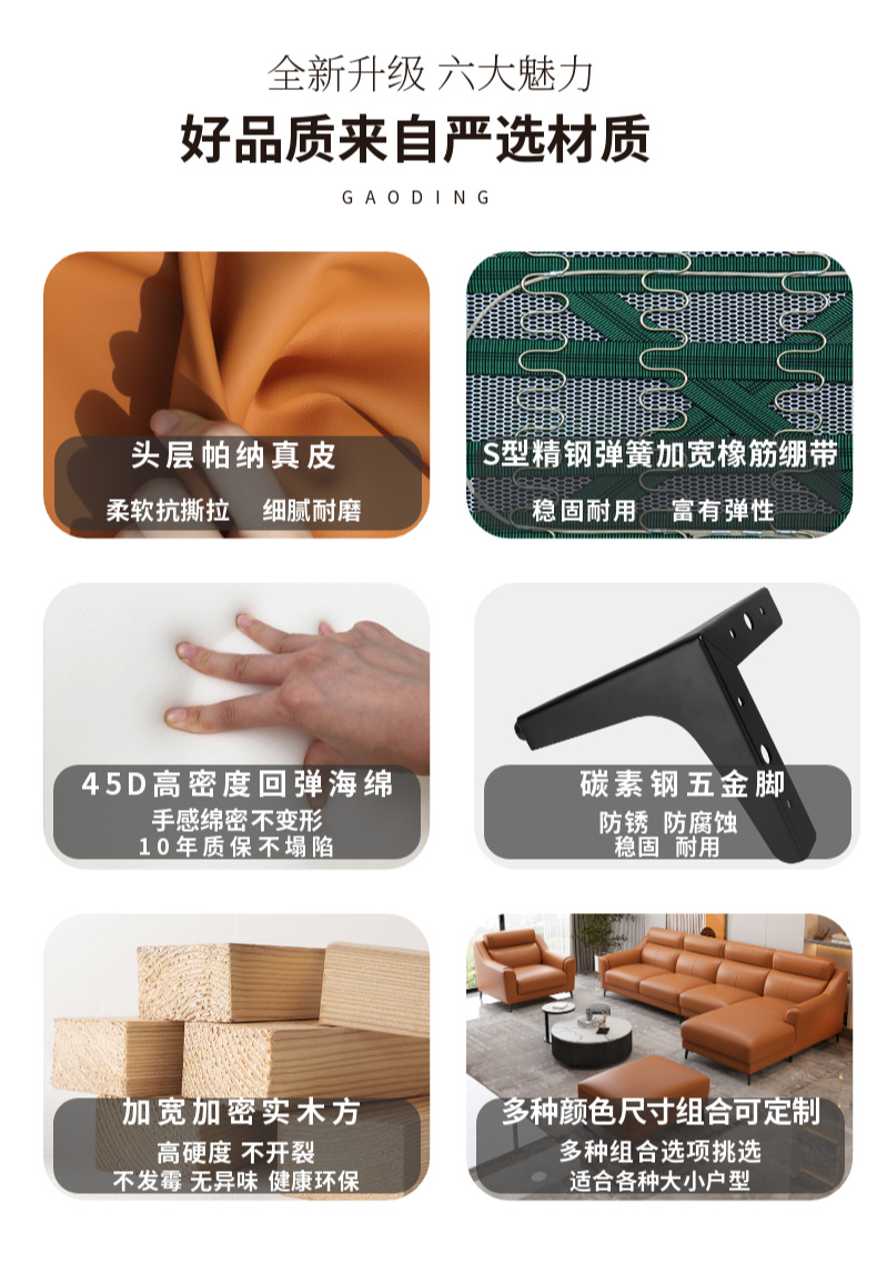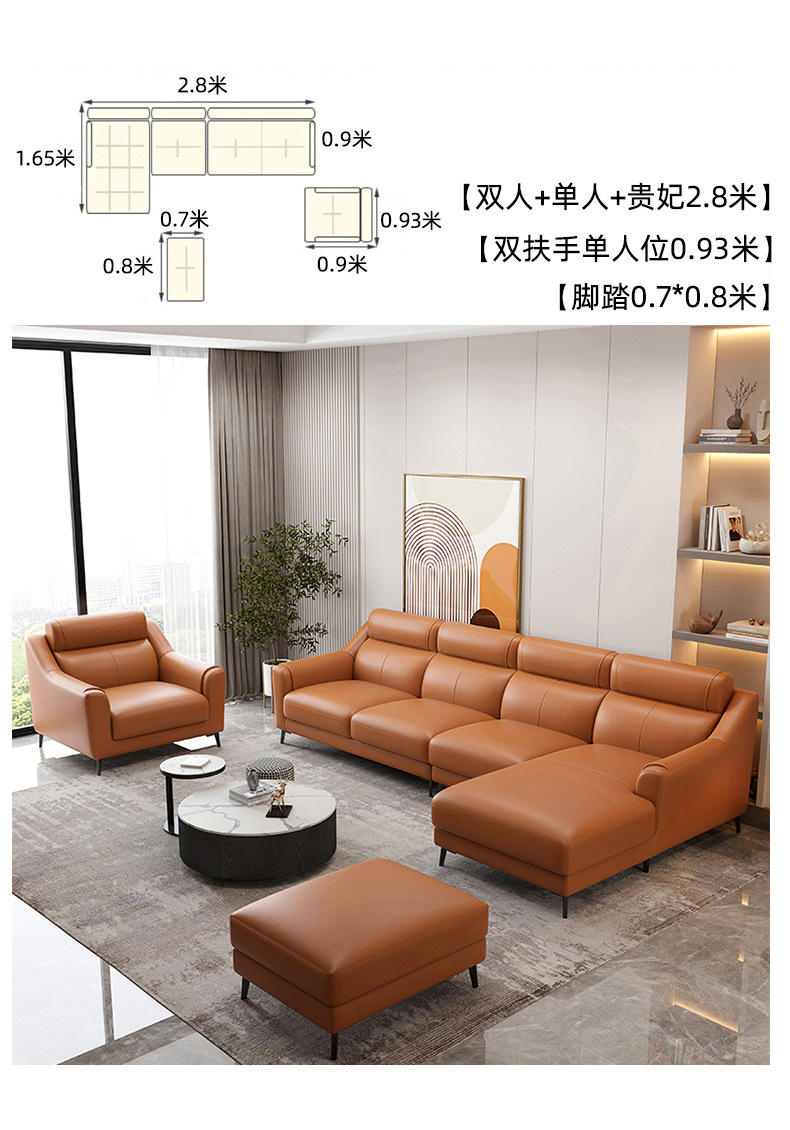 Sofa kulit Foshan lapisan pertama kulit sapi modern minimalis sudut kecil apartemen ruang tamu lurus baris kombinasi furnitur grosir