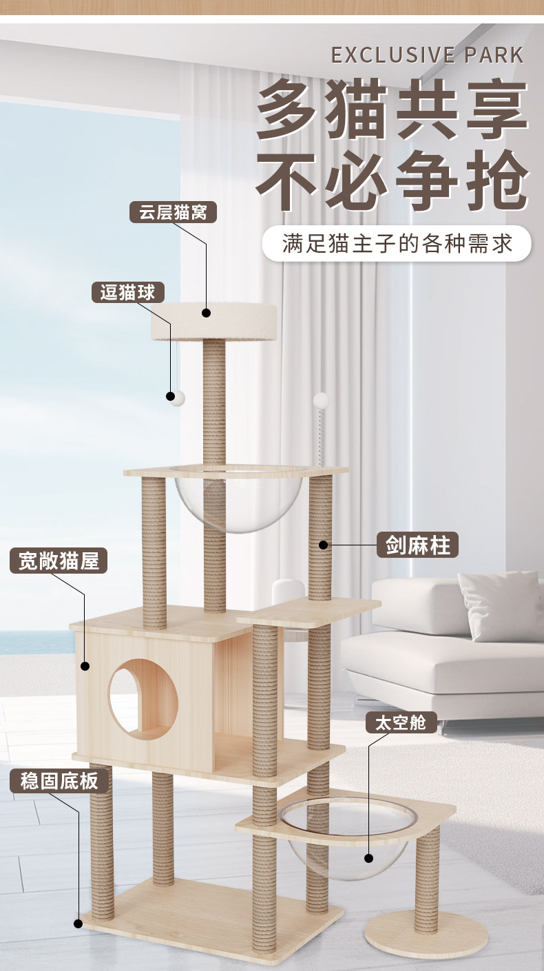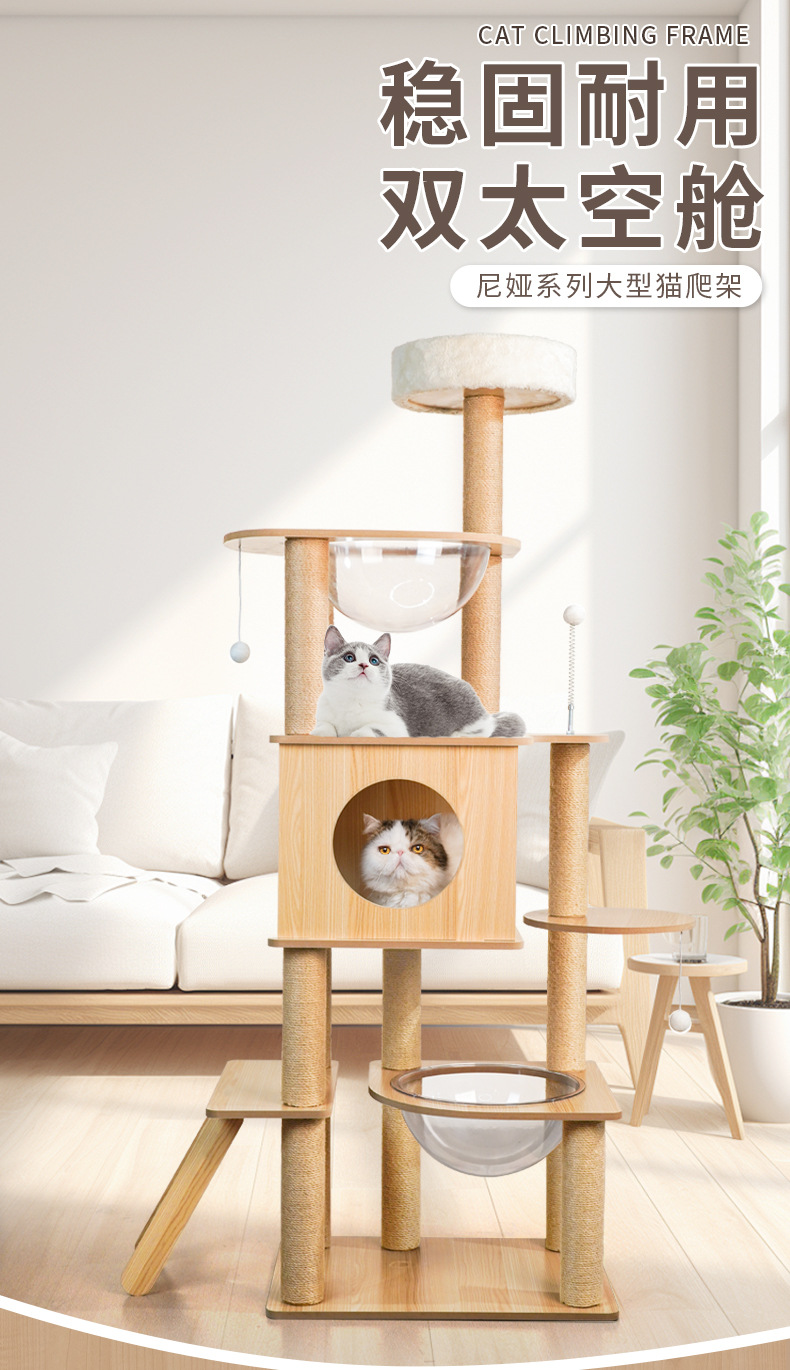 Kapsul ruang ganda besar bingkai memanjat kucing sarang kucing menara kucing all-in-one vila mewah kucing besar rak platform lompat mainan pengasah cakar