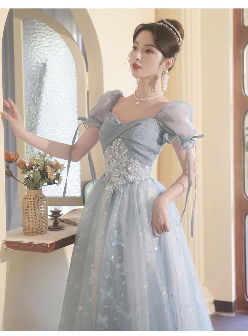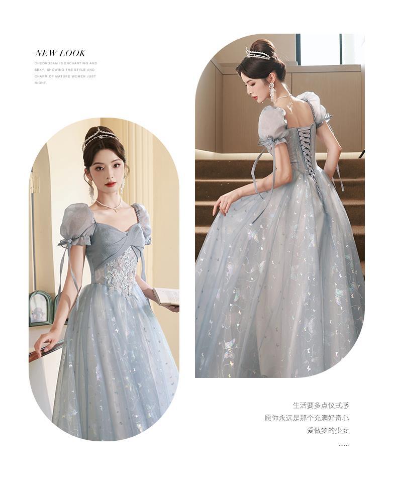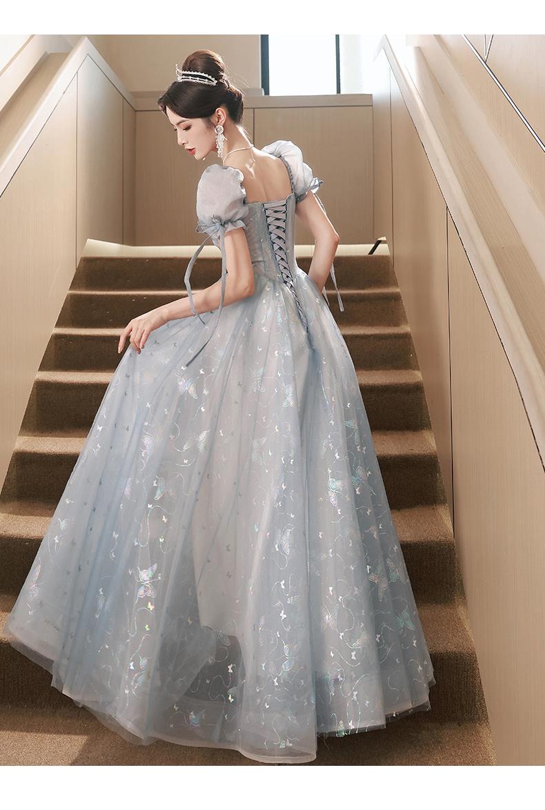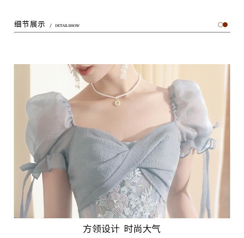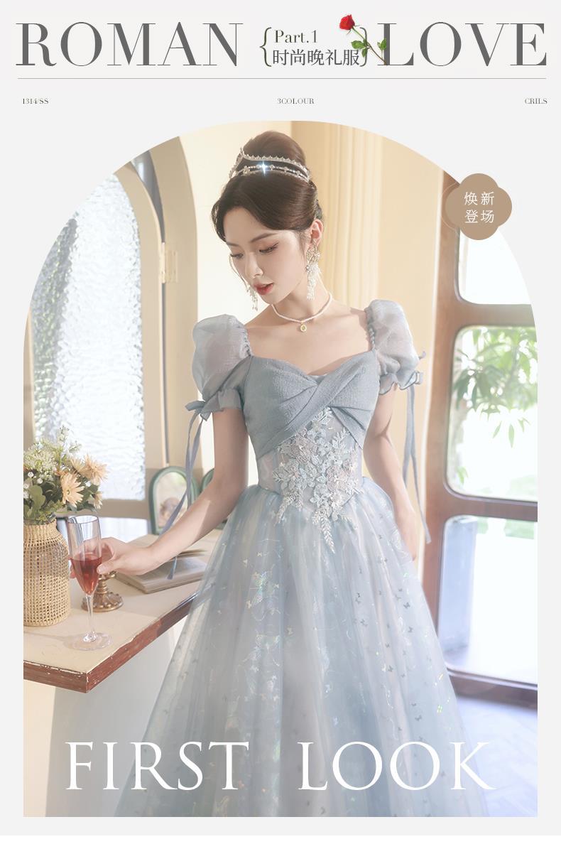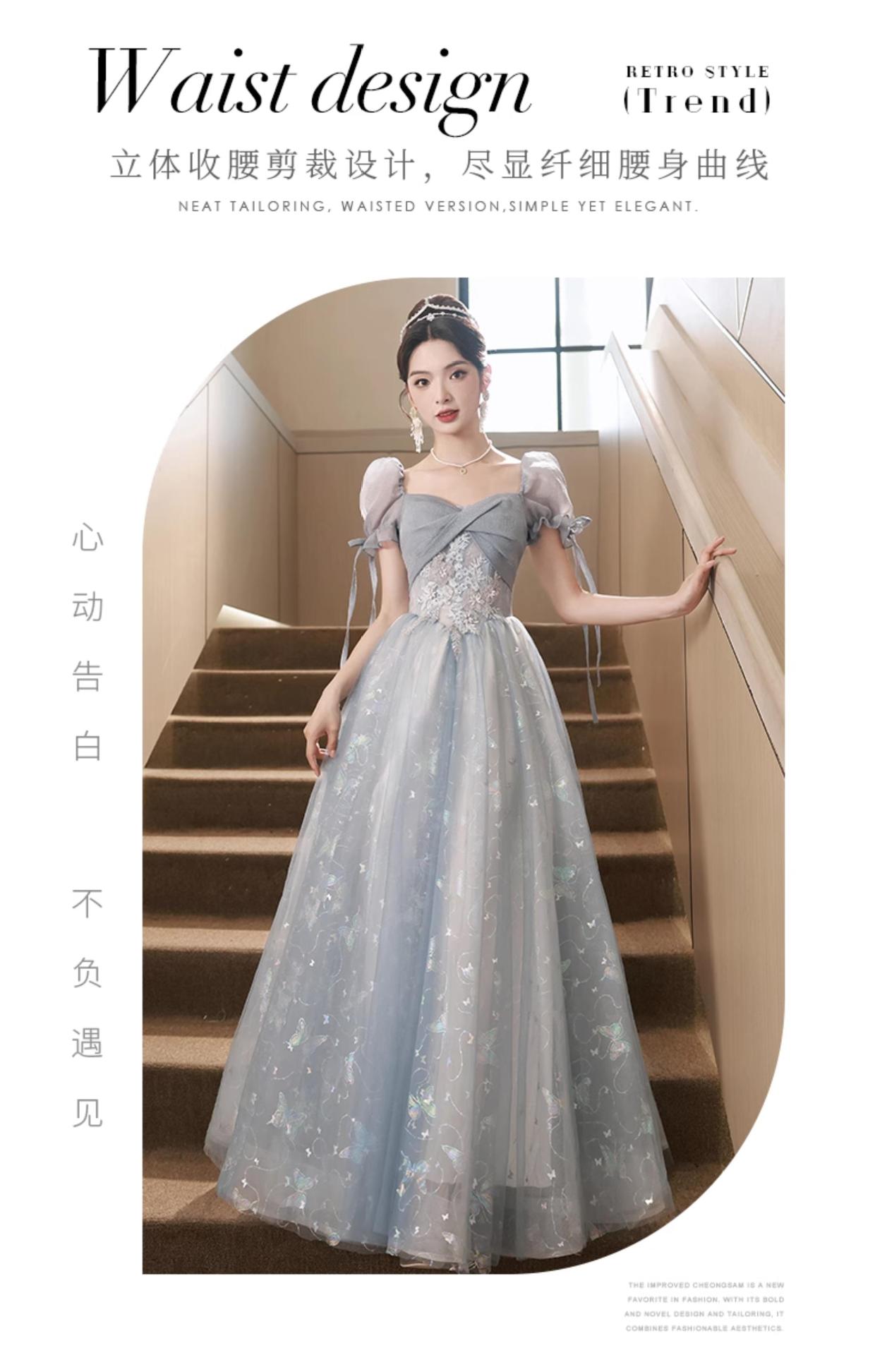 Gaun malam biru banquet gaya Perancis cahaya mewah niche temperamen dopamin escape Putri seni vokal performa ujian kostum