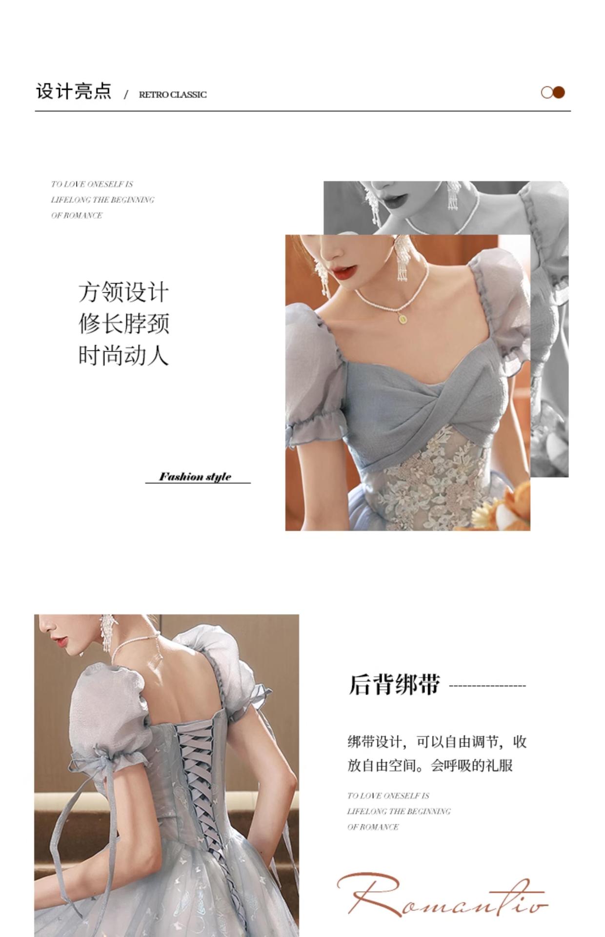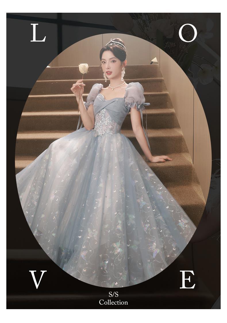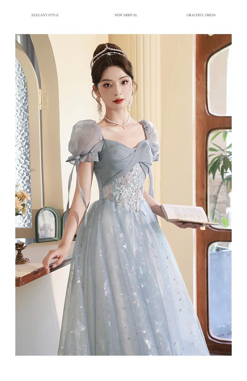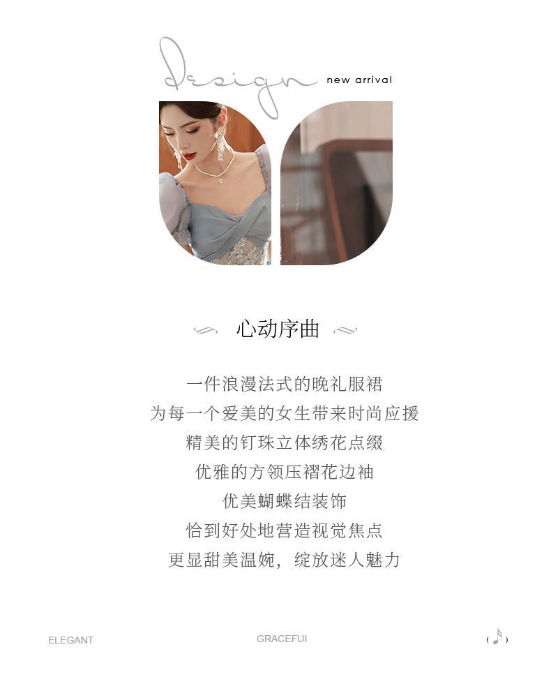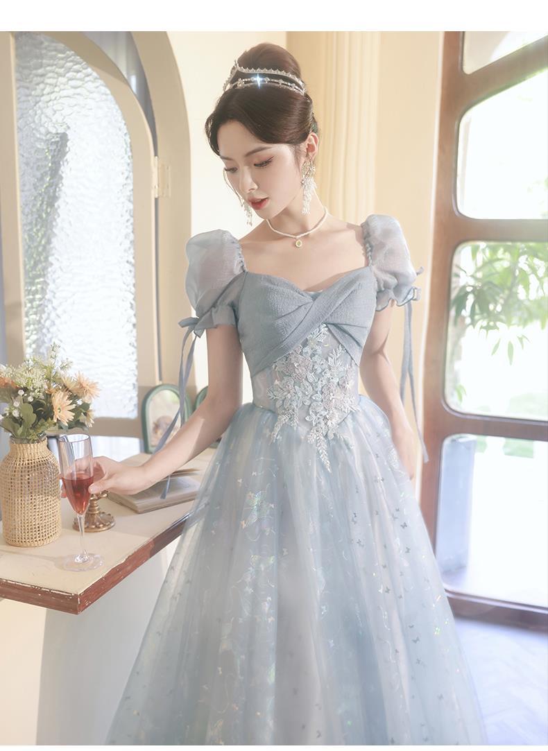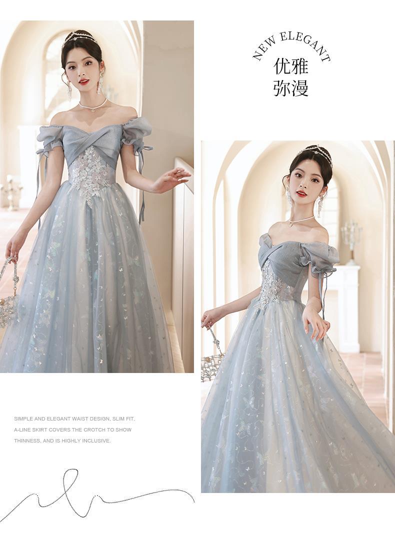 Gaun malam biru banquet gaya Perancis cahaya mewah niche temperamen dopamin escape Putri seni vokal performa ujian kostum