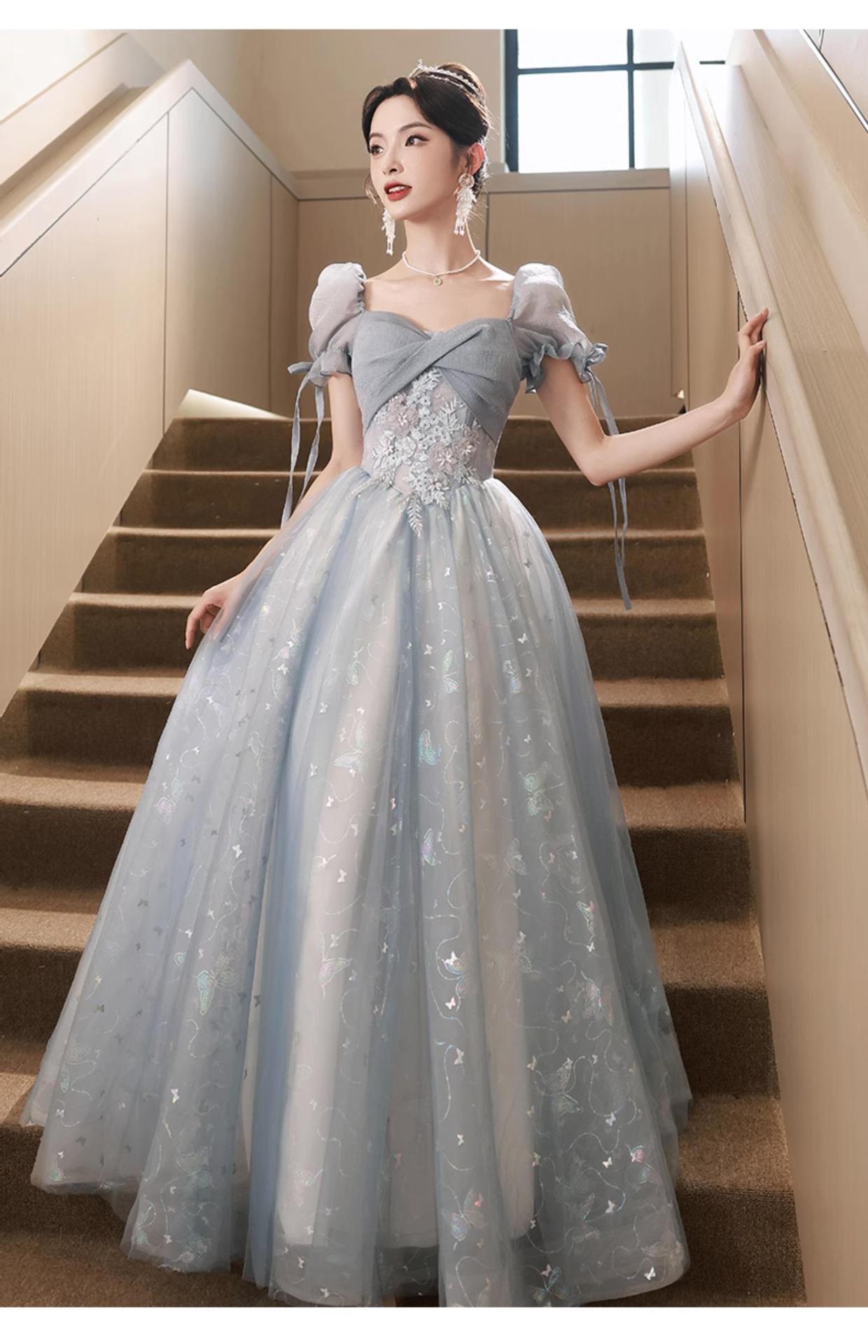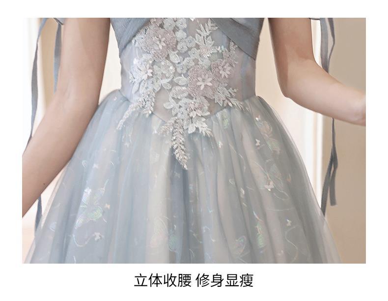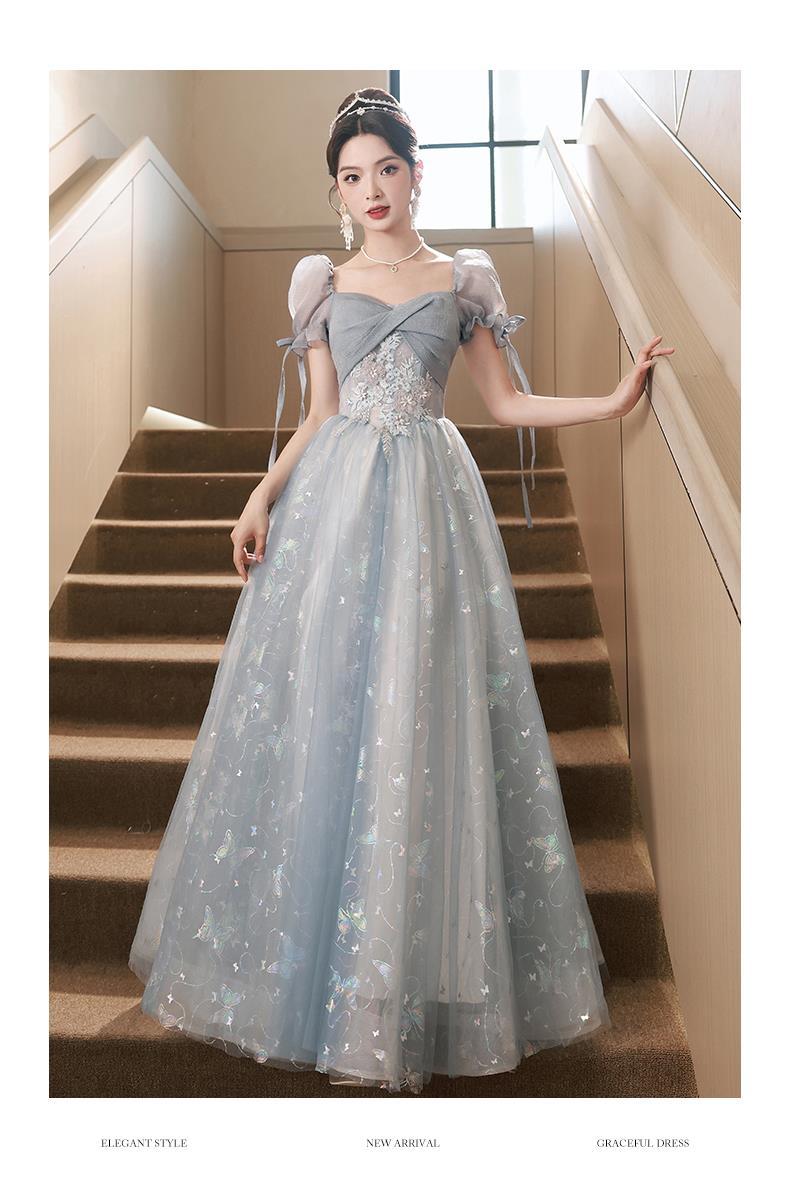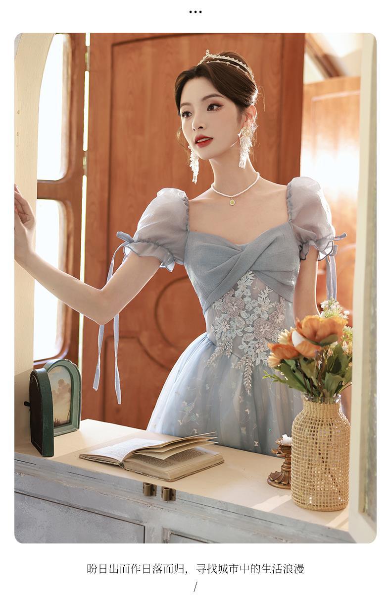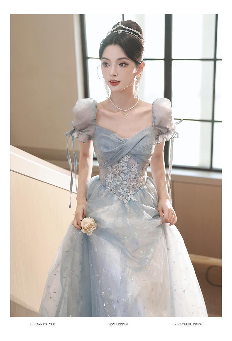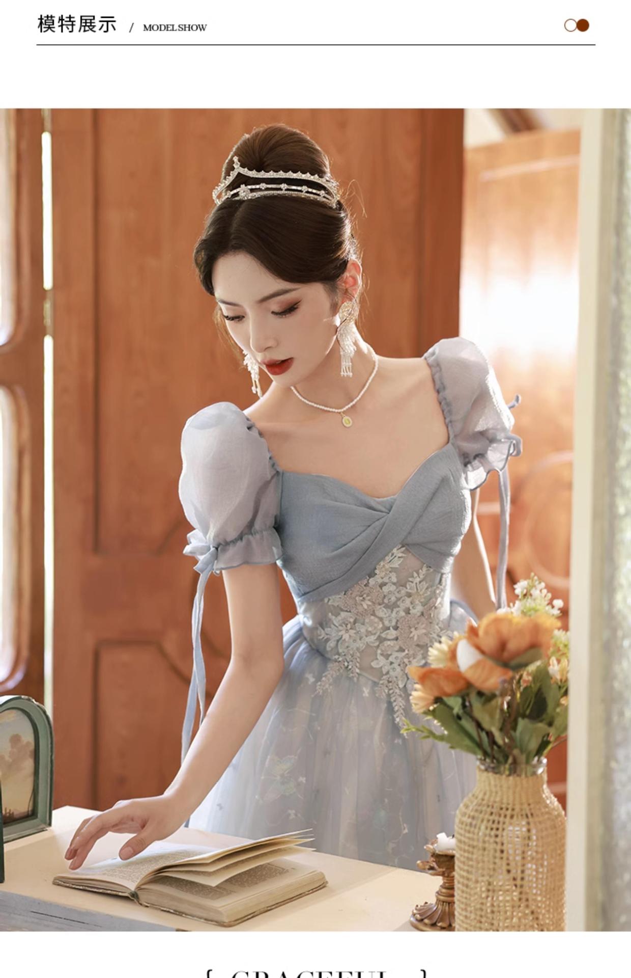 Gaun malam biru banquet gaya Perancis cahaya mewah niche temperamen dopamin escape Putri seni vokal performa ujian kostum