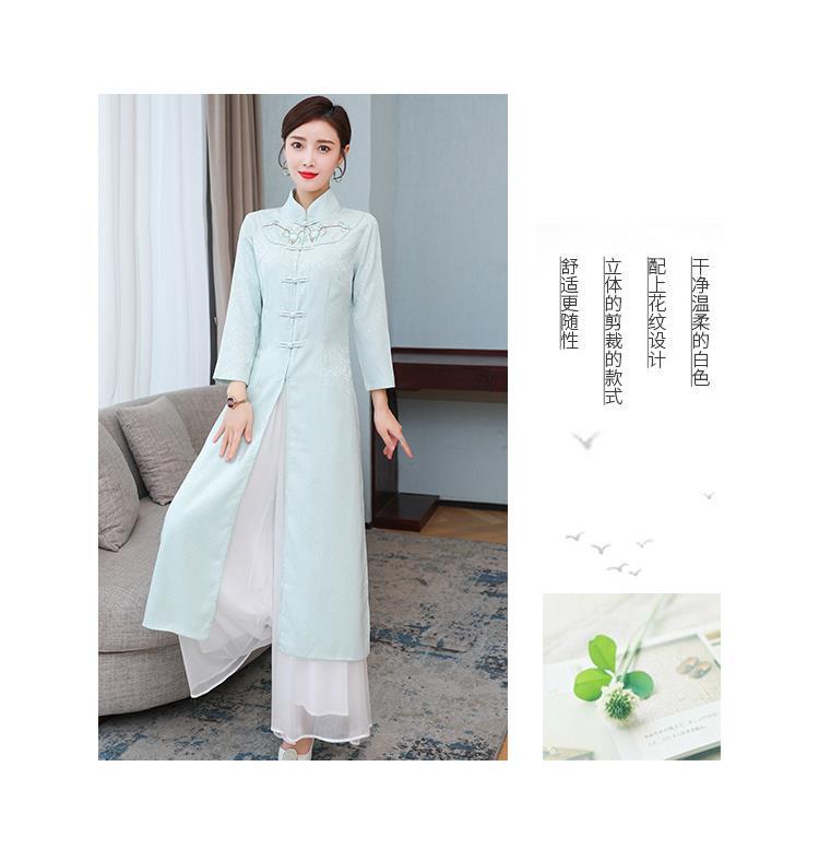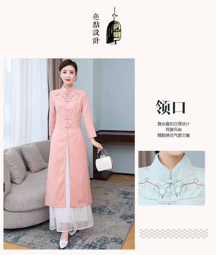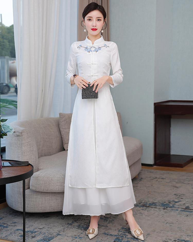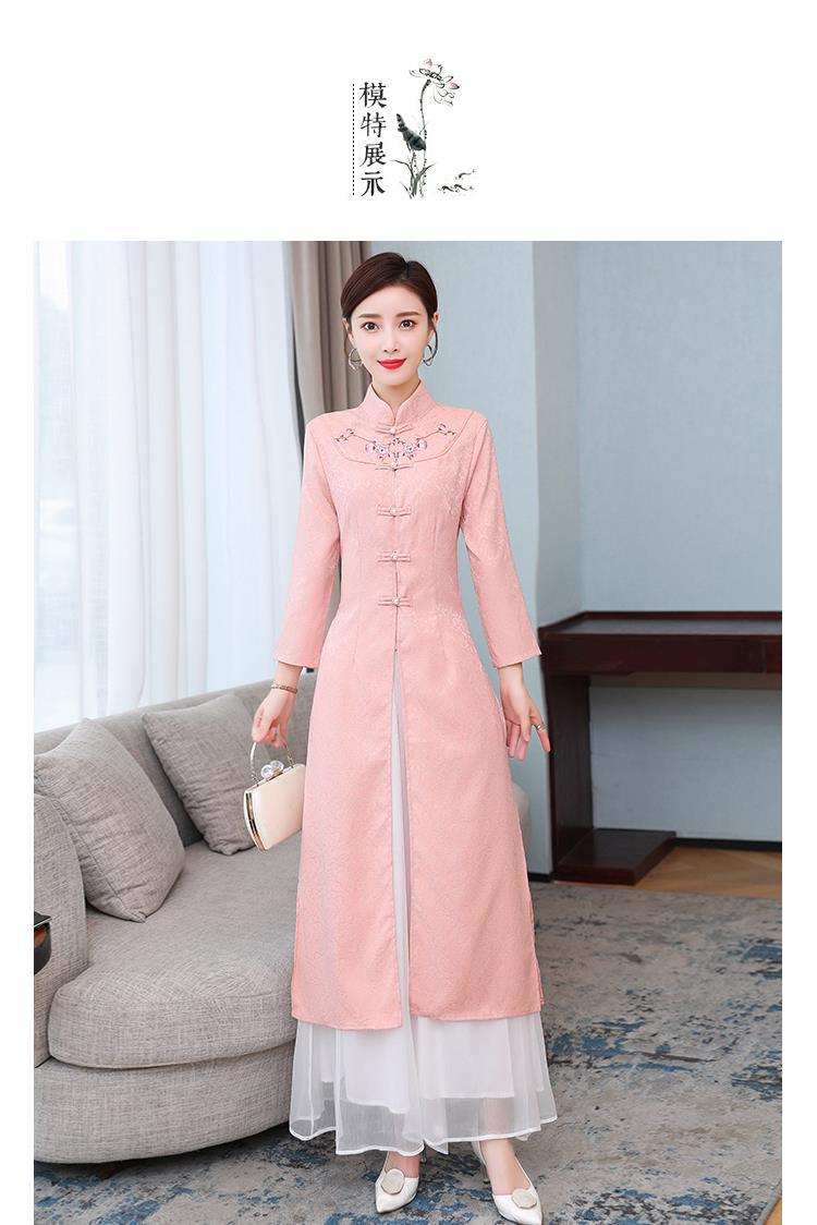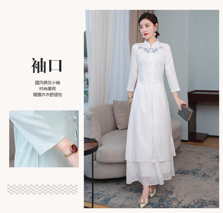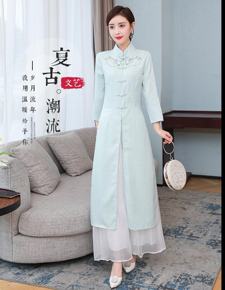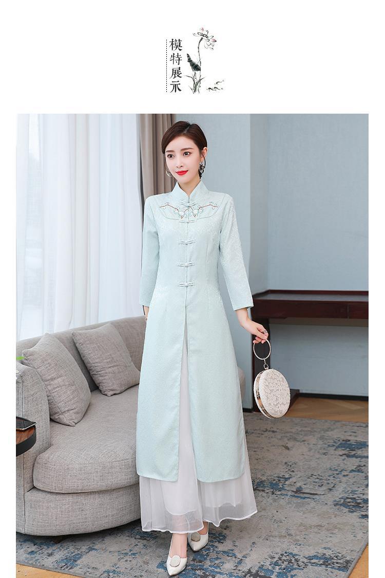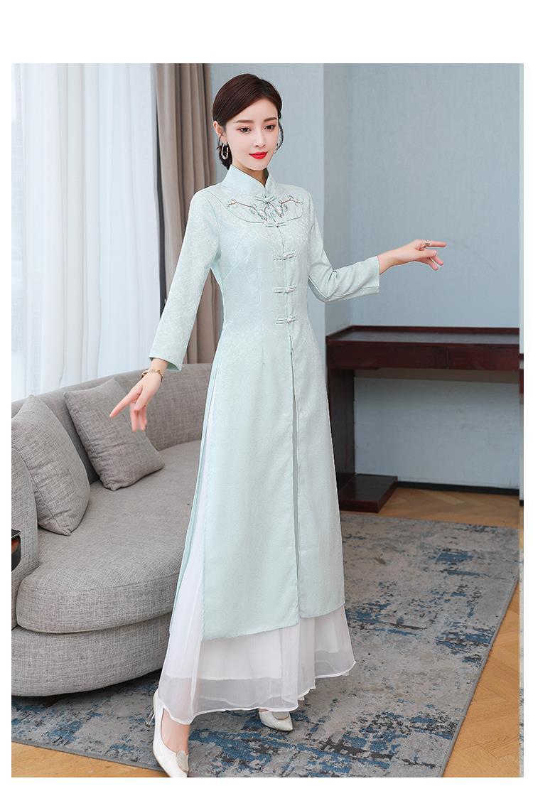 Cheongsam Modifikasi Model Baru Musim Semi dan Musim Gugur 2025 Gaun Panjang Sedang Bordir Gaya Tiongkok Gaun Pakaian Teh Zen Lengan Panjang