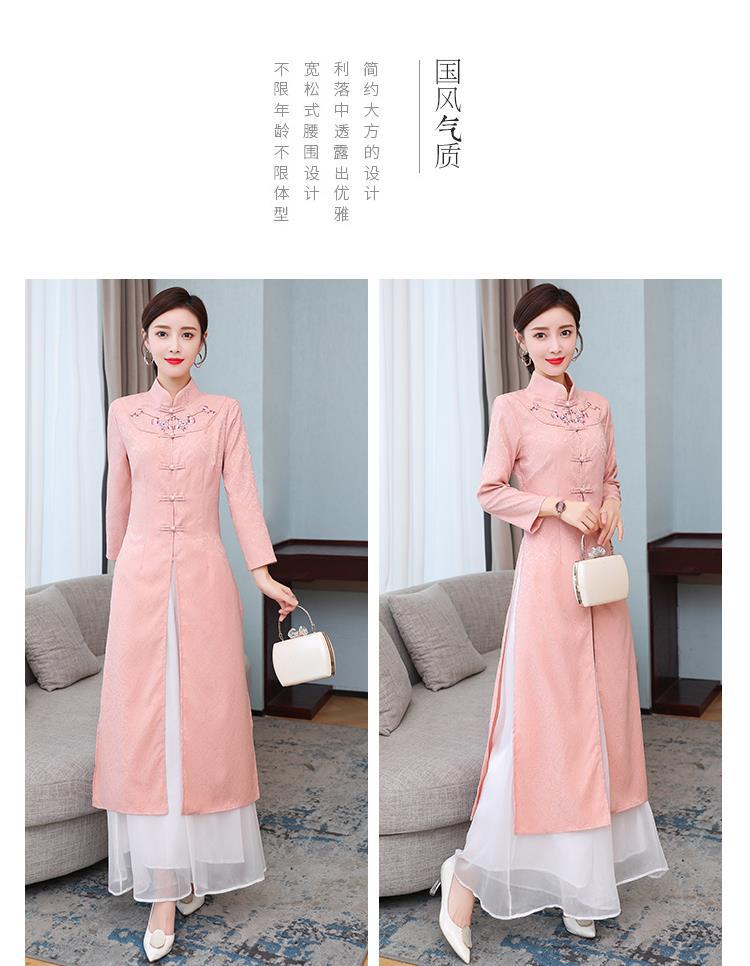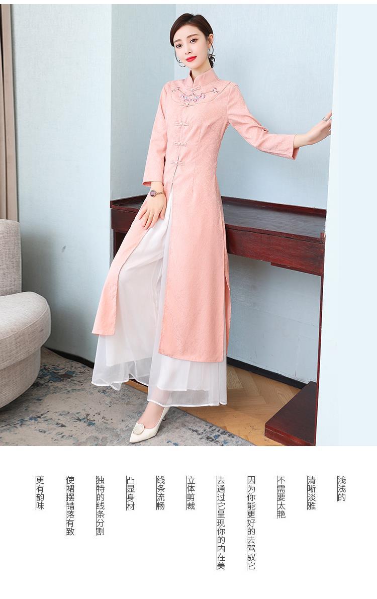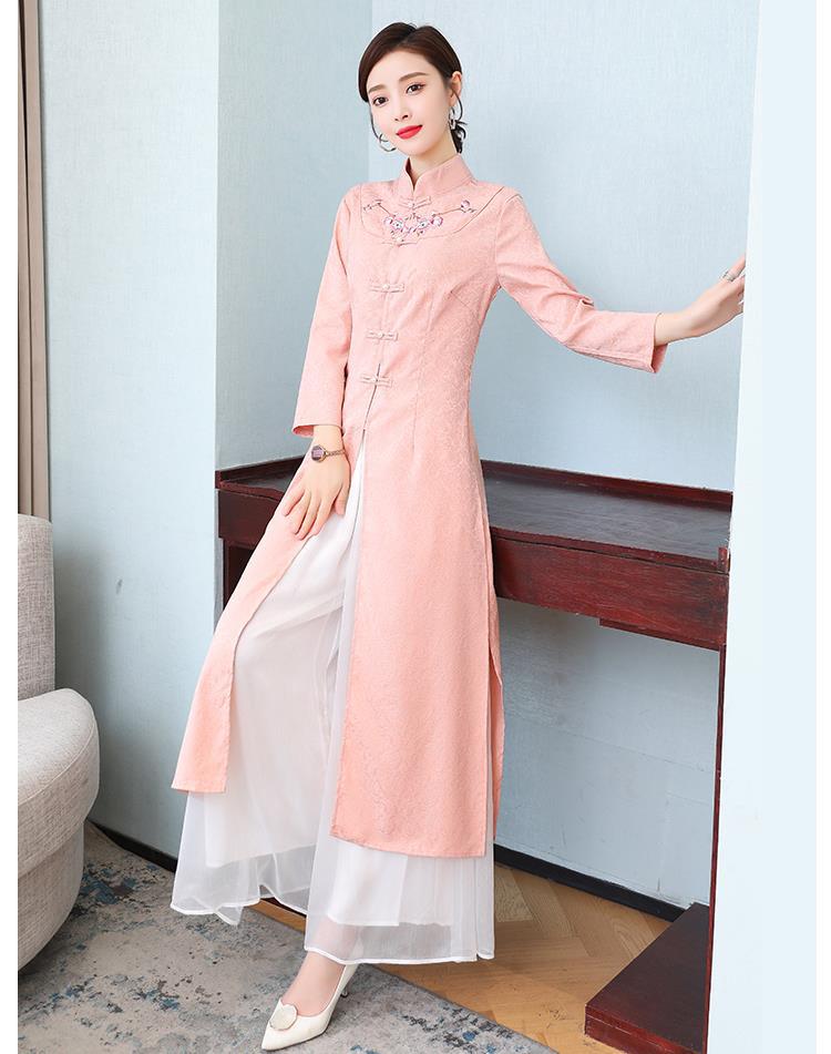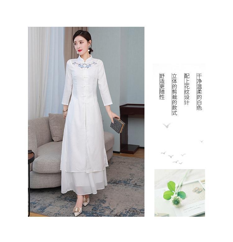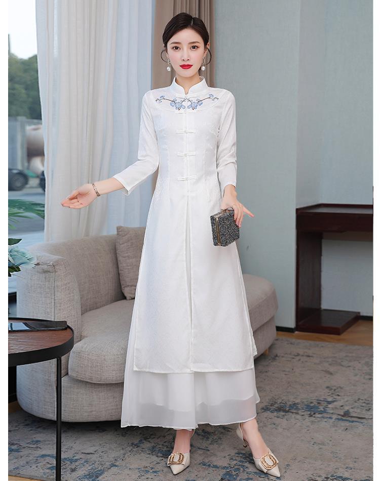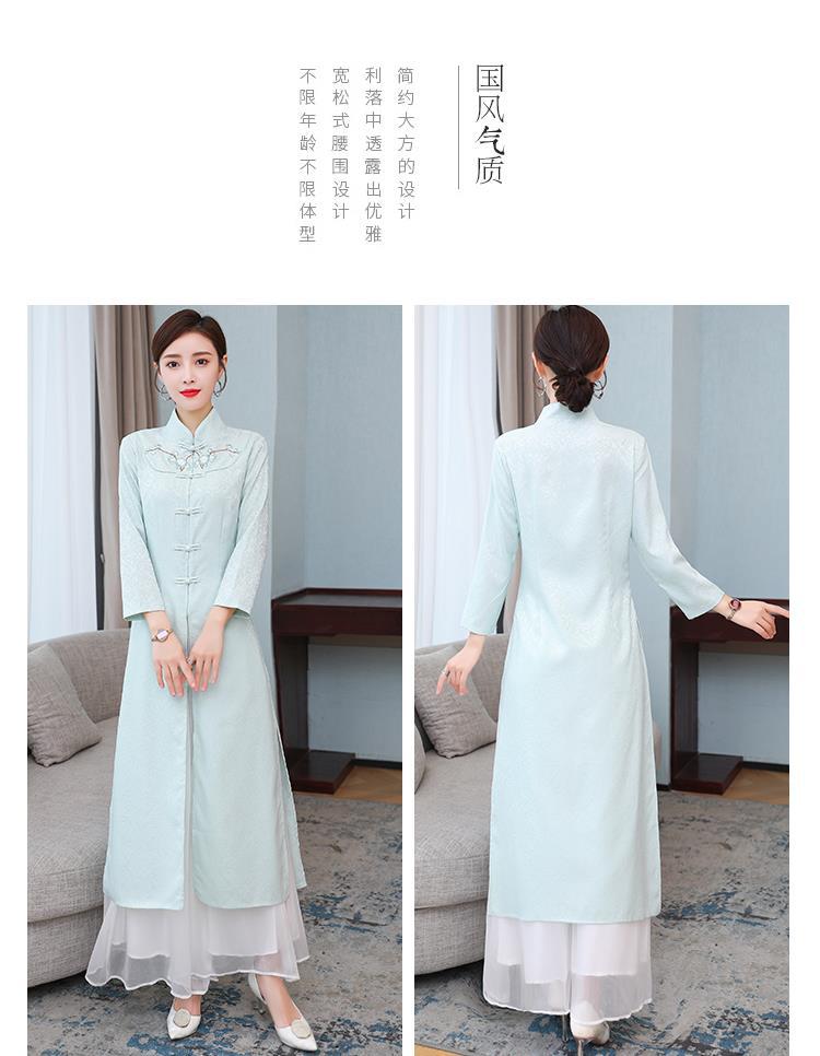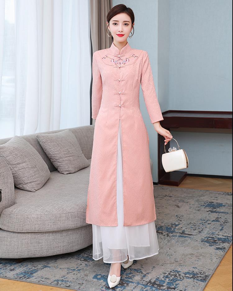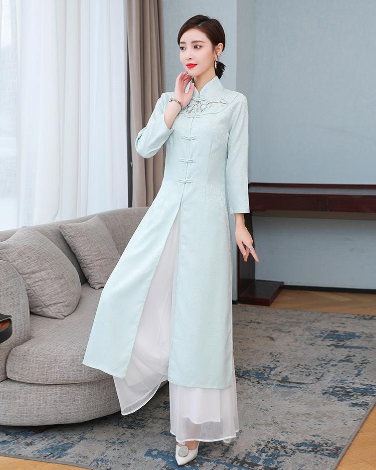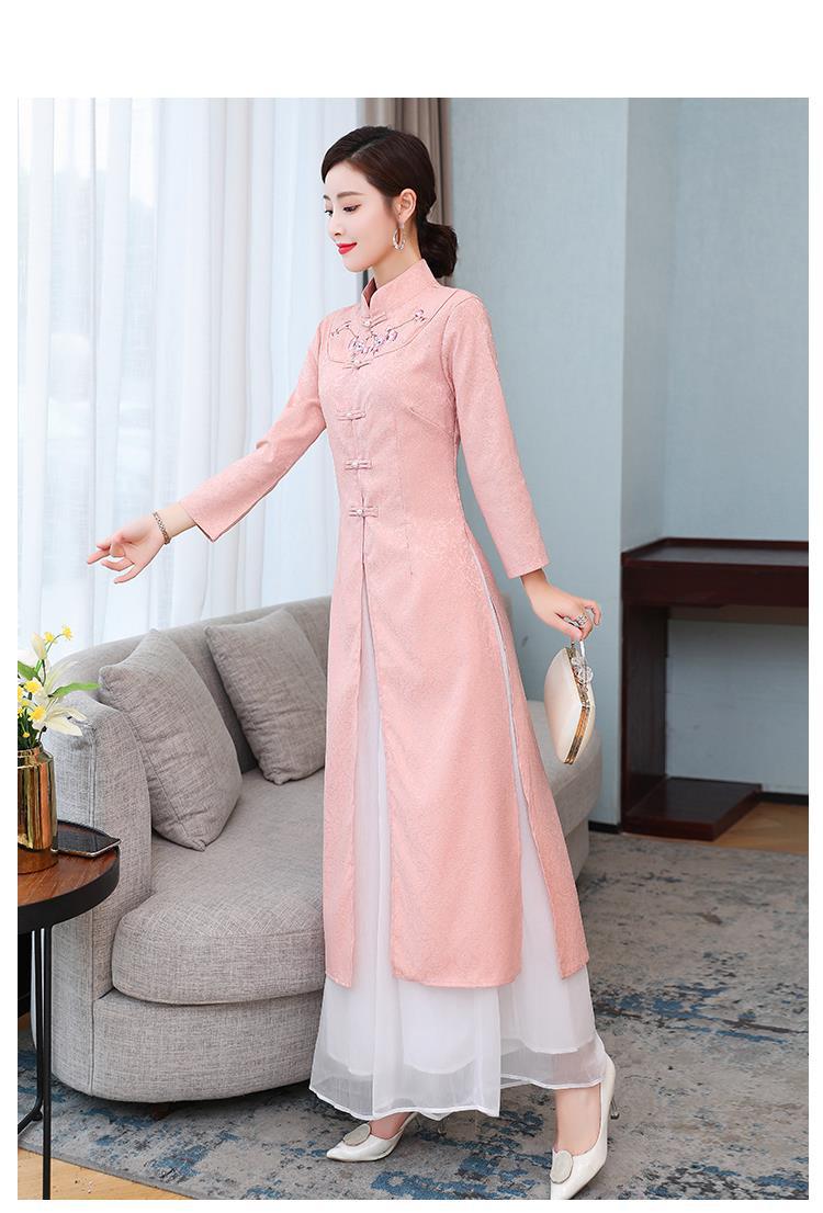 Cheongsam Modifikasi Model Baru Musim Semi dan Musim Gugur 2025 Gaun Panjang Sedang Bordir Gaya Tiongkok Gaun Pakaian Teh Zen Lengan Panjang