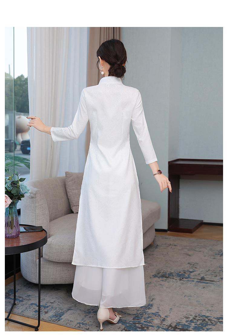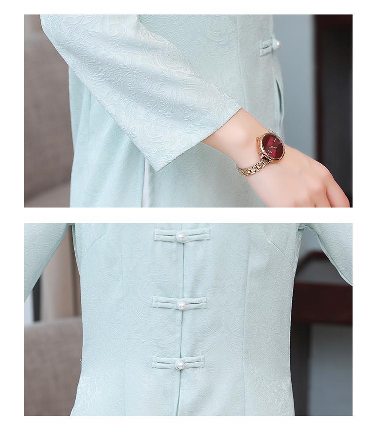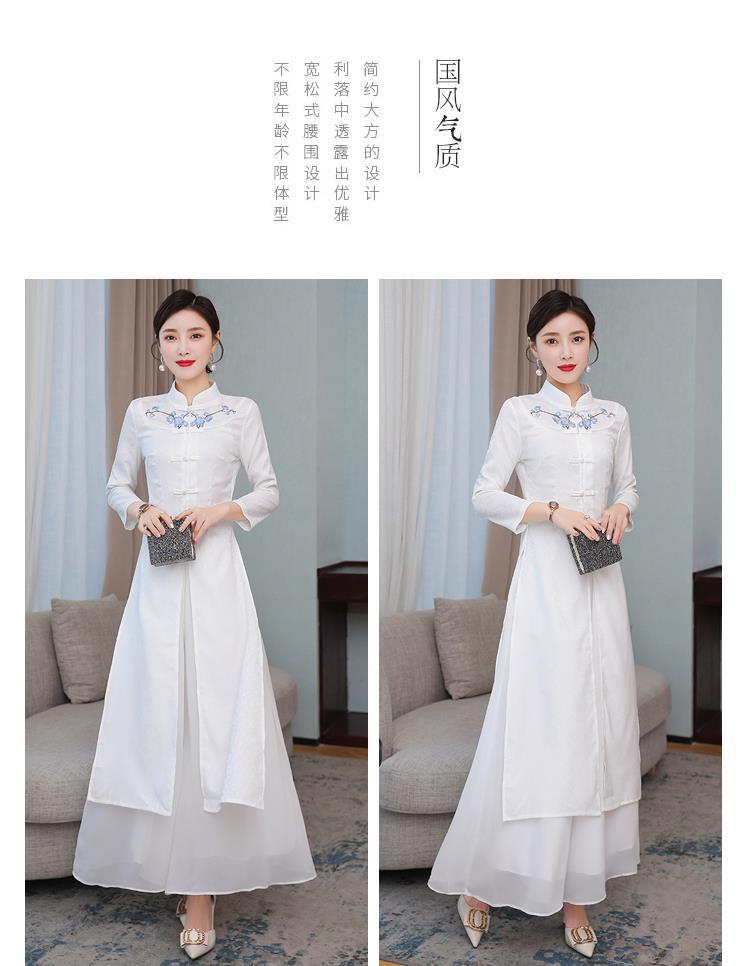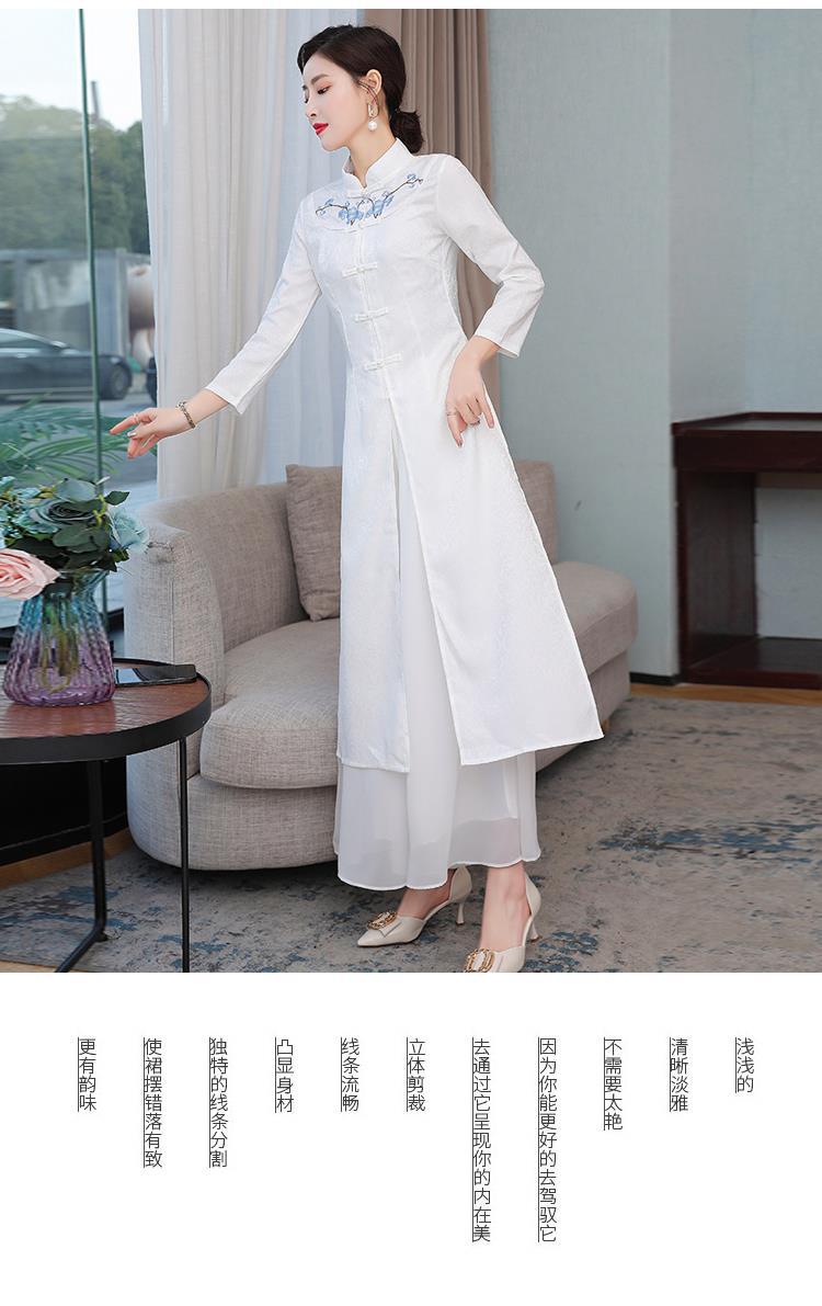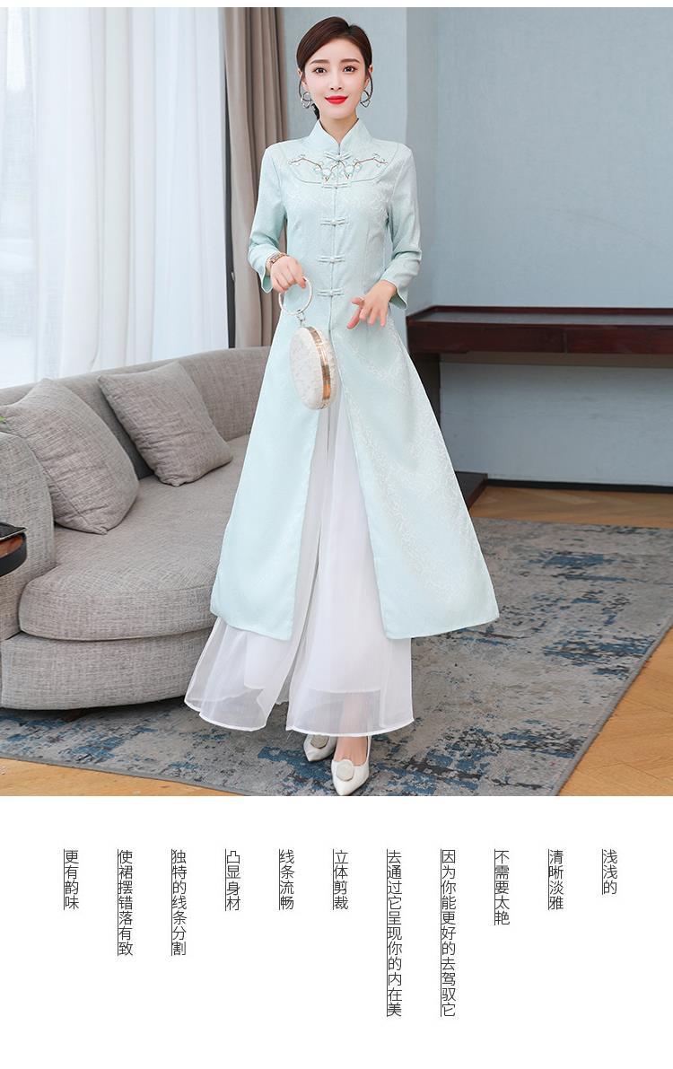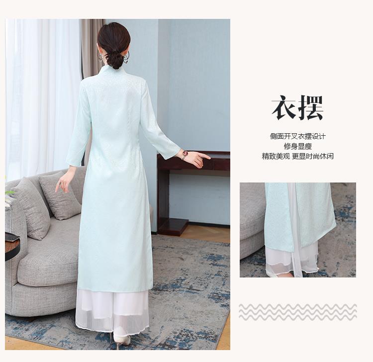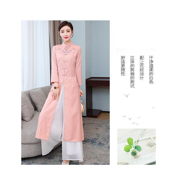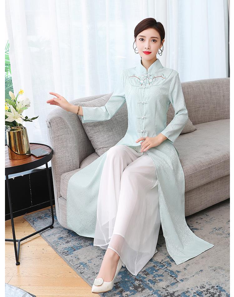 Cheongsam Modifikasi Model Baru Musim Semi dan Musim Gugur 2025 Gaun Panjang Sedang Bordir Gaya Tiongkok Gaun Pakaian Teh Zen Lengan Panjang