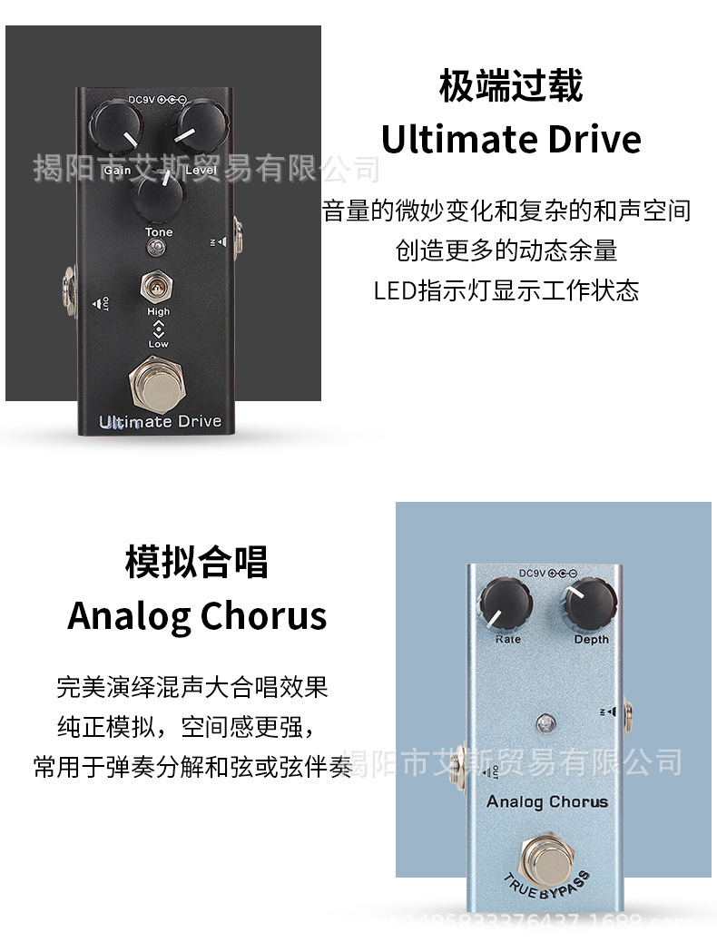 2、连接机器到您的吉他/设备,调节旋钮,以获得您想要的声音效果。