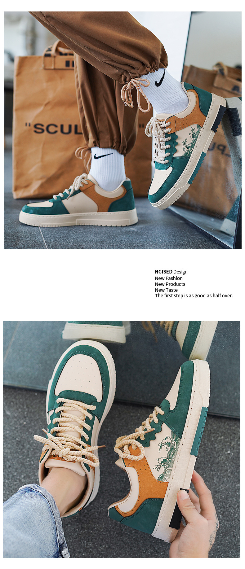 Sepatu kets gaya Hong Kong pria, sneaker datar kasual Semua cocok Musim Semi 2024