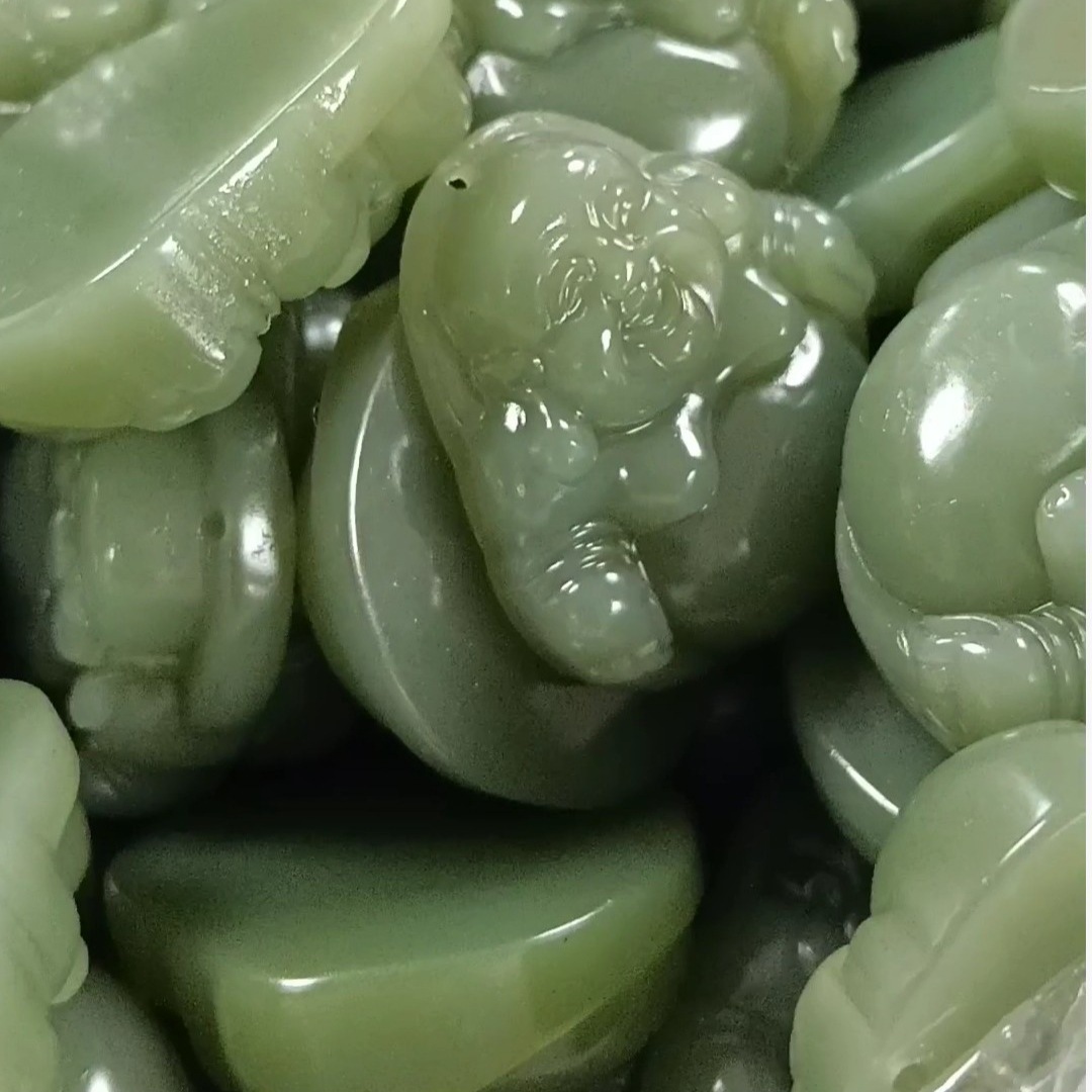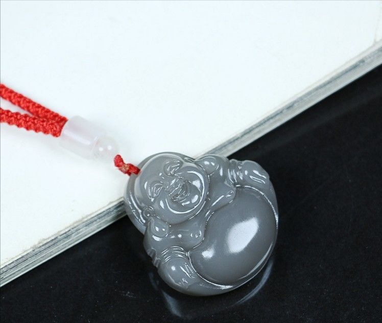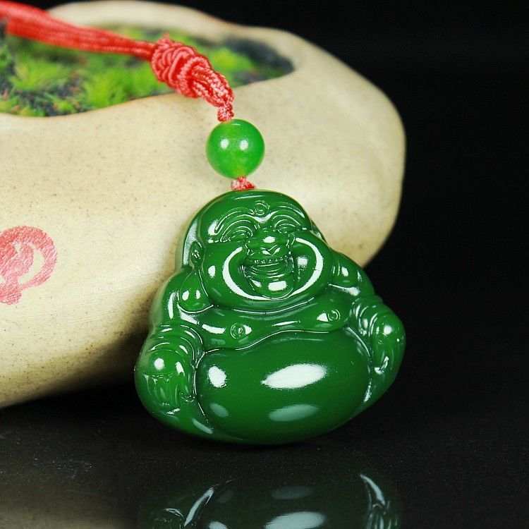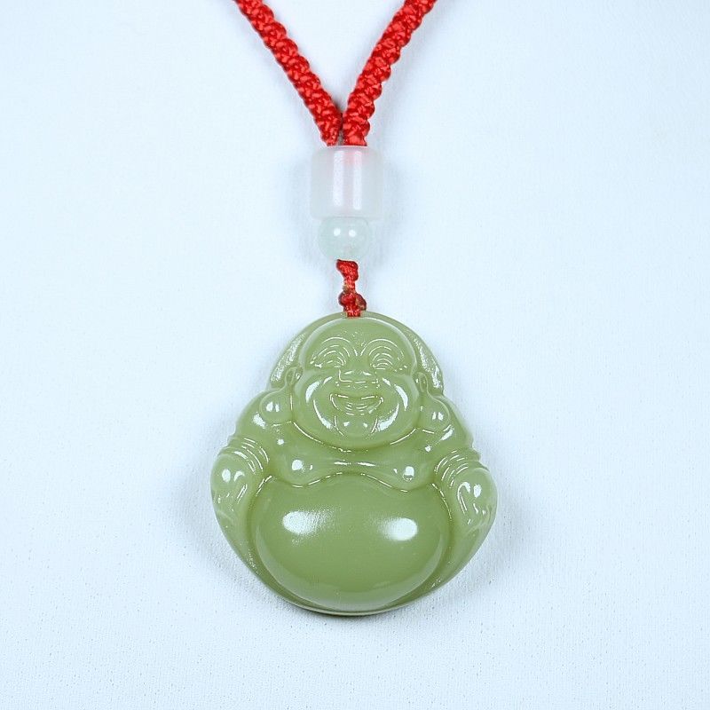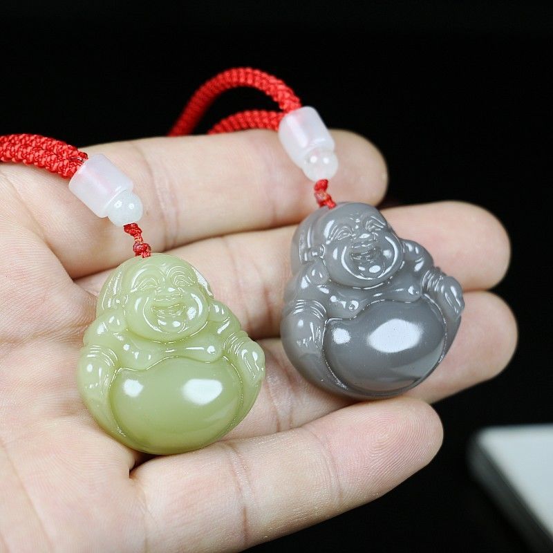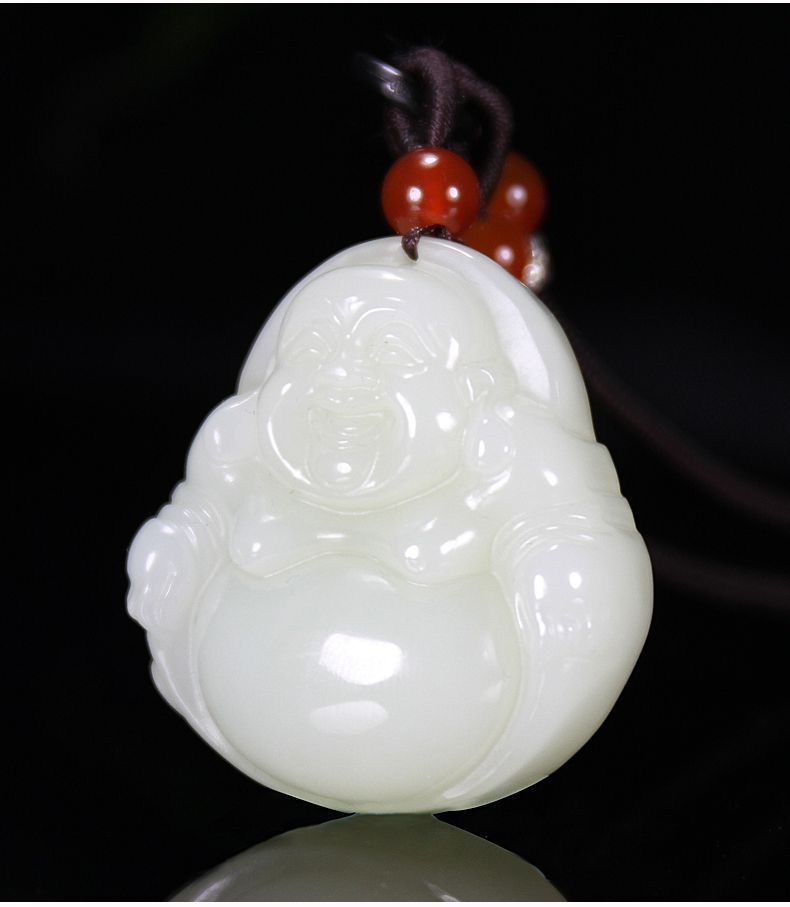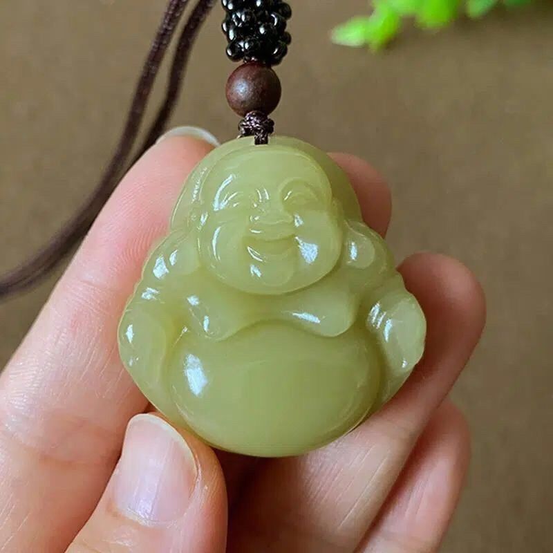 Liontin giok Hetian jade luar luar material Mongolia Buddha liontin giok wanita liontin giok Buddha tersenyum