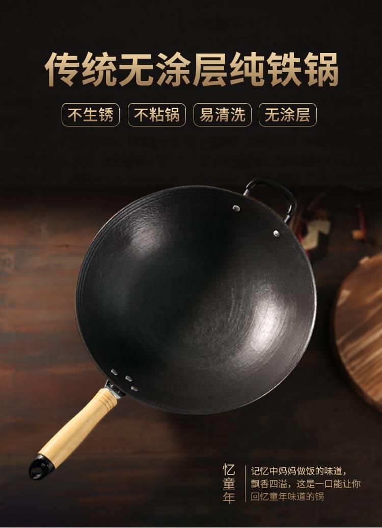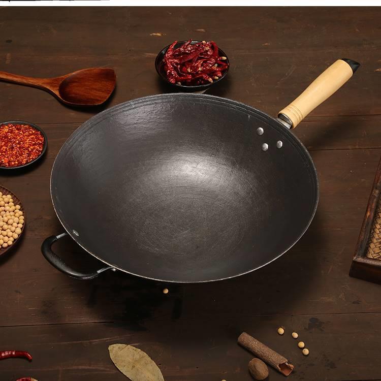 Panci Besi Tua Panci Goreng Besi Cor Panci Tidak Lengket Buatan Tangan Tanpa Lapisan Kompor Elektromagnetik Dasar Bulat Kompor Gas Panci Goreng Panci