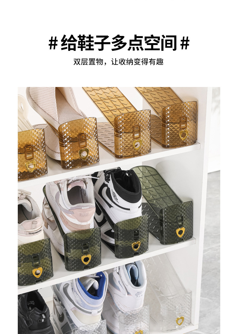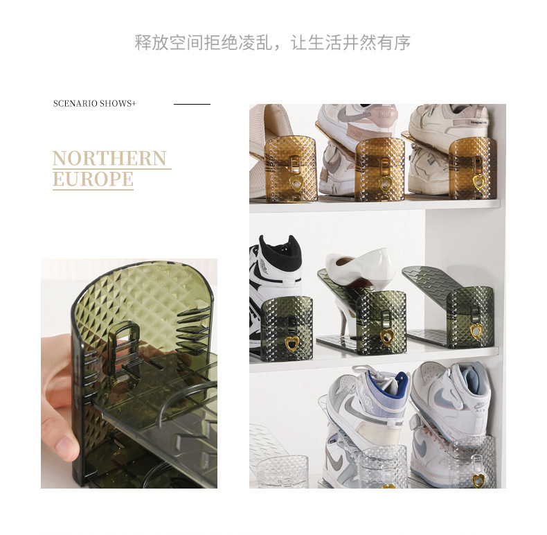 Alat ajaib penyimpanan sepatu hemat ruang, rak sepatu dua lapis untuk penggunaan di rumah, lemari sepatu tebal terintegrasi yang dapat disesuaikan, hemat ruang.