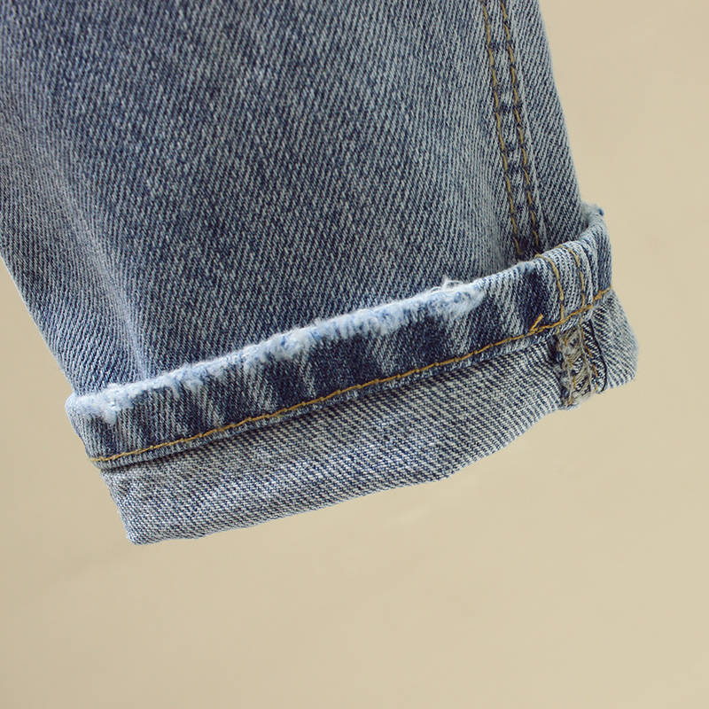 Celana jins sobek untuk wanita, celana harem daddy trendi ramping pinggang tinggi longgar baru gaya Korea Musim Semi dan Gugur