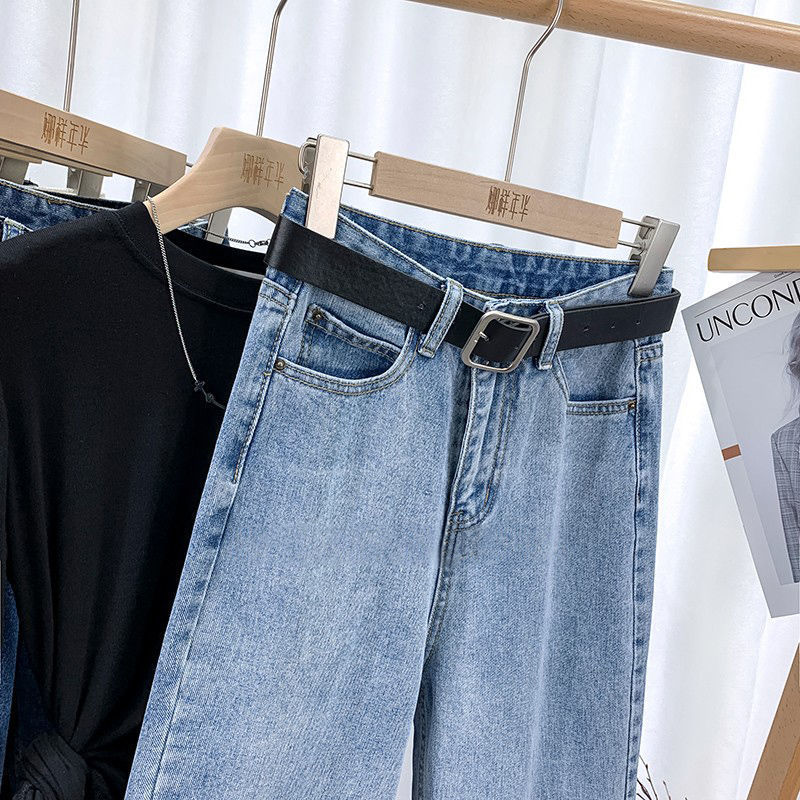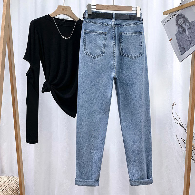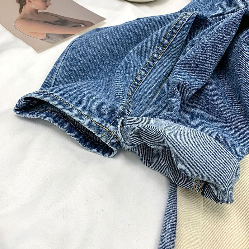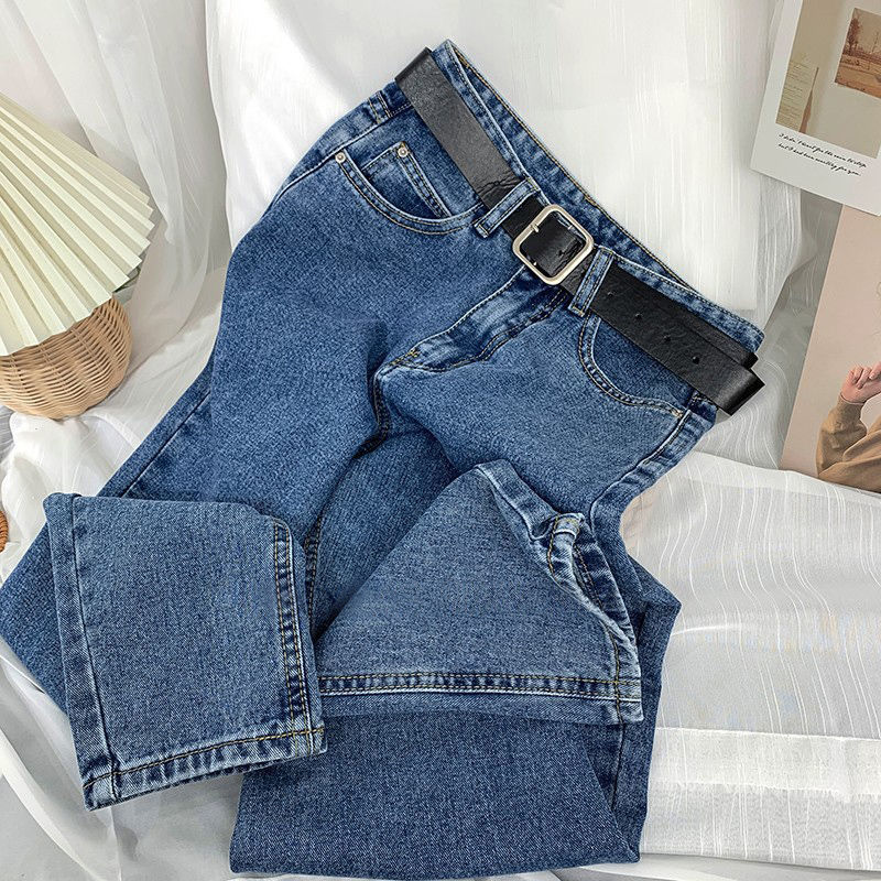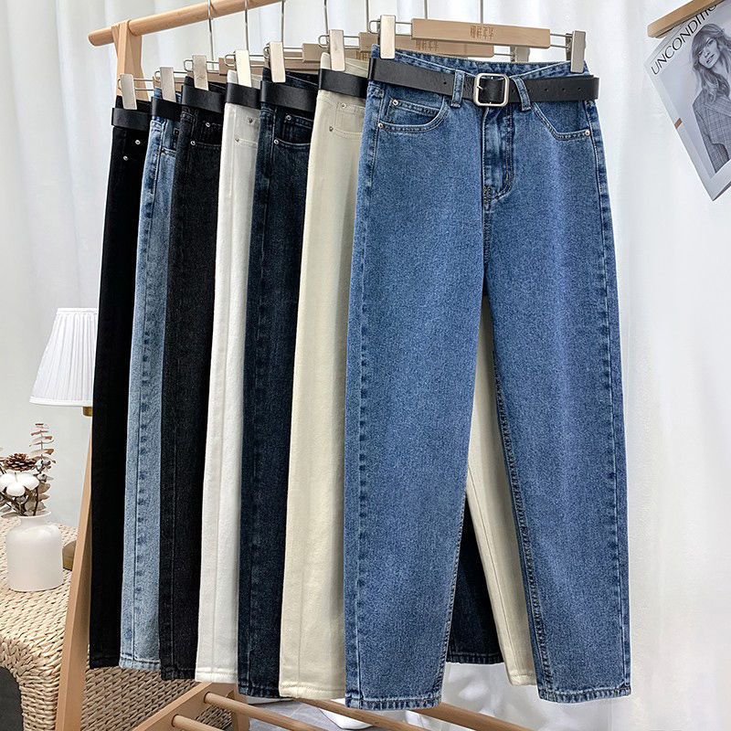 Celana Denim Daddy wanita pinggang tinggi pelangsing gaya Korea 393 celana harem lobak kaki lurus longgar