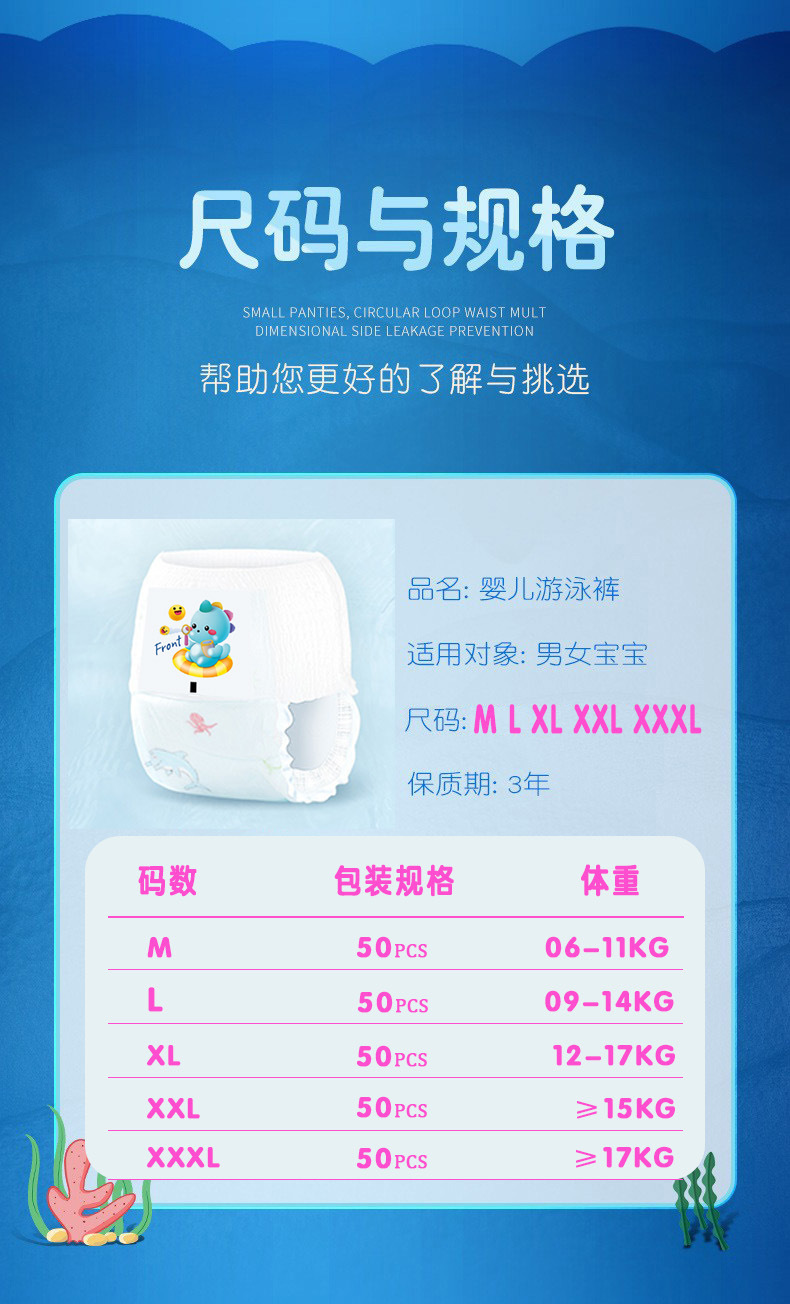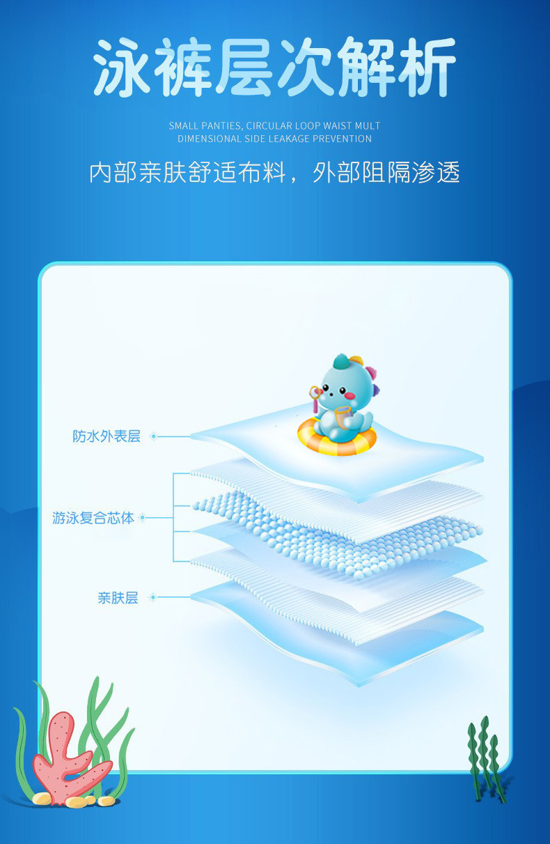 Perlengkapan kolam renang, celana renang anti air untuk bayi, popok sekali pakai untuk bayi, celana all-in-one, kemasan sederhana, agen grosir