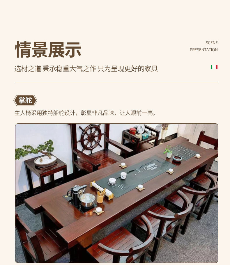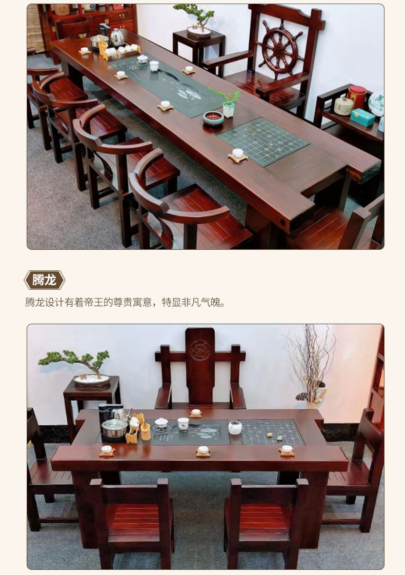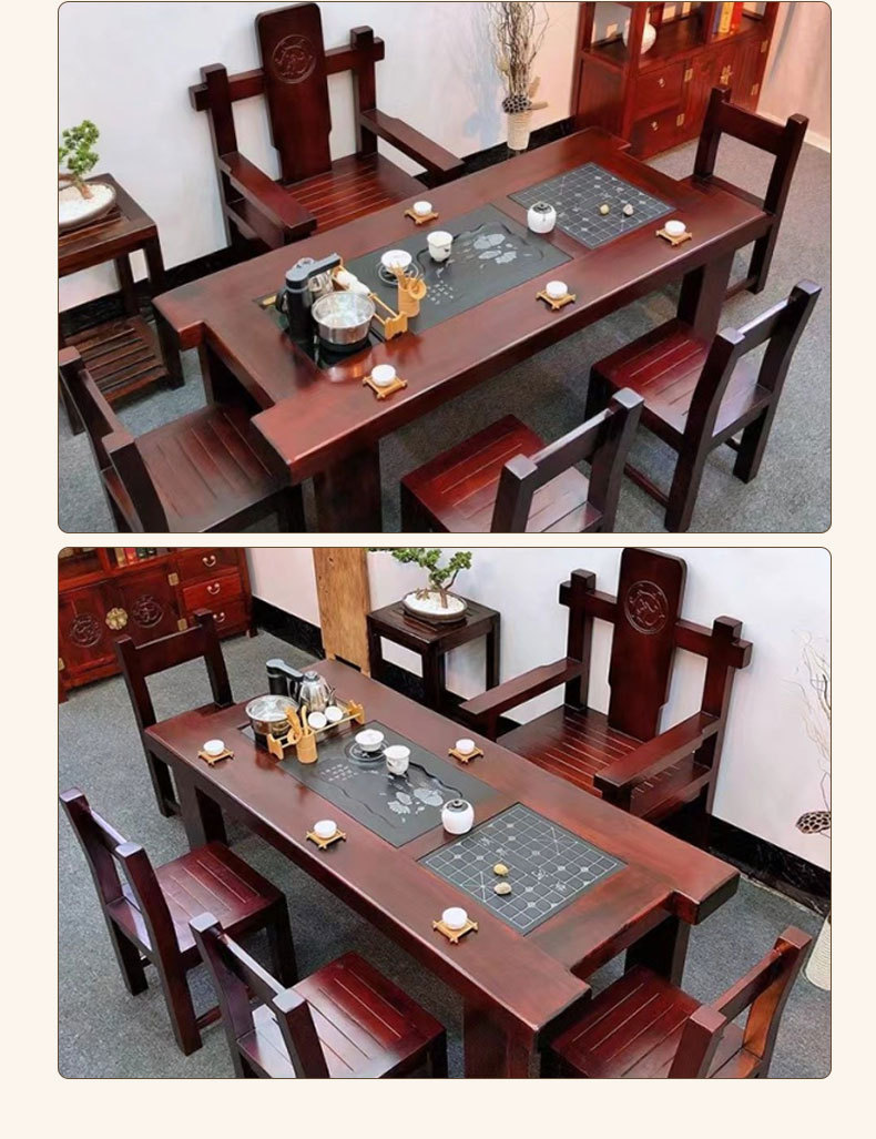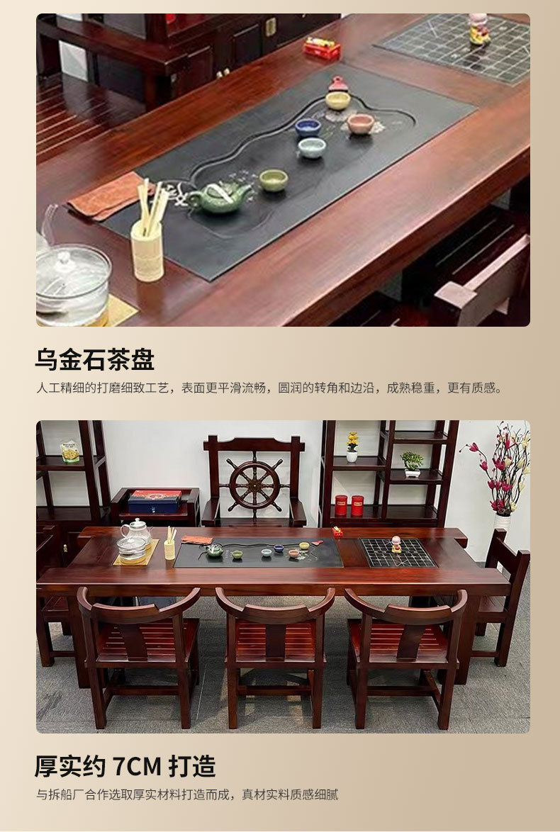 Meja Kopi Kung Fu Kayu Solid Rumah Tangga Kombinasi Gaya Cina Baru Meja Teh dan Kursi Kayu Kapal Lama Kantor Terintegrasi Meja Teh Papan Besar Kreatif
