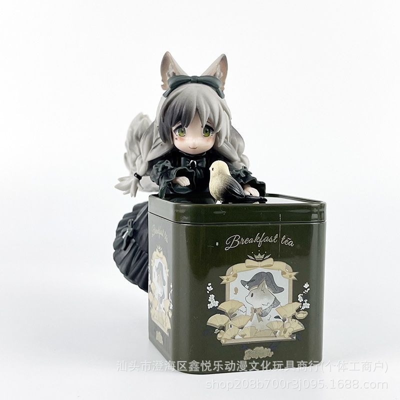 RIBOSESTAR Shadow Mage Tea Party Cat Tea Can Cat Raccoon Tabby Cat Figure Anime Doll Decoration Model Trendy Toy