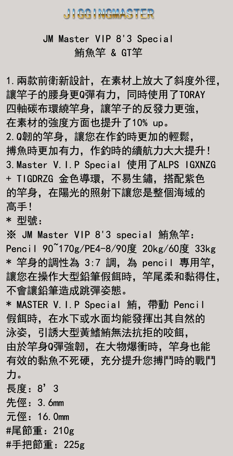 Taiwan JM Tong Yuan VIP 83 khusus laut dalam Laut Selatan minyak memancing GT tongkat pancing gelombang tuna tongkat berbaring