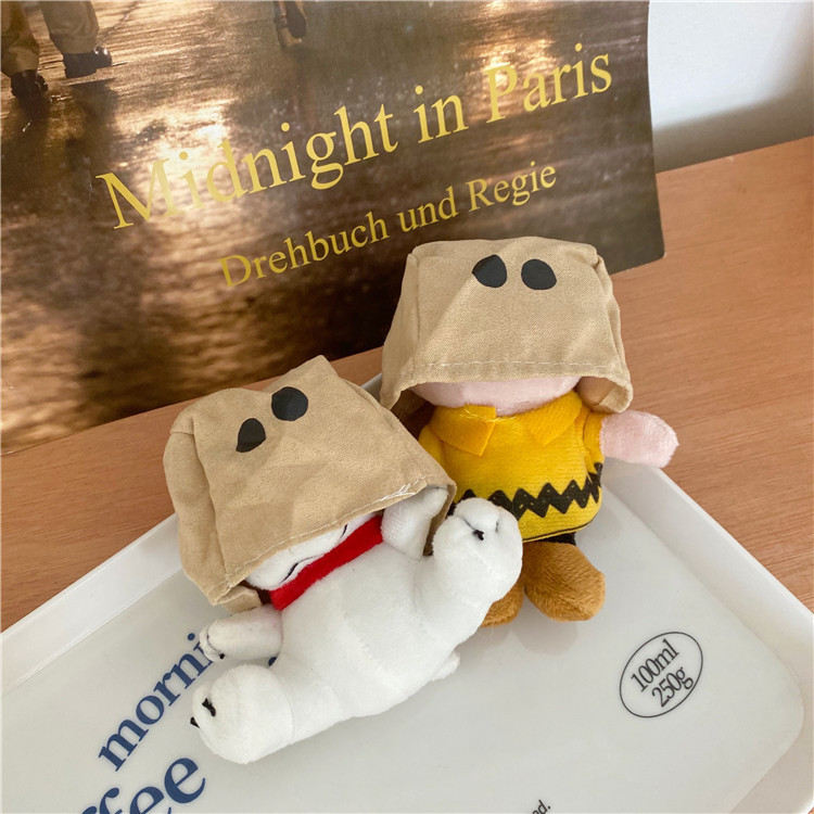 Tas kertas mewah lucu berkerudung Snoopy Charlie tas liontin boneka mewah gantungan kunci buku liontin