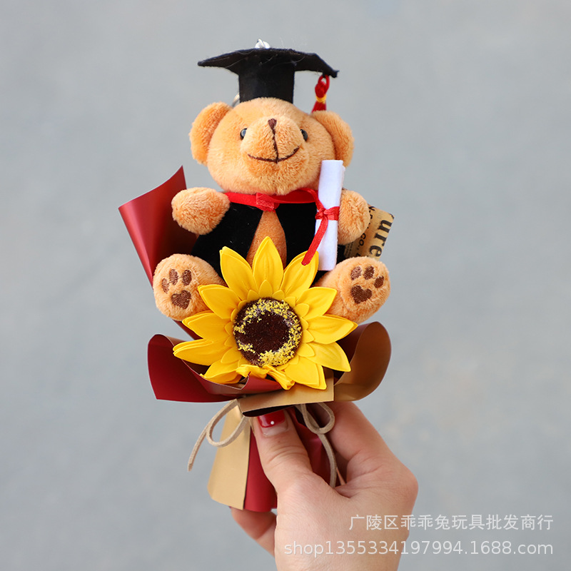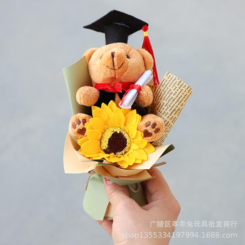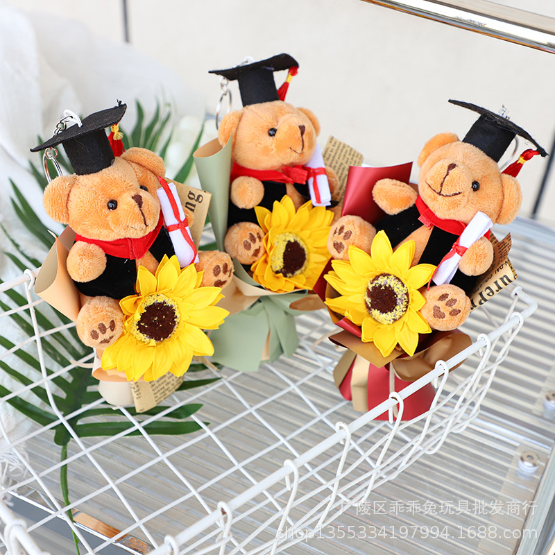Buket beruang mini dokter, hadiah mini simulasi bunga matahari boneka beruang