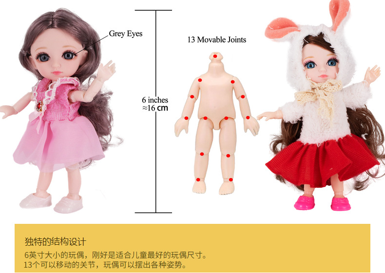 Boneka BJD 16cm, setelan putri 6 inci Loli BA kecil Biyang bersama anak perempuan grosir