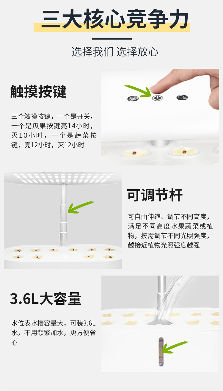 Lampu tanaman LED spektrum penuh untuk buah dan sayuran, mesin pertumbuhan hidroponik tanpa tanah dalam ruangan, lampu pertumbuhan tanaman hijau berpori