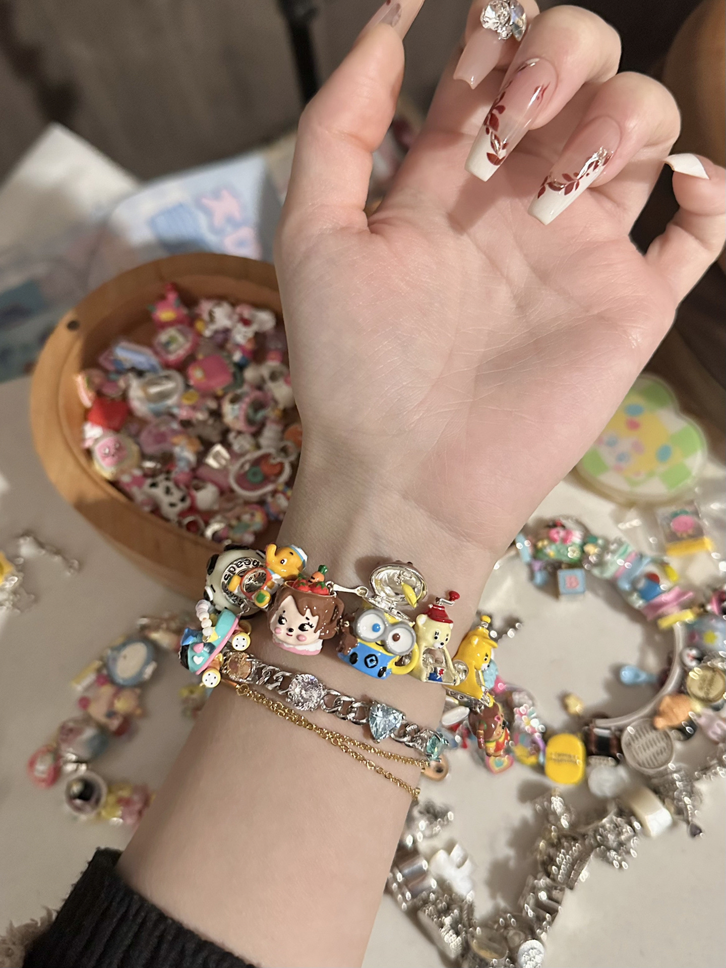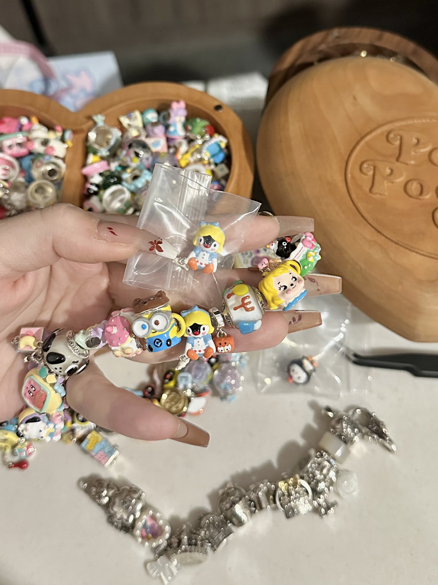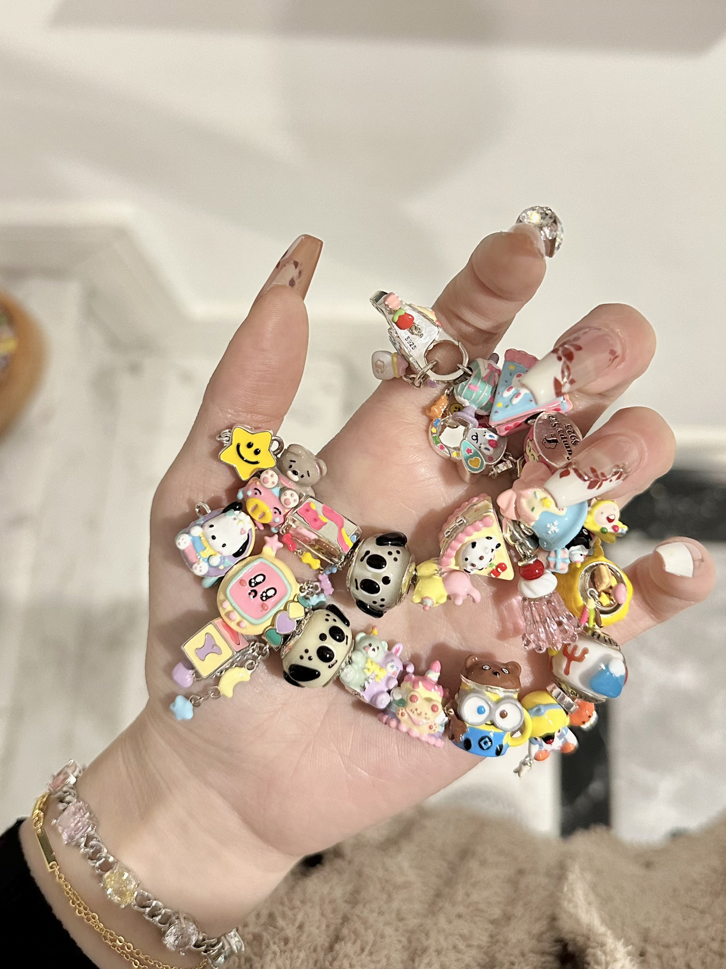 Barang asli resmi manik-manik asli cangkir Beruang kuning kecil manik-manik longgar DIY gelang dengan buku merah kecil gaya sama