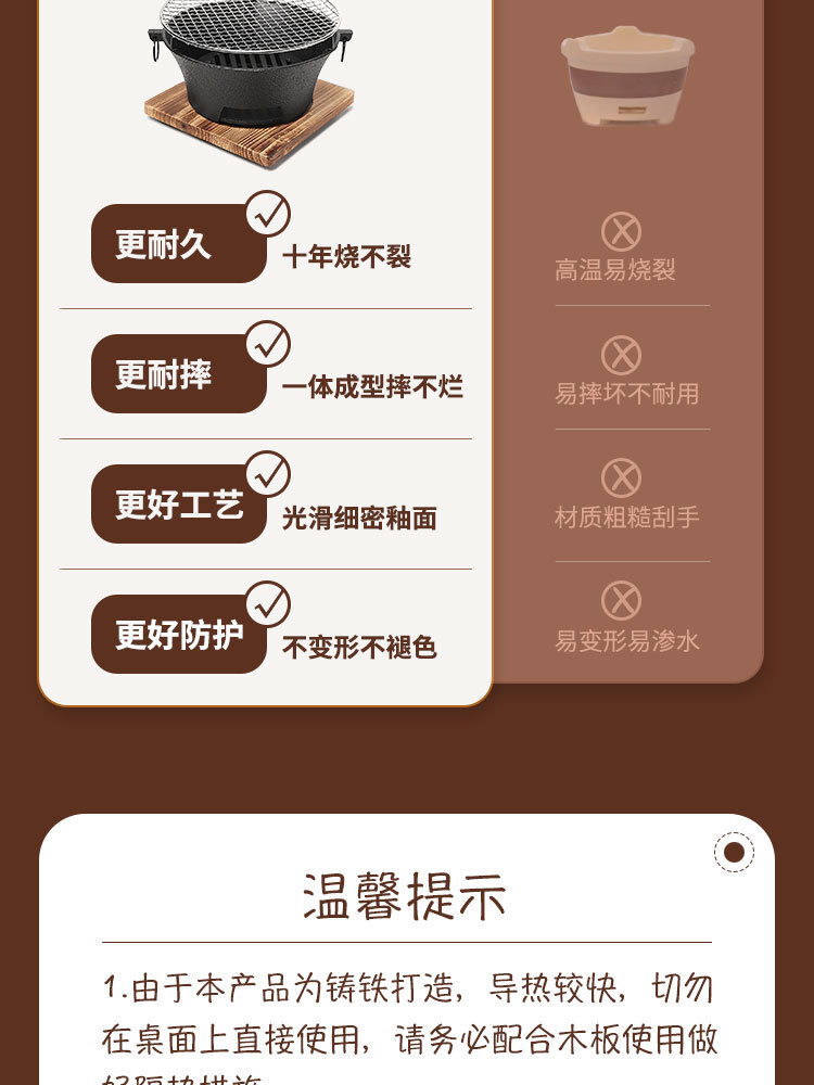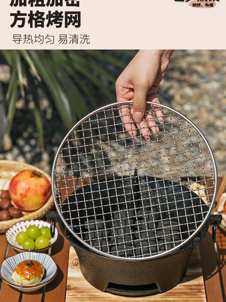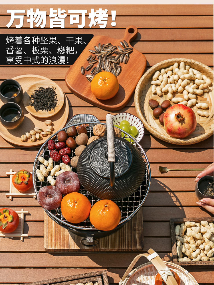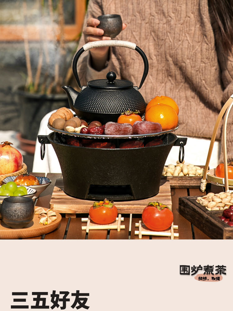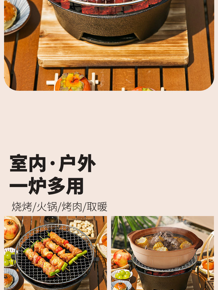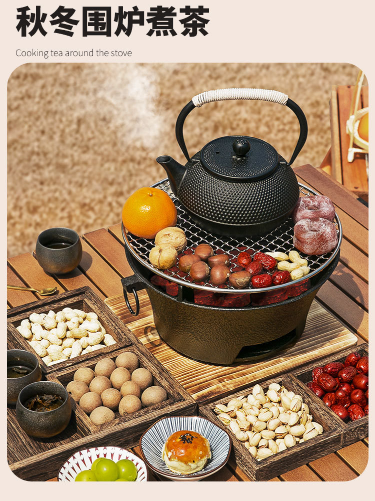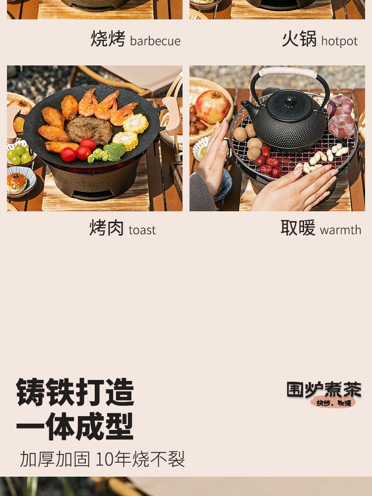 ✓围炉煮茶铸铁炭炉烧烤炉家用烤火炉户外炉室内老式木碳围