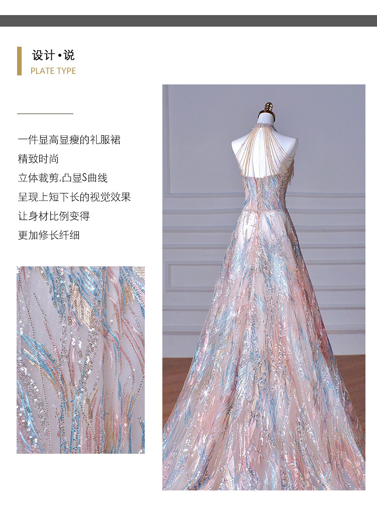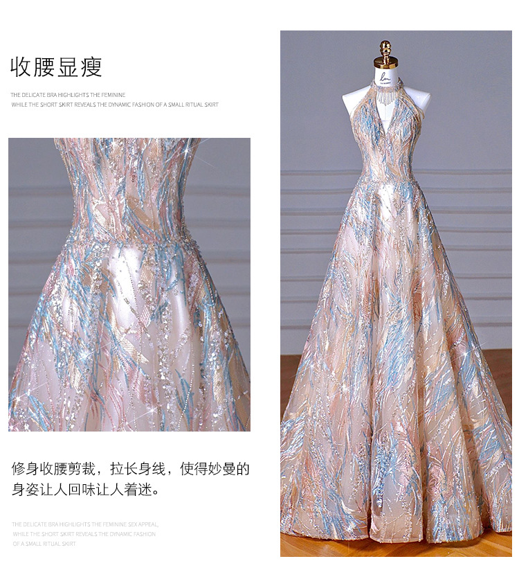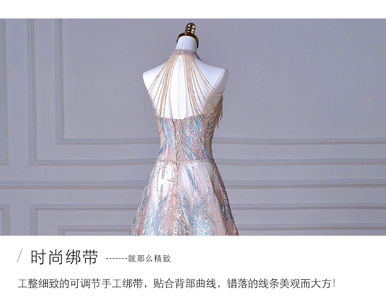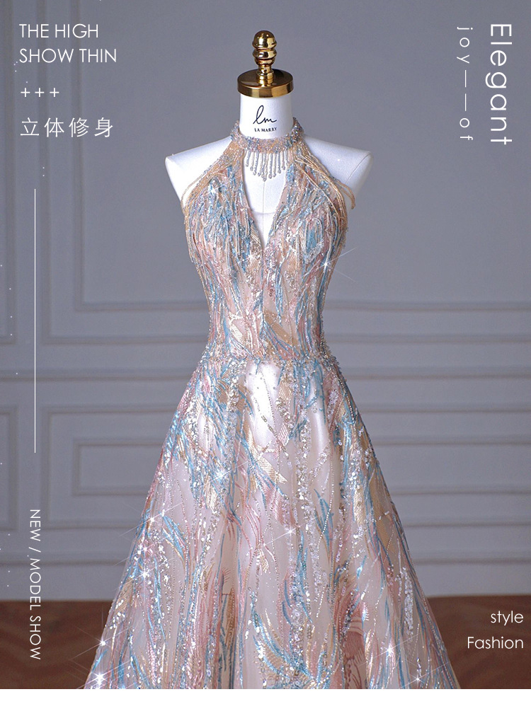 Gaun malam bergaya halter neck ala Prancis, gaya lintas batas, model baru 2026, gaya niche mewah ringan, gaun pesta, gaun resepsi pengantin.