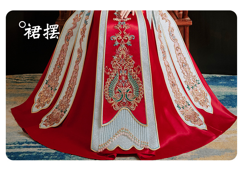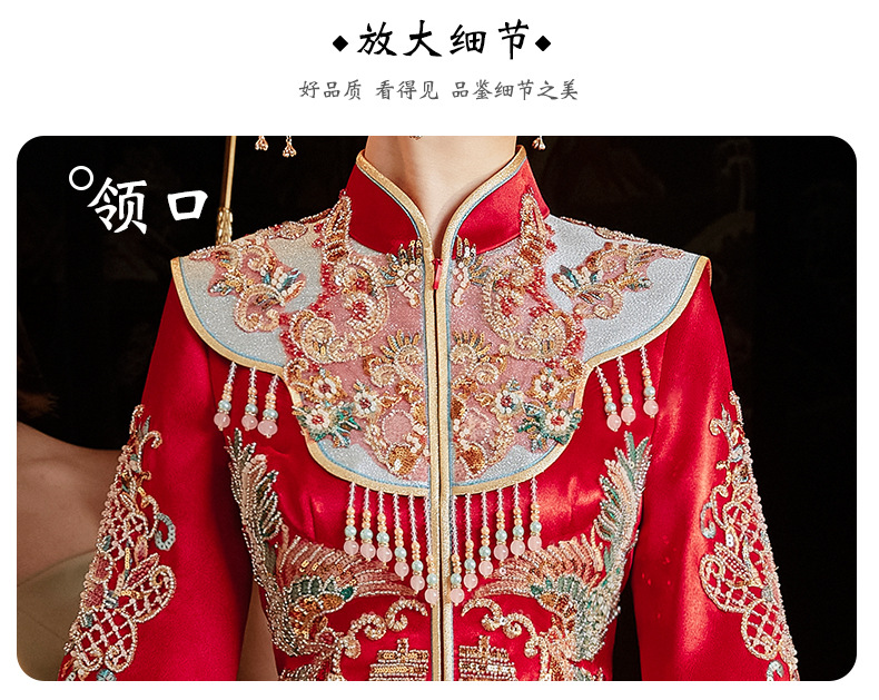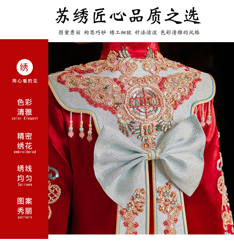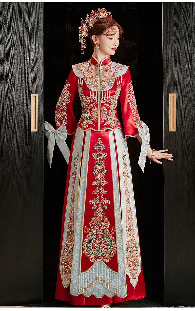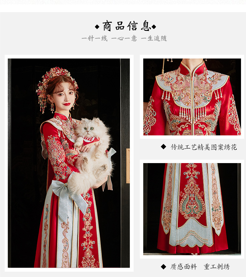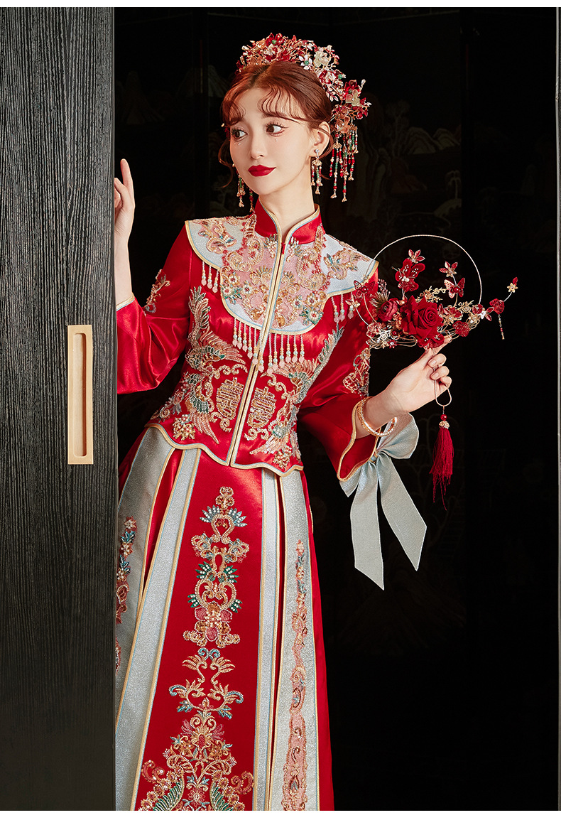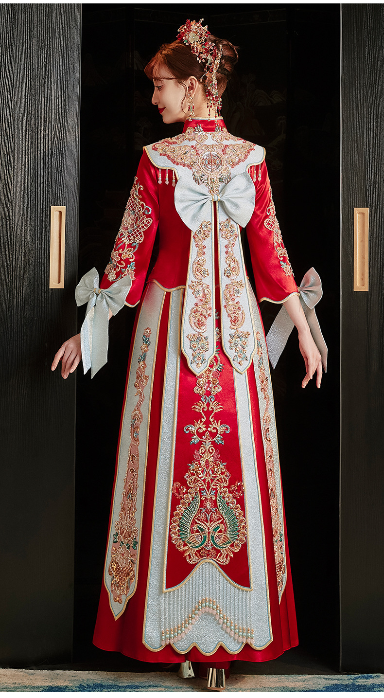 Gaun Pengantin Gaya Cina Musim Semi/Panas 2025 Xiuhe Clothing, Gaun Pengantin Vintage Mewah dengan Detail Kerajinan Berat, Model Kimono Xiuhe Motif Naga dan Phoenix.