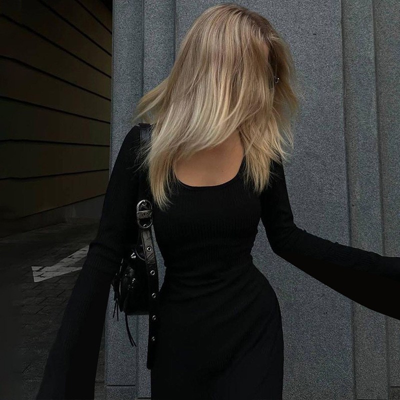 Gaun Muslim wanita lengan panjang, mode Eropa dan Amerika warna polos, jubah kasual lintas batas rok panjang sederhana Timur Tengah