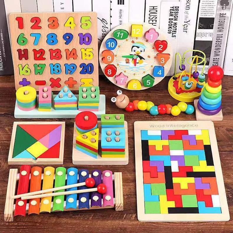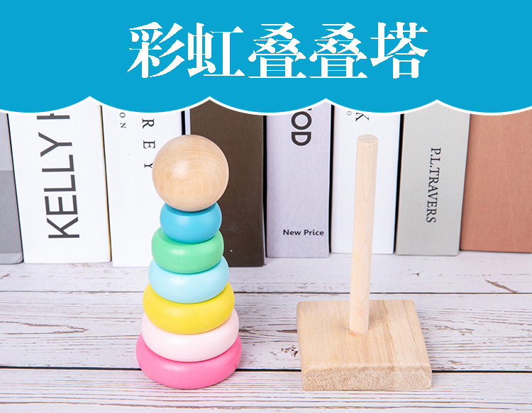 Teka-teki pencerahan anak-anak bayi piano ketukan delapan-nada jam manik kecil menara pelangi mainan kayu pendidikan dini bayi usia 0-3 tahun