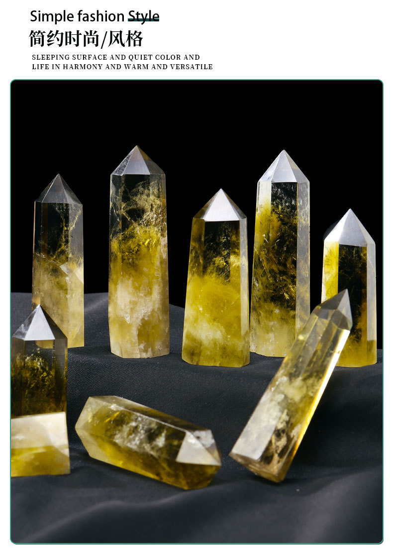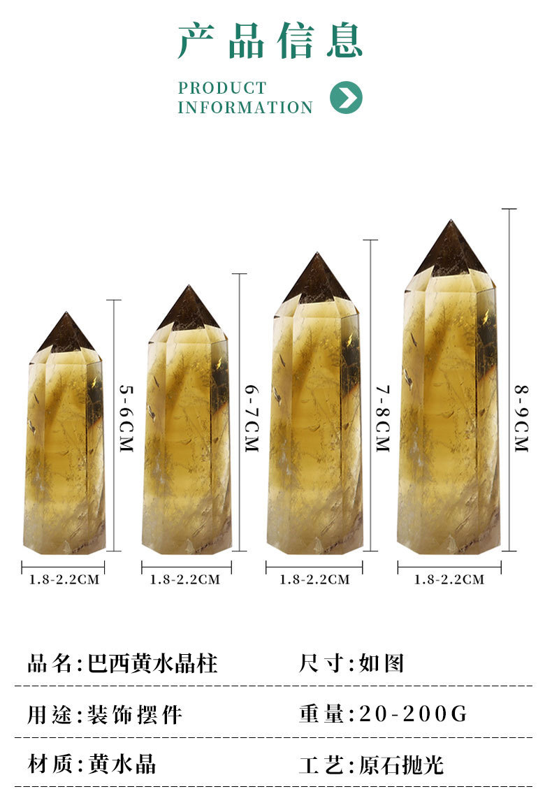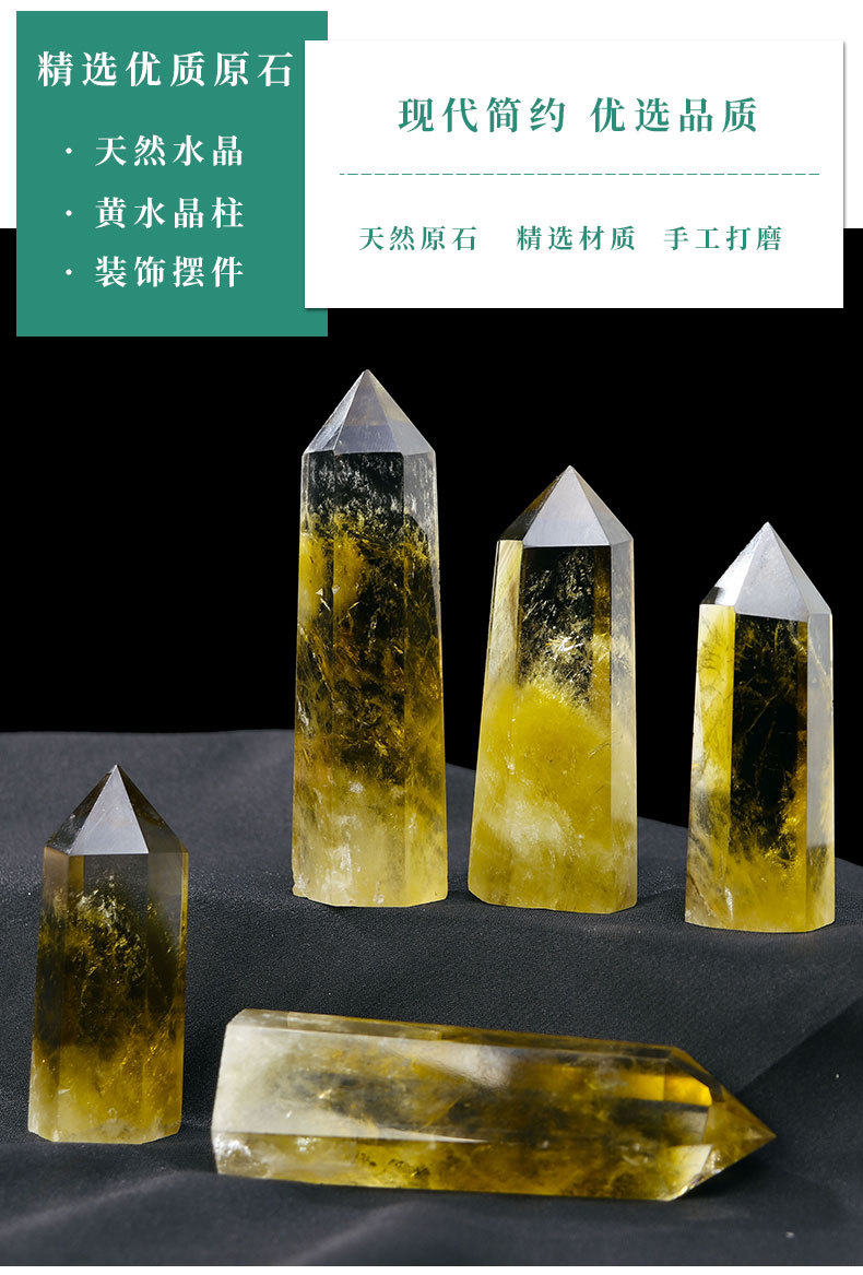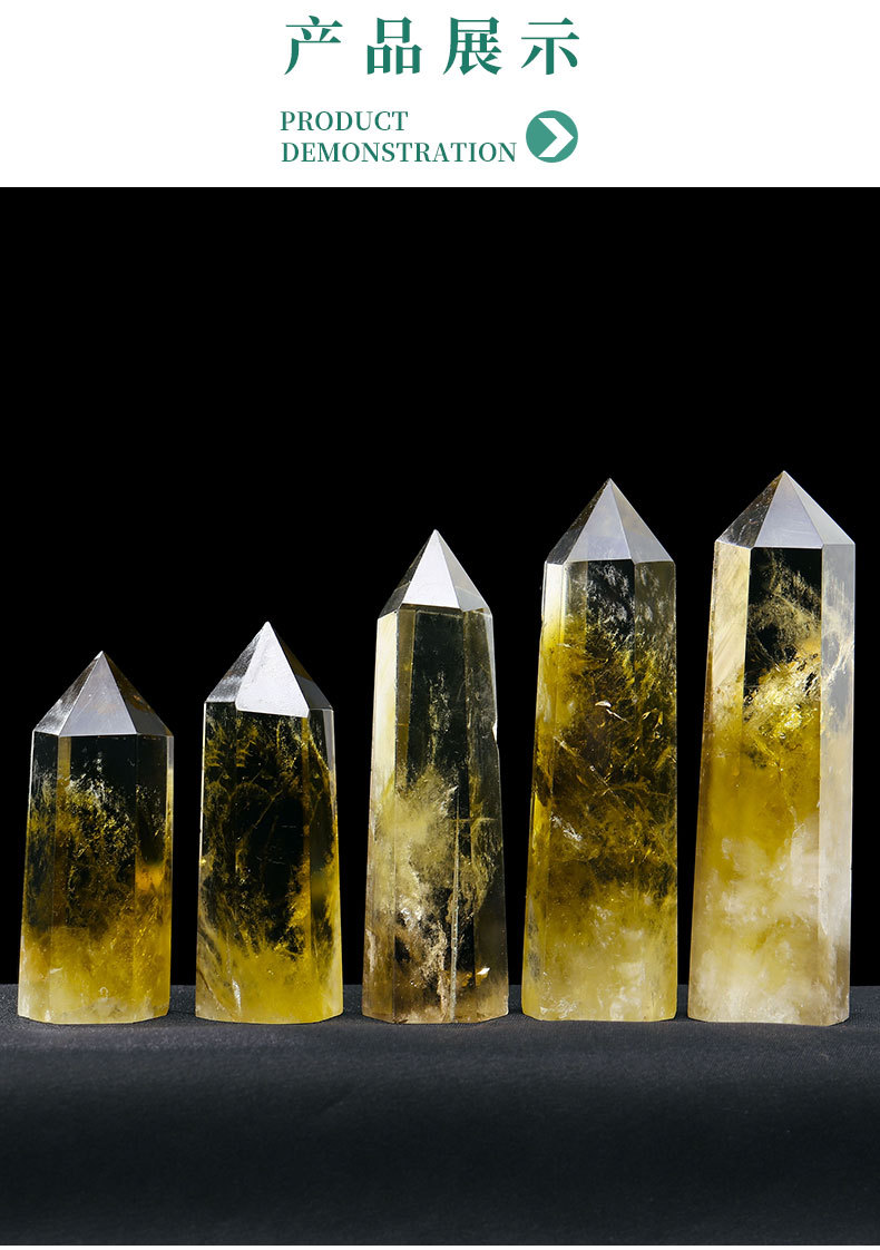 Kristal alami Brasil citrine kolom tunggal runcing heksagonal batu asli dekorasi desktop rumah ornamen degaussing grosir