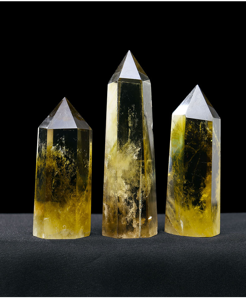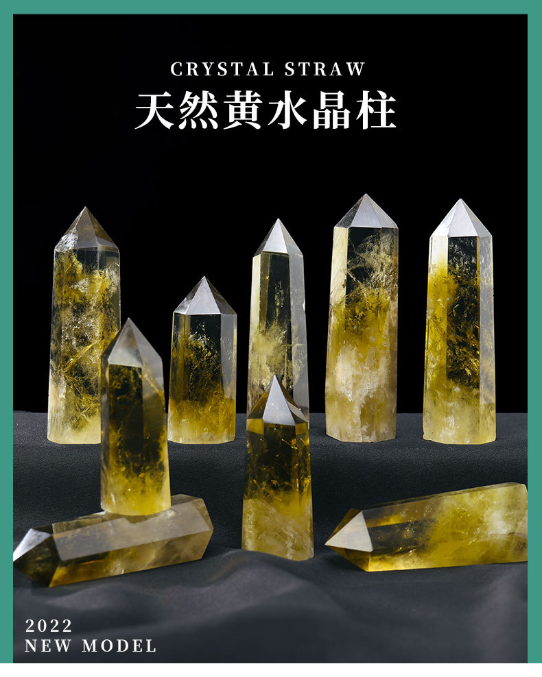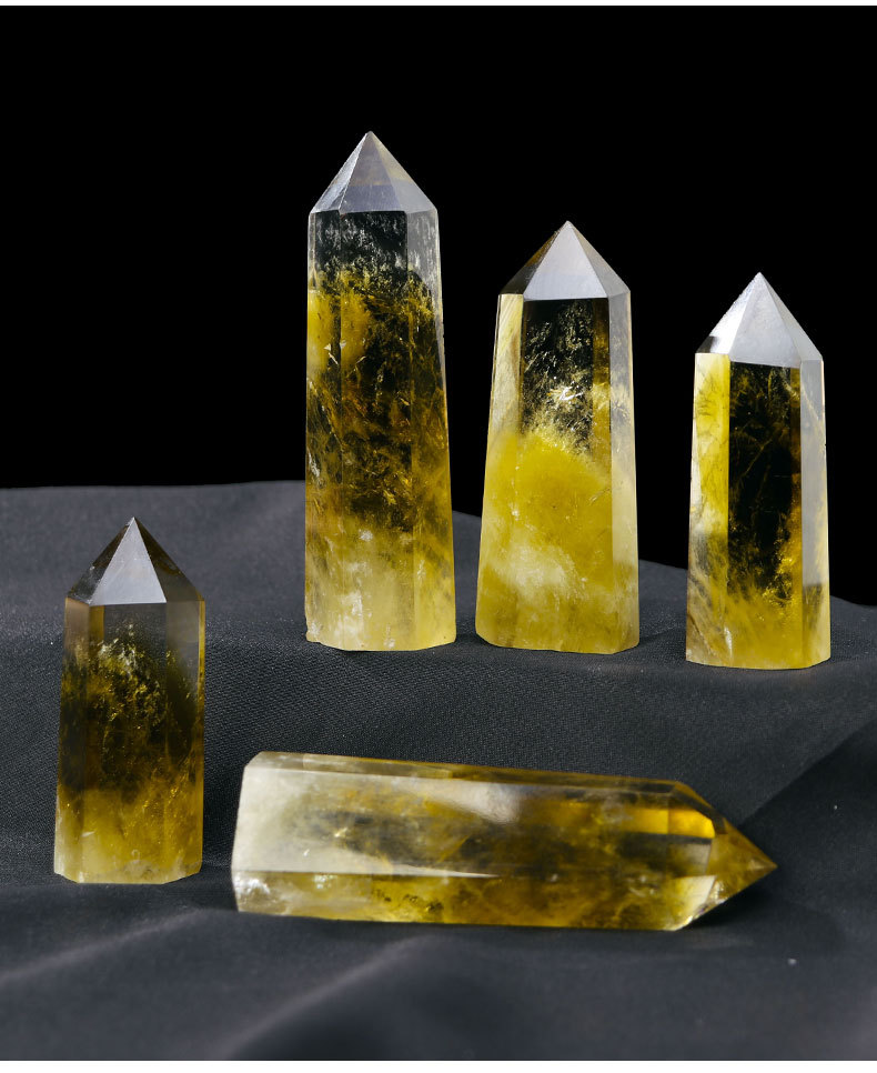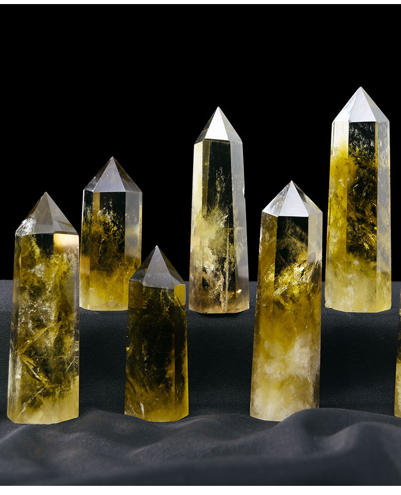 Kristal alami Brasil citrine kolom tunggal runcing heksagonal batu asli dekorasi desktop rumah ornamen degaussing grosir