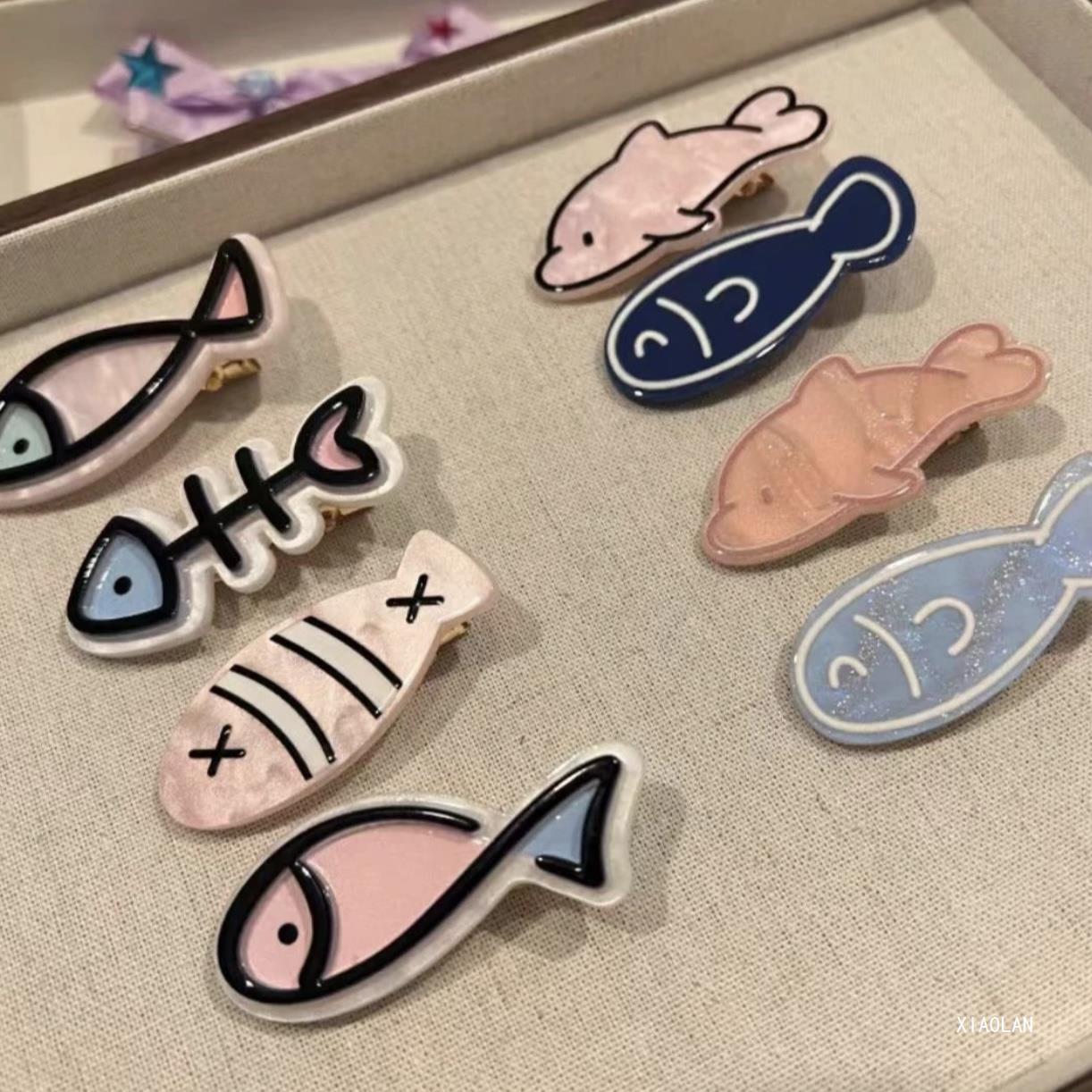 Jepit rambut kartun wanita lucu aksesori rambut ikan klip poni jepit rambut tulang ikan lucu Jepang ins klip samping wanita