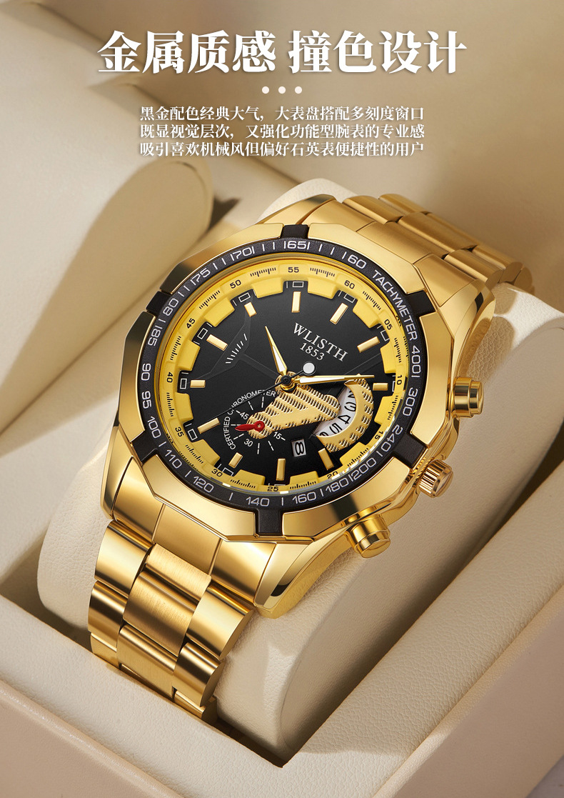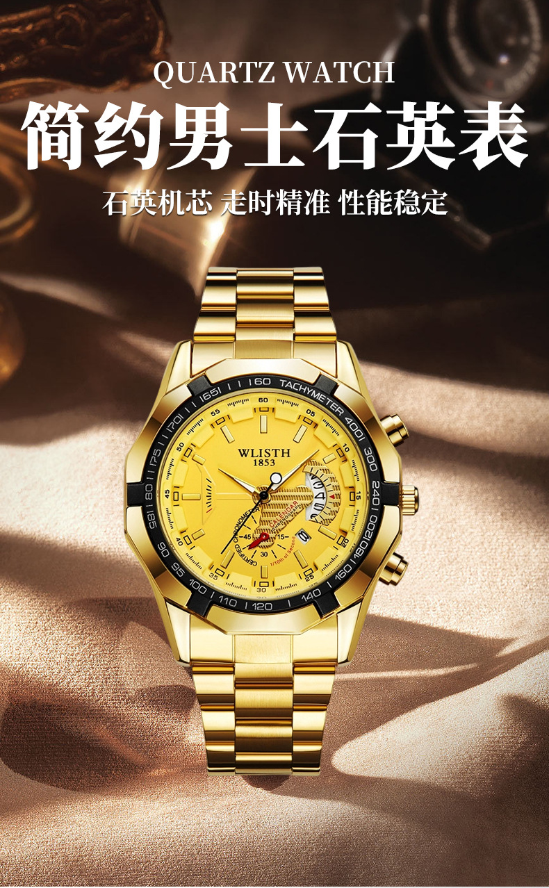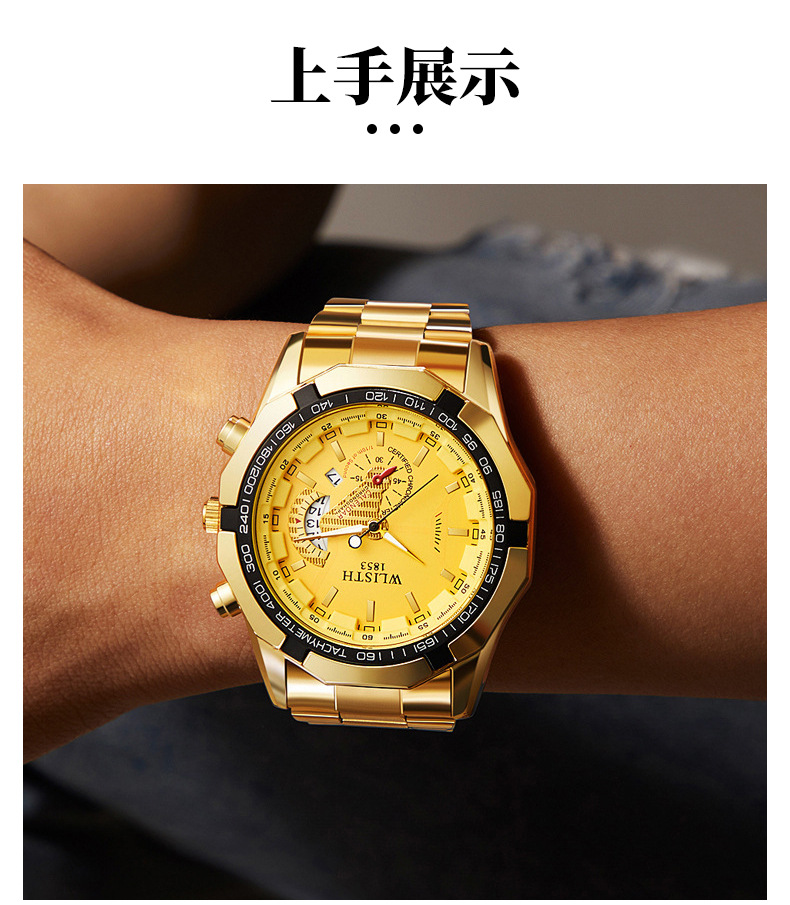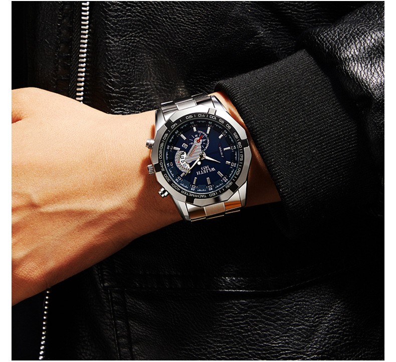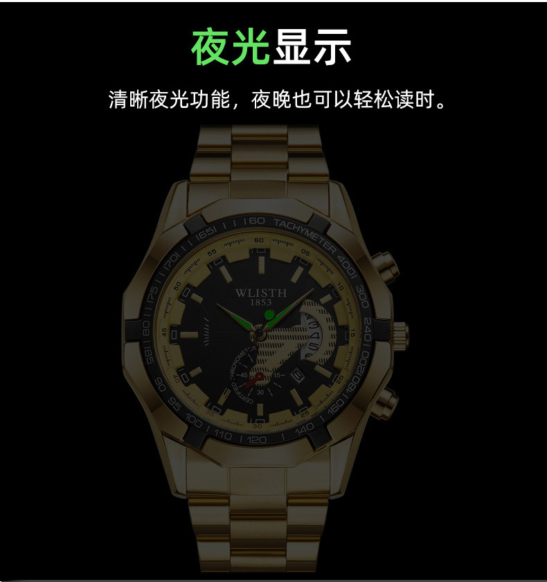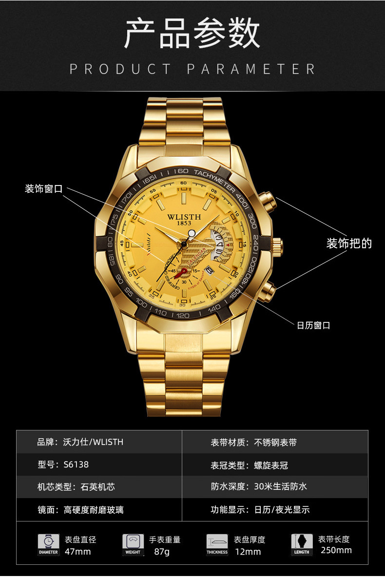 Jam tangan mekanik tahan air dial besar Wolish, jam tangan quartz lintas batas, jam tangan pria, jam tangan sederhana untuk perdagangan luar negeri, grosir