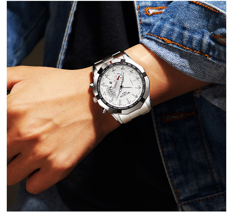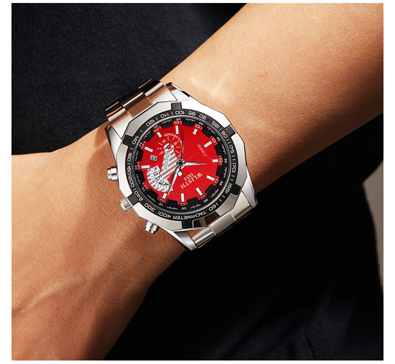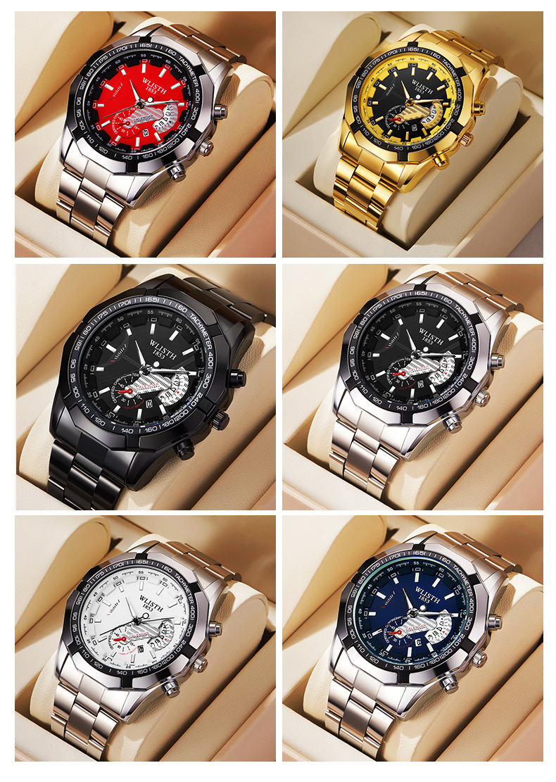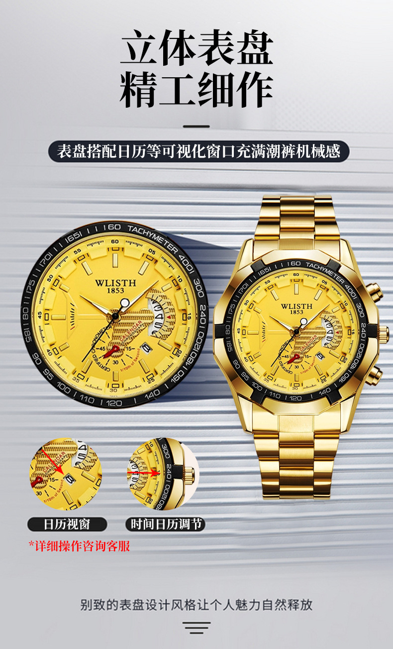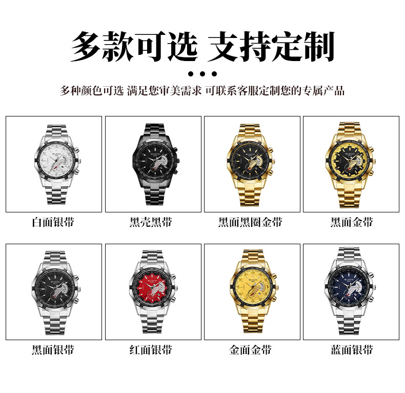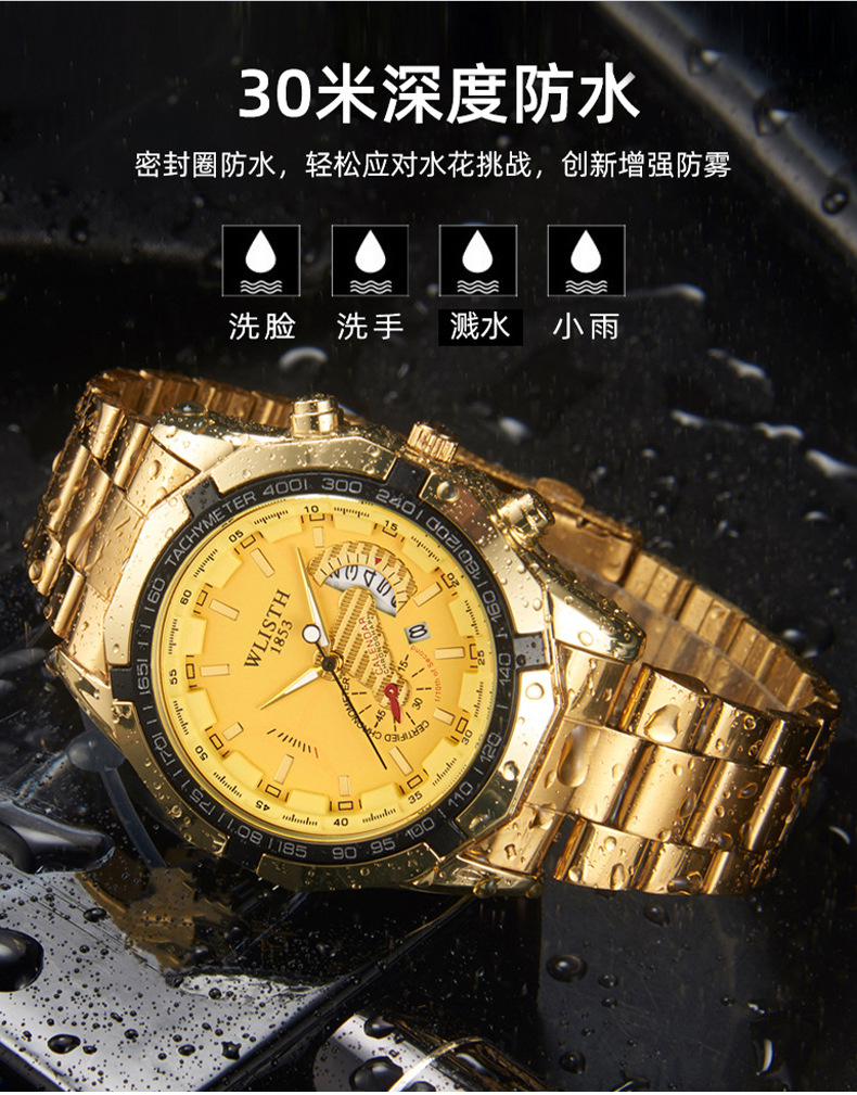 Jam tangan mekanik tahan air dial besar Wolish, jam tangan quartz lintas batas, jam tangan pria, jam tangan sederhana untuk perdagangan luar negeri, grosir