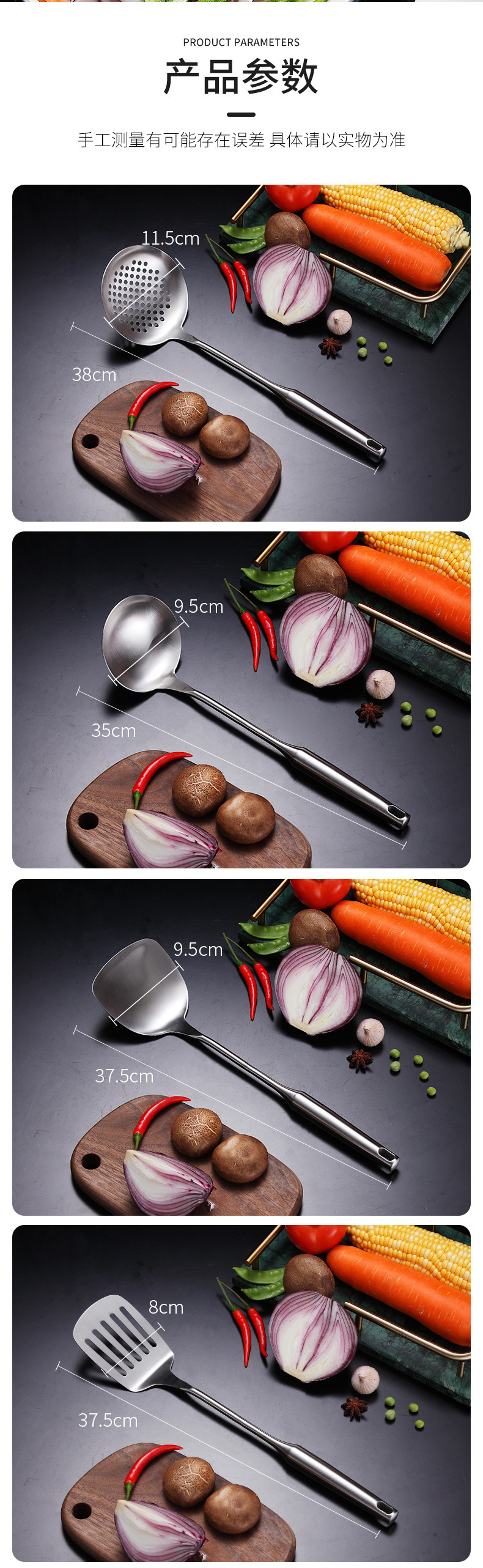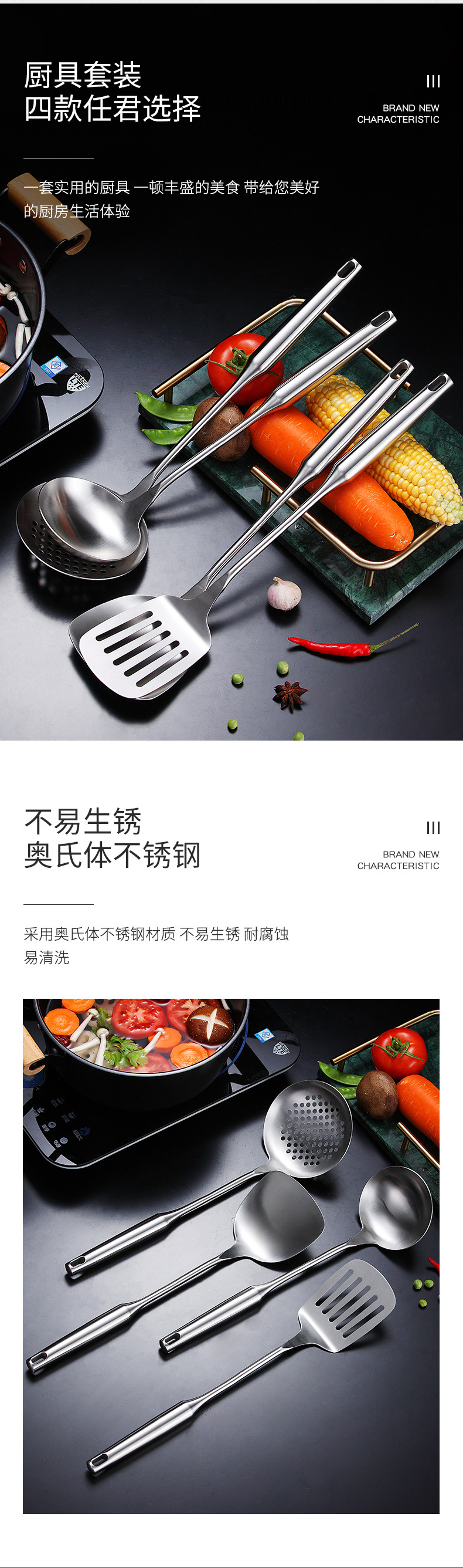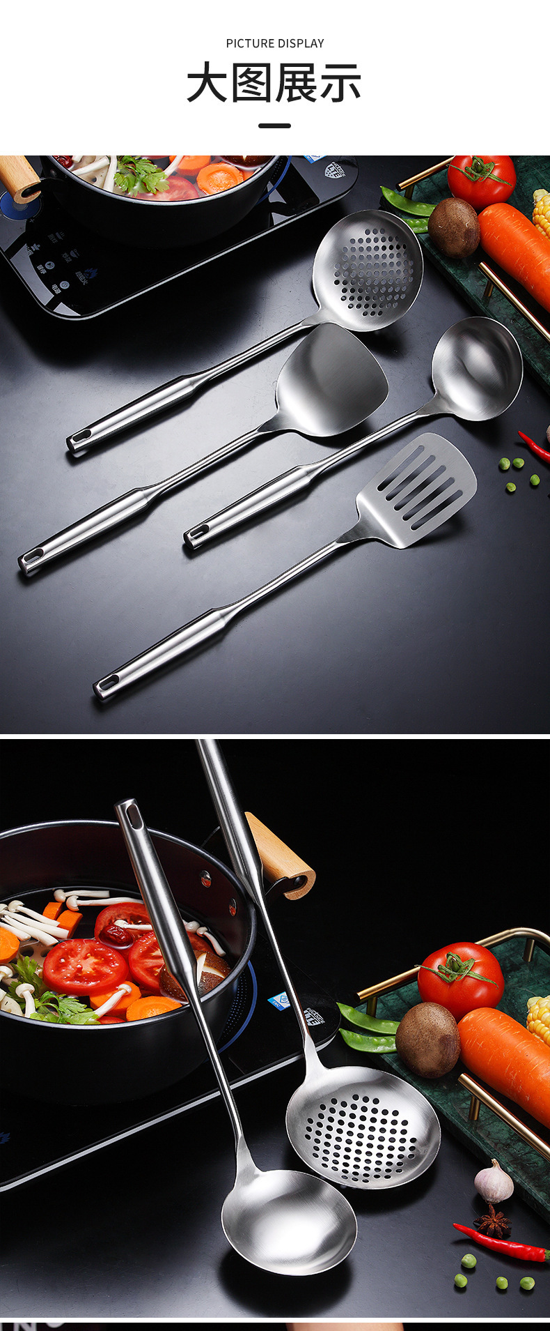 Set spatula gagang berongga semua baja tahan karat peralatan dapur rumah tangga grosir spatula tebal sendok sup spatula masak rumah tangga