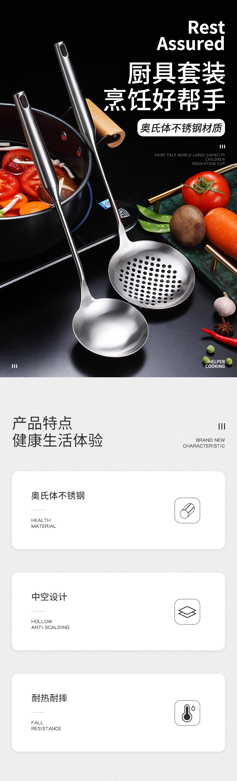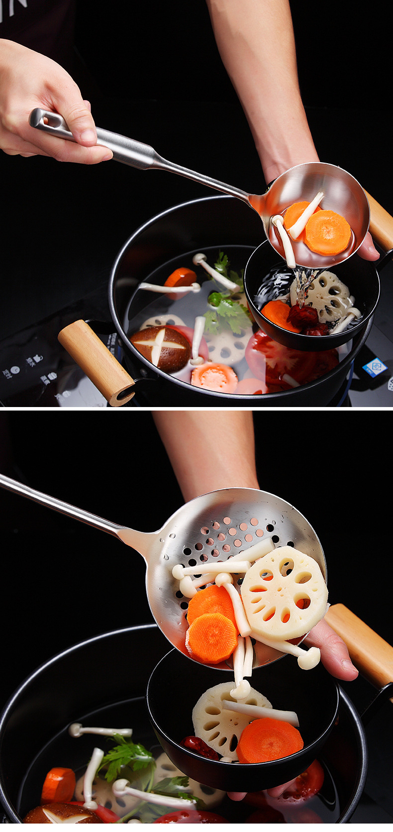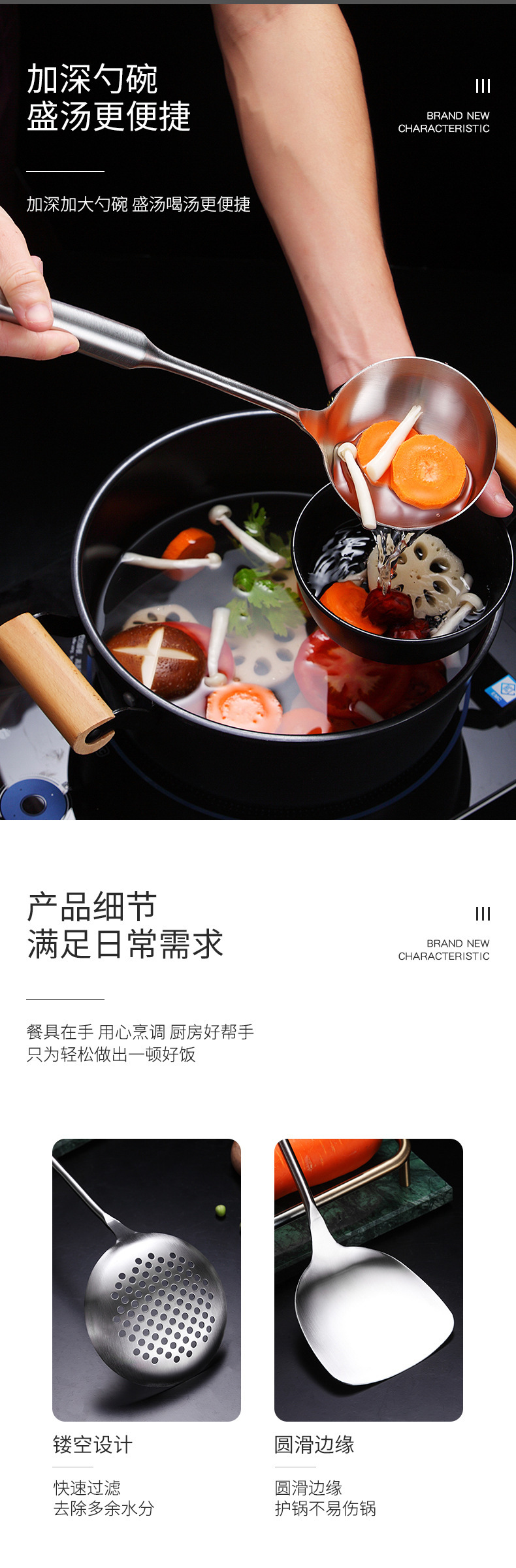 Set spatula gagang berongga semua baja tahan karat peralatan dapur rumah tangga grosir spatula tebal sendok sup spatula masak rumah tangga