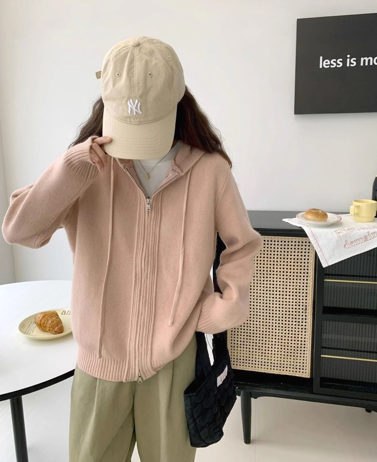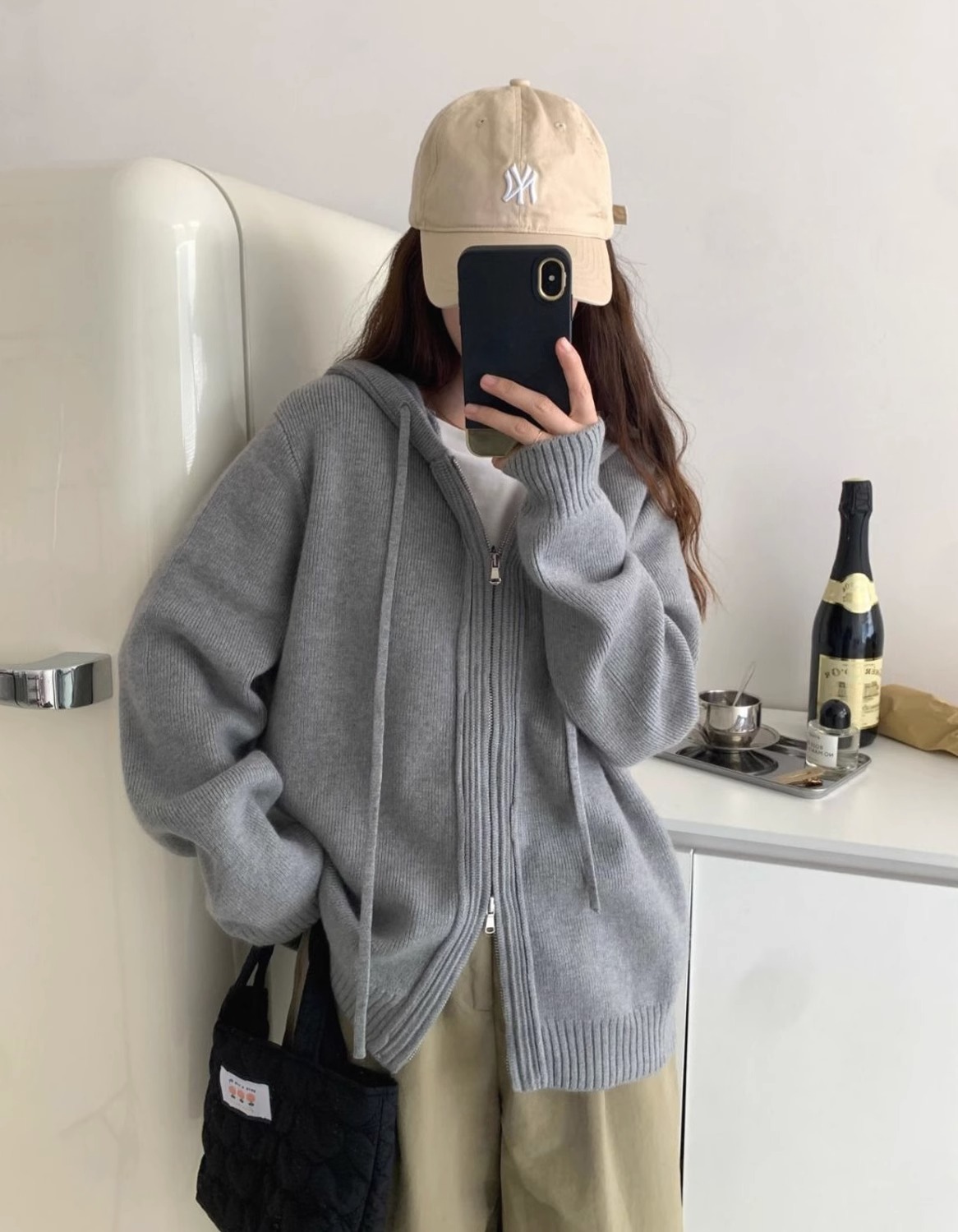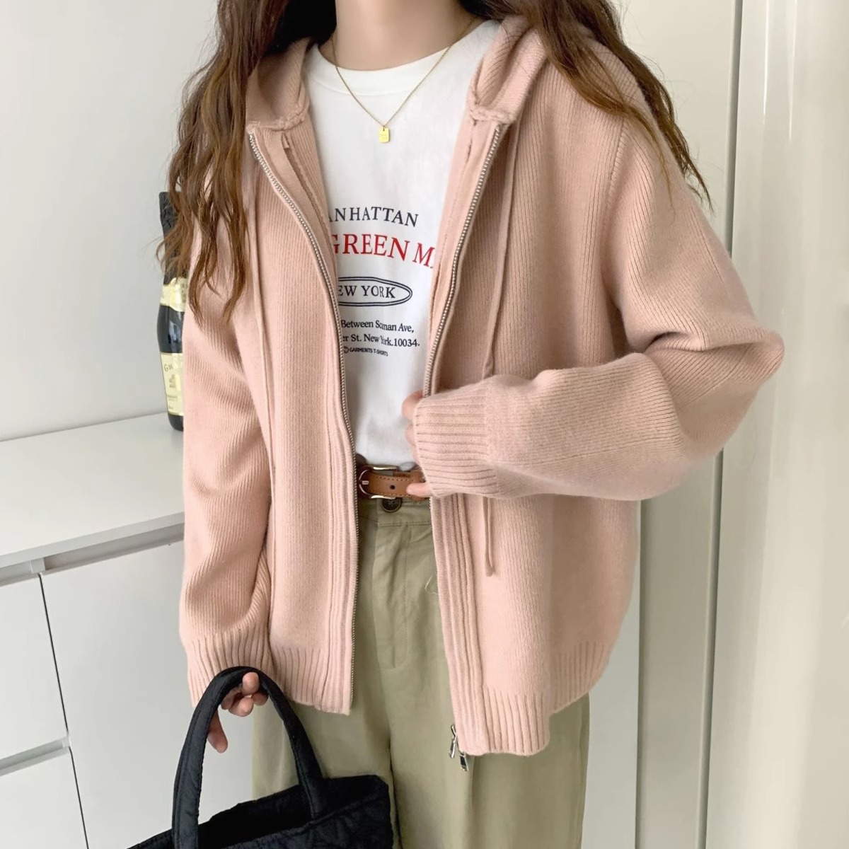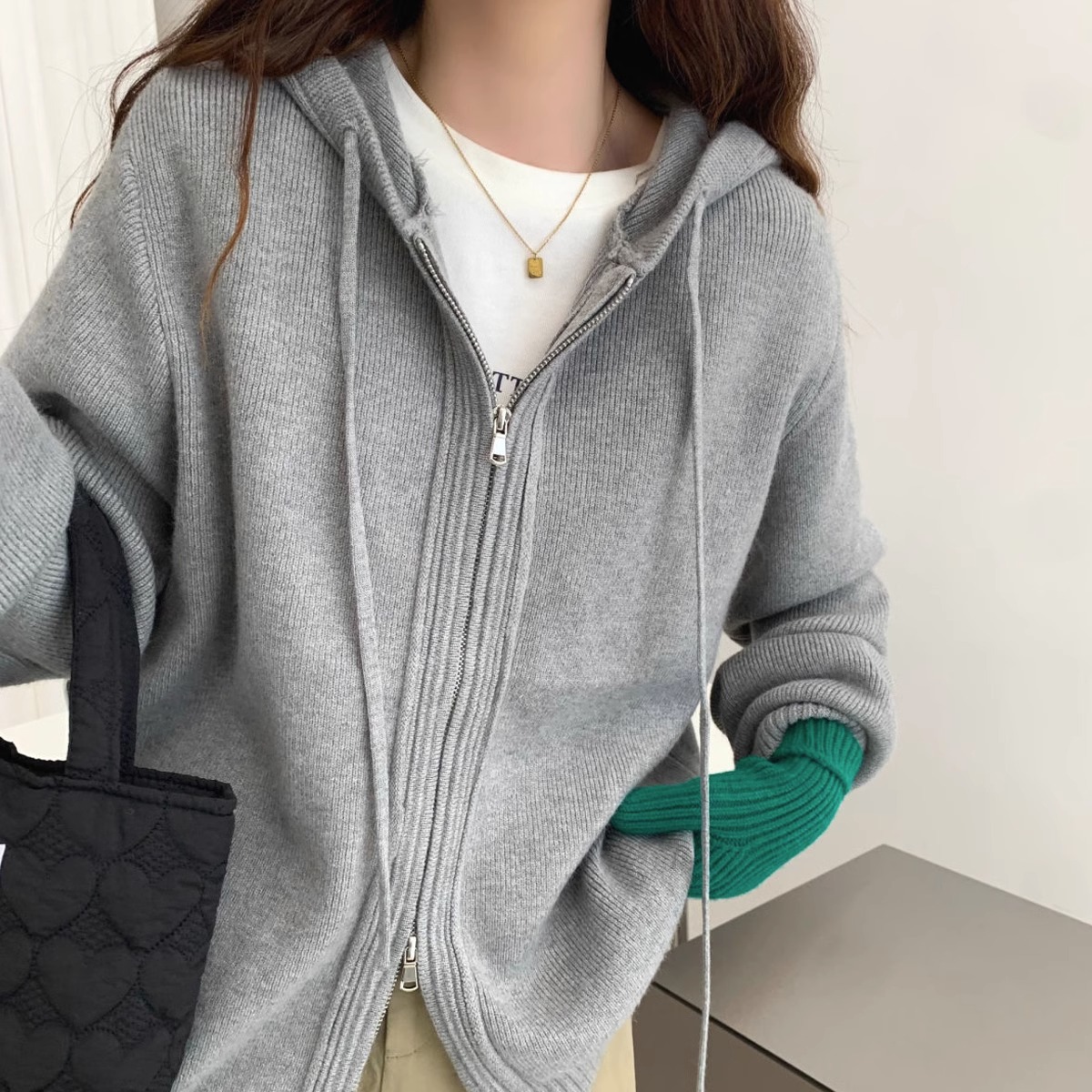 2024 musim semi, musim gugur dan musim dingin berkerudung ritsleting ganda mantel sweater longgar wanita pakaian luar gaya malas sweater tebal cardigan ins