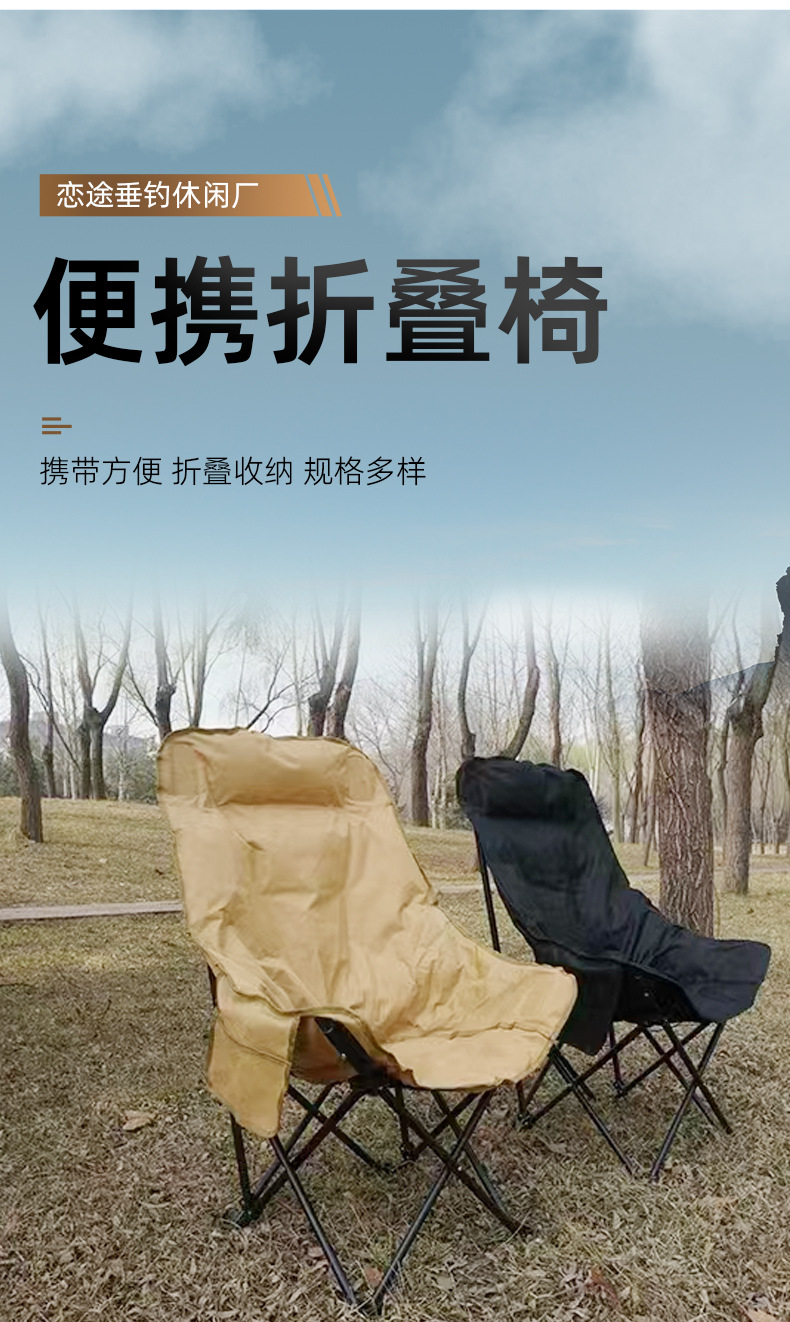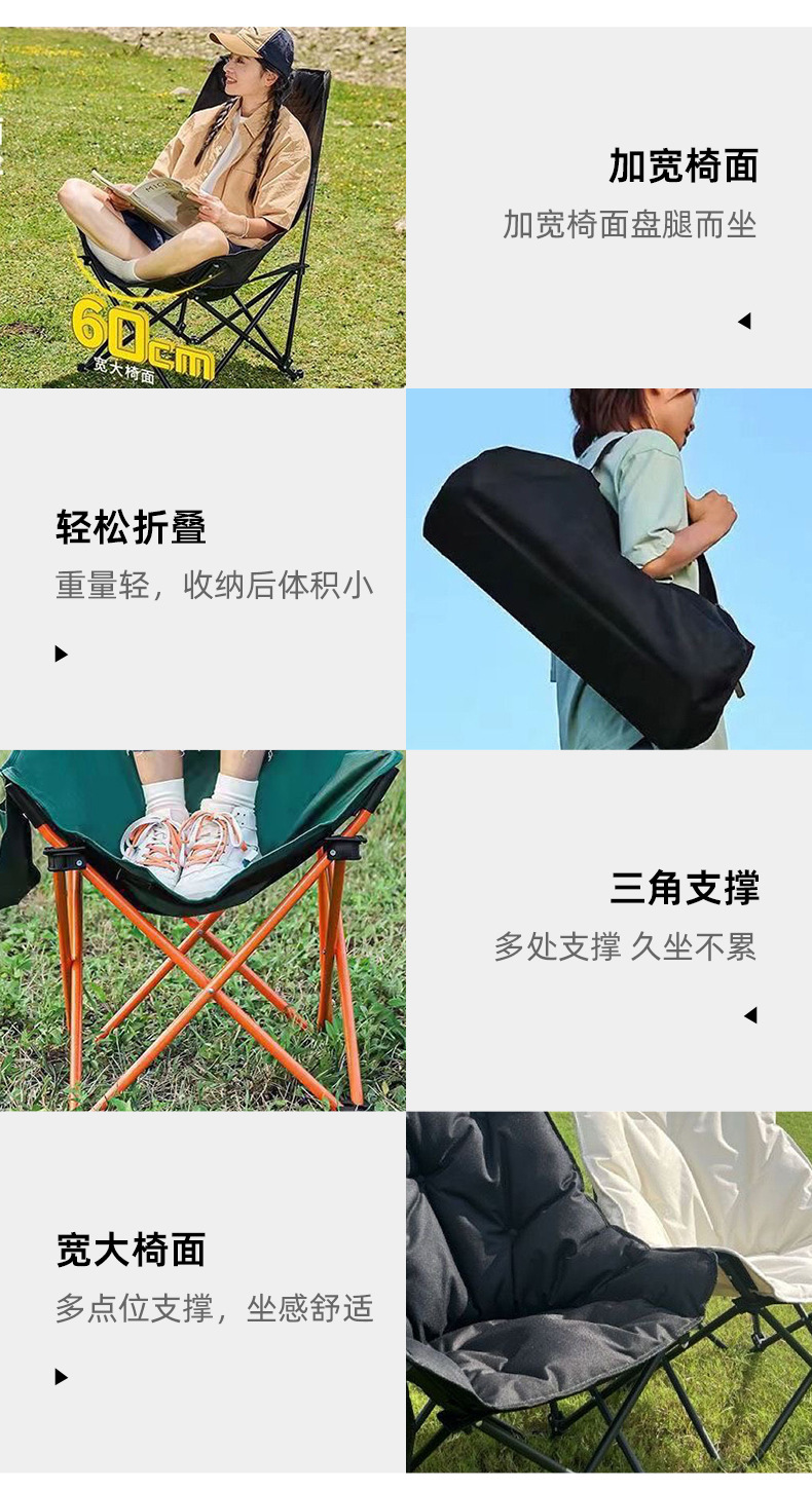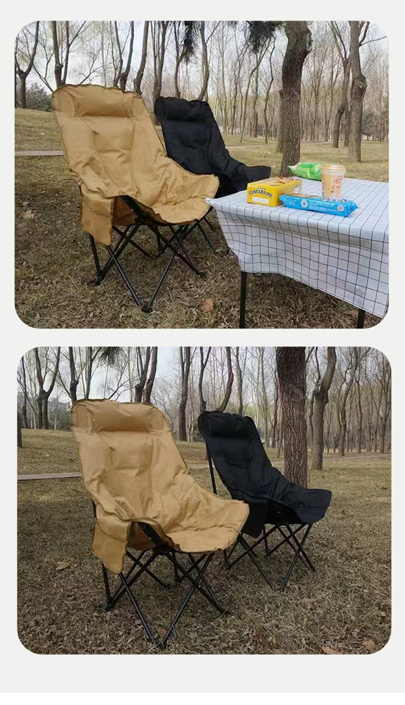 Kursi bulan berlapis empuk dengan sandaran tinggi, kursi berkemah portabel untuk luar ruangan, kursi santai untuk memancing dan piknik, kursi pantai, kursi lipat