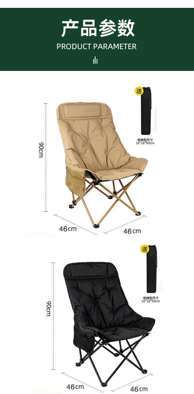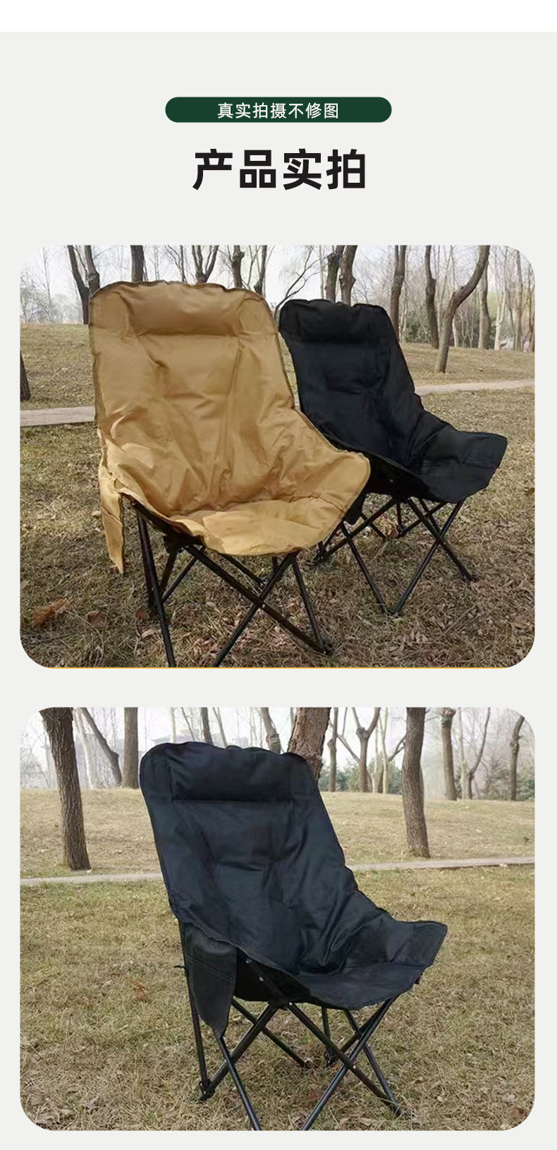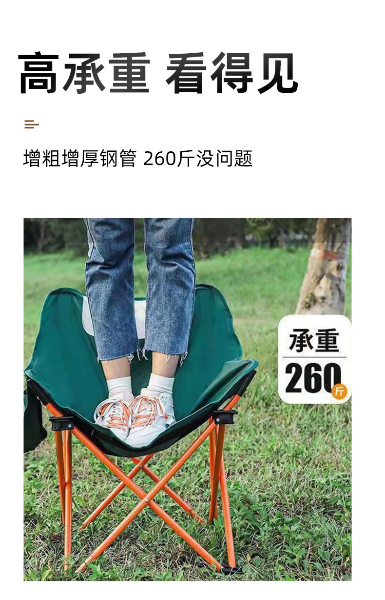 Kursi bulan berlapis empuk dengan sandaran tinggi, kursi berkemah portabel untuk luar ruangan, kursi santai untuk memancing dan piknik, kursi pantai, kursi lipat