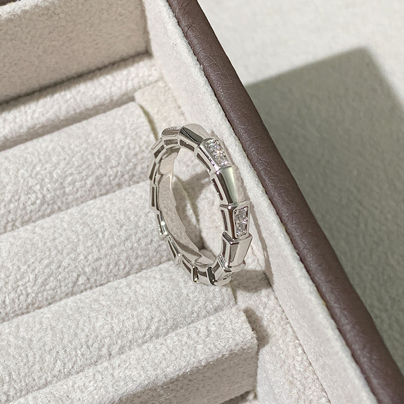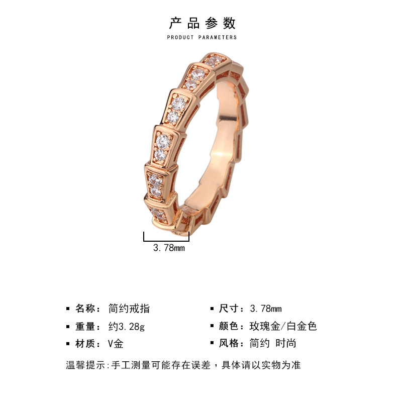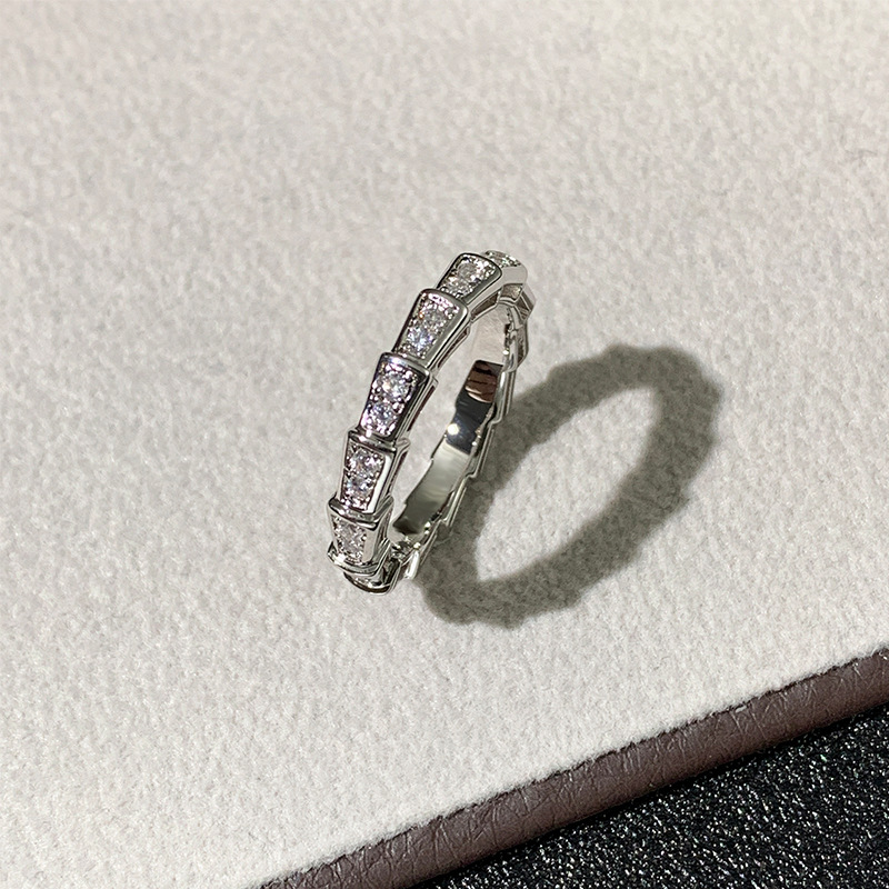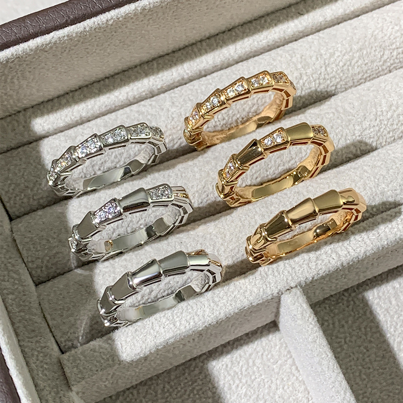Cincin tulang ular emas wanita, lingkaran versi tinggi glossy berlapis berlian 18K emas mawar gaya mewah penuh berlian pengganti cincin
