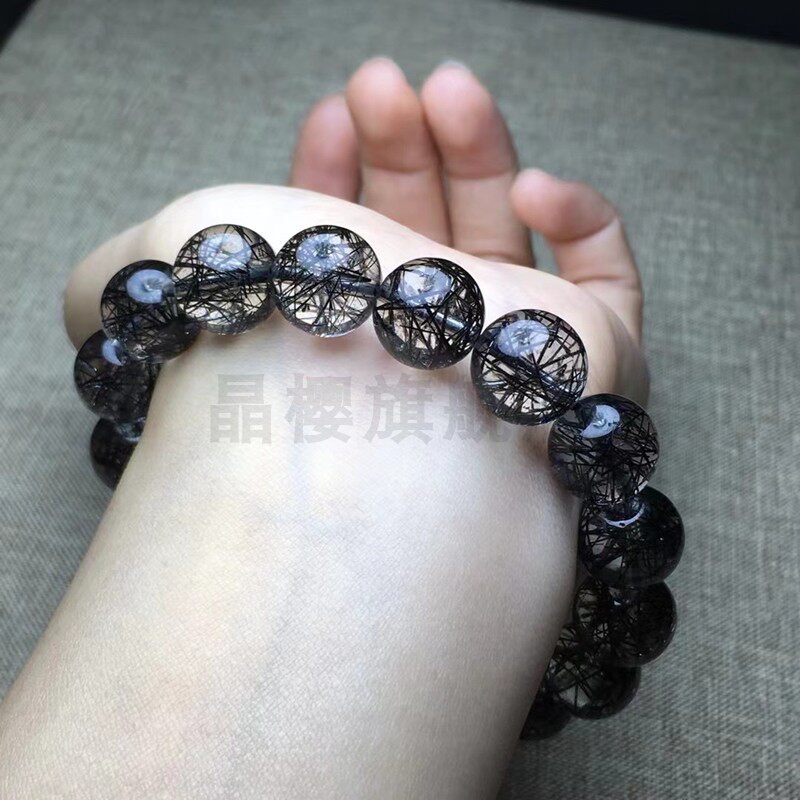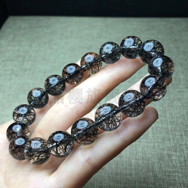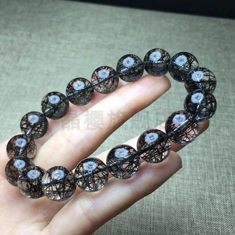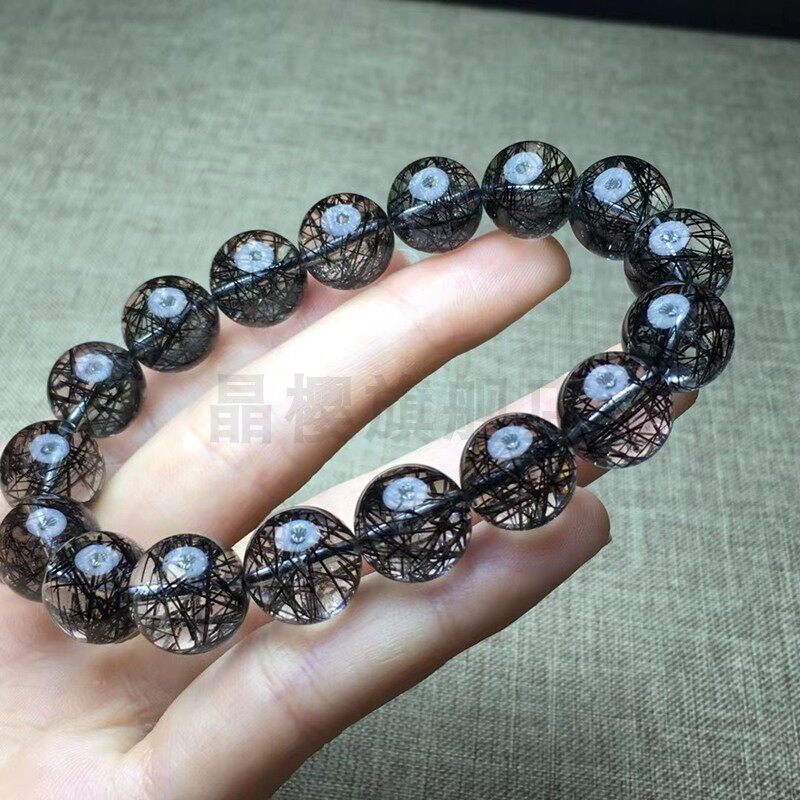 Gelang cincin tunggal kristal rambut hitam Brasil alami rambut pria tebal asli hadiah kumpulan yang indah gelang kristal rambut yang dipertahankan sendiri