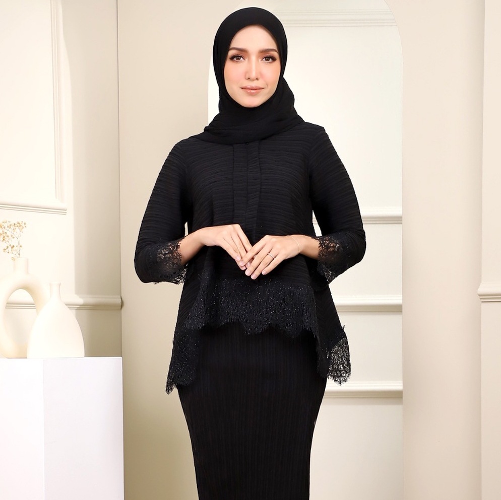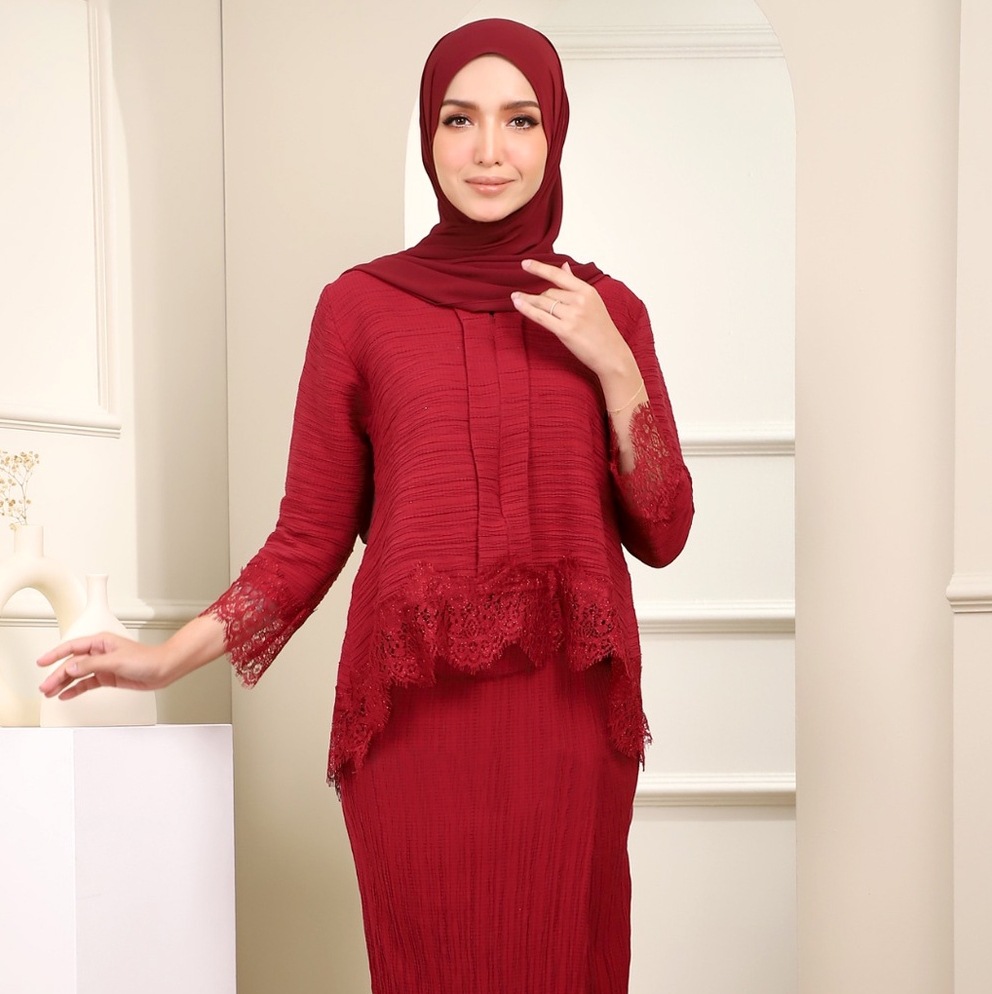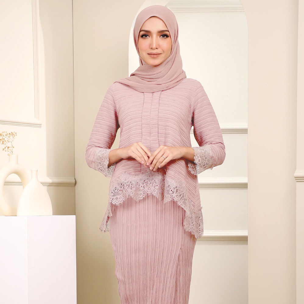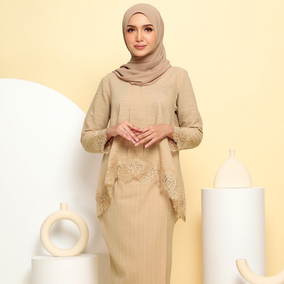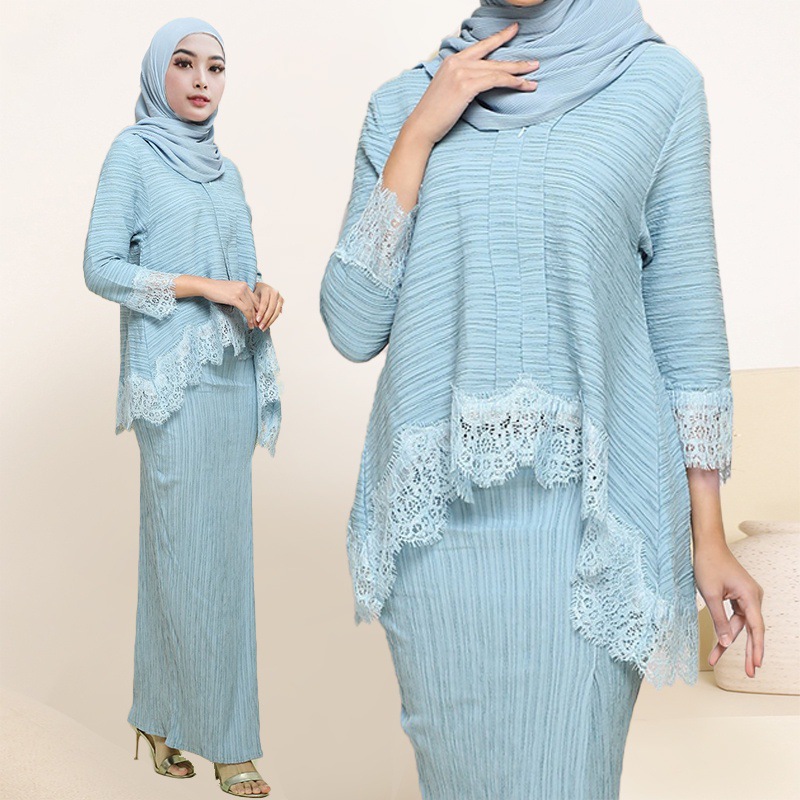中东 东南亚连衣裙 爆款气质穆斯林连衣裙 蕾丝九分袖褶皱两件套