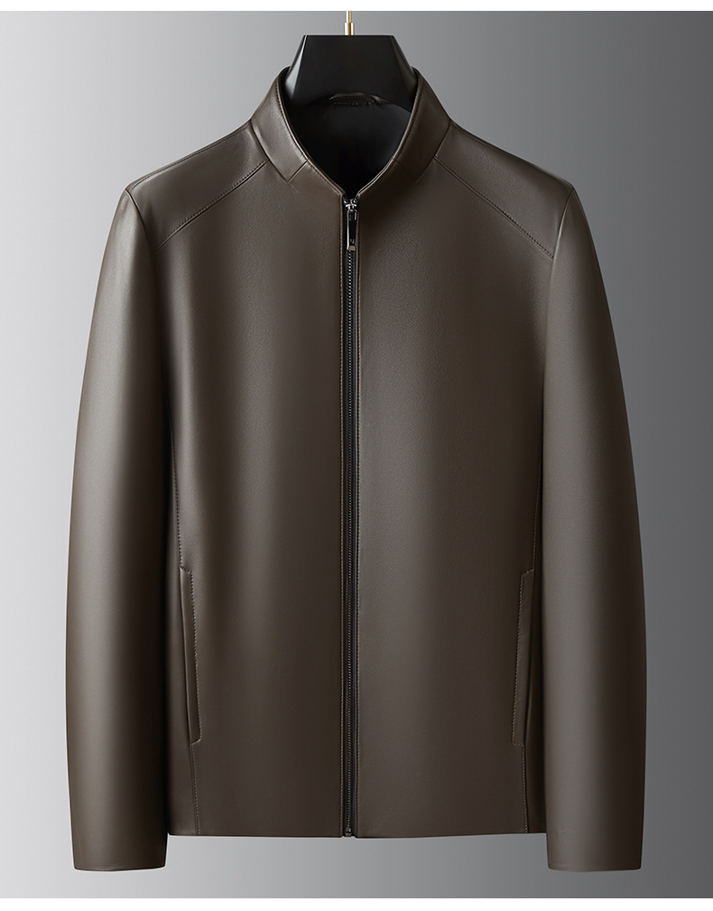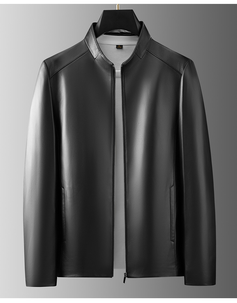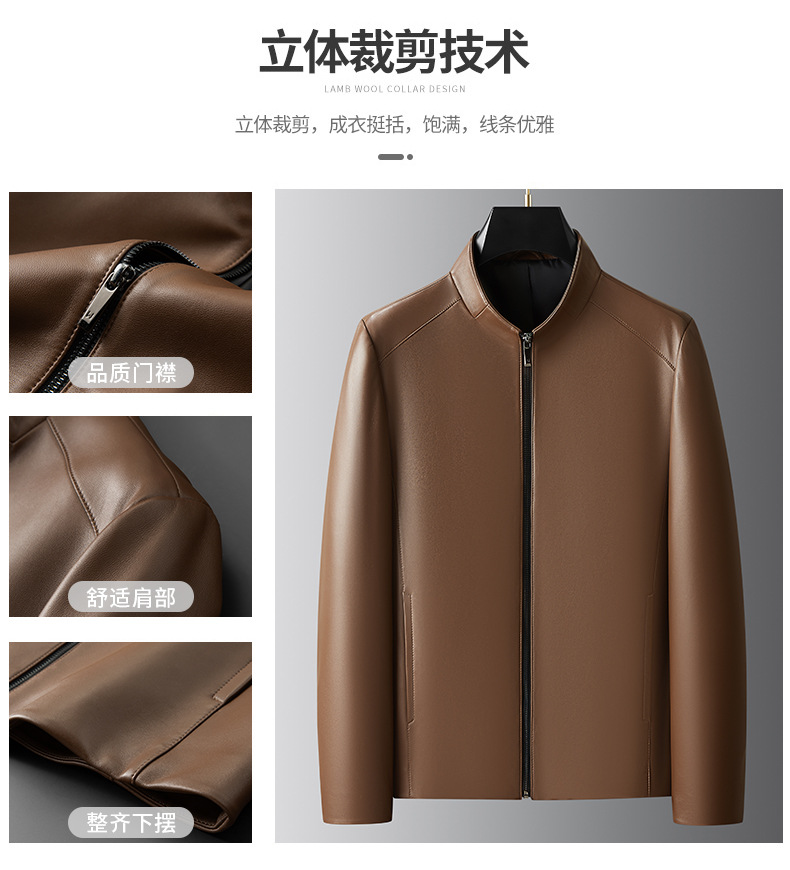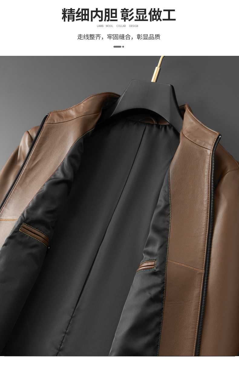 881065 Jaket Kulit Haining Baru Musim Gugur dan Musim Dingin Jaket Kulit Pakaian Kerja Pria Pakaian Bisnis Pria Kulit Kambing